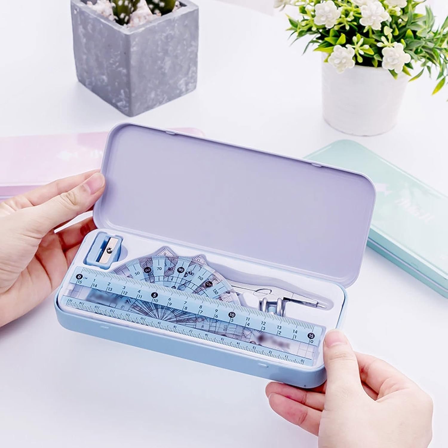 Il compasso matematico non si piega né si deforma durante l'uso. La testa del compasso dal design ergonomico è comoda da impugnare. Il compasso con supporto universale può essere utilizzato con qualsiasi matita o penna di dimensioni standard. Il righello, il triangolo e il goniometro sono dotati di scale graduate for una maggiore praticità. Identificazione. Dotato di custodia, facile da trasportare e riporre. Set compasso: righello da 5,91 pollici, goniometro, temperino, matita, gomma, compasso in metallo, 2 triangoli (45° e 60). Il kit di matematica e geometria può essere riposto in uno zaino o sulla scrivania. Facile da trasportare e riporre. Il kit geometrico è realizzato in metallo, è robusto e può essere utilizzato for molti anni. Gli strumenti da disegno meccanico sono progettati da esperti matematici e comprendono tutti gli elementi essenziali for insegnanti e studenti di qualsiasi livello. Un'ottima scelta for insegnanti e studenti. Sono anche un regalo perfetto for bambini e amici, facili da portare in classe e da riporre in classe e a casa. Sceglieteli come regalo for la stagione scolastica o for Natale.