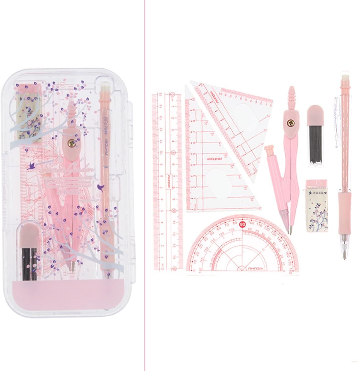 Un'ottima scelta per insegnanti e studenti. È anche un regalo perfetto per bambini e amici, facile da portare in classe e da conservare in classe e a casa. Sceglilo come regalo per la stagione scolastica o per Natale. Set di compassi per matematica e geometria per studenti con goniometro e squadre in custodia per il trasporto. Il set di 8 kit di geometria include: 1 compasso da studio in metallo, 2 triangoli (45° e 30°/60°), 1 righello, 1 goniometro, matita per compasso, temperamatite, gomma, ricarica di mina per matita. La testa del compasso dal design ergonomico è comoda da impugnare, il compasso con supporto universale funziona con qualsiasi matita o penna di dimensioni standard, i righelli, i triangoli e il goniometro sono dotati di graduazioni per una facile identificazione. Set di matematica introduttivo per la scuola, pronto per gli esami e i corsi universitari.