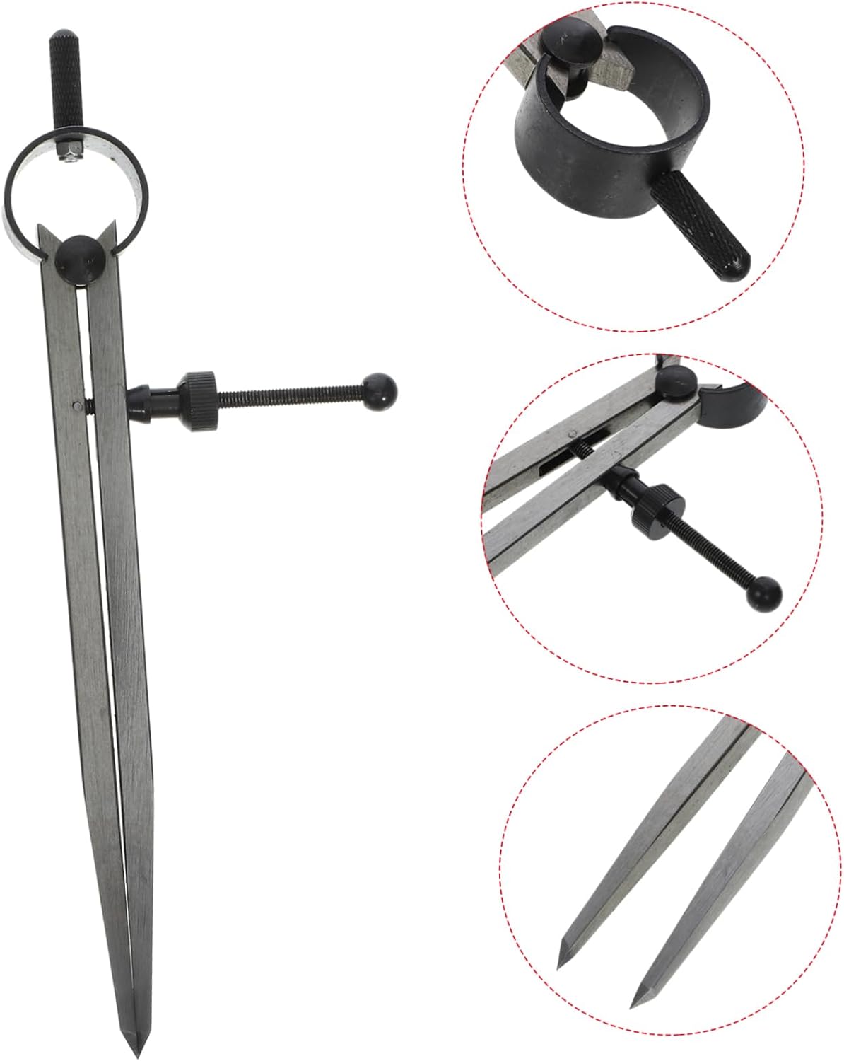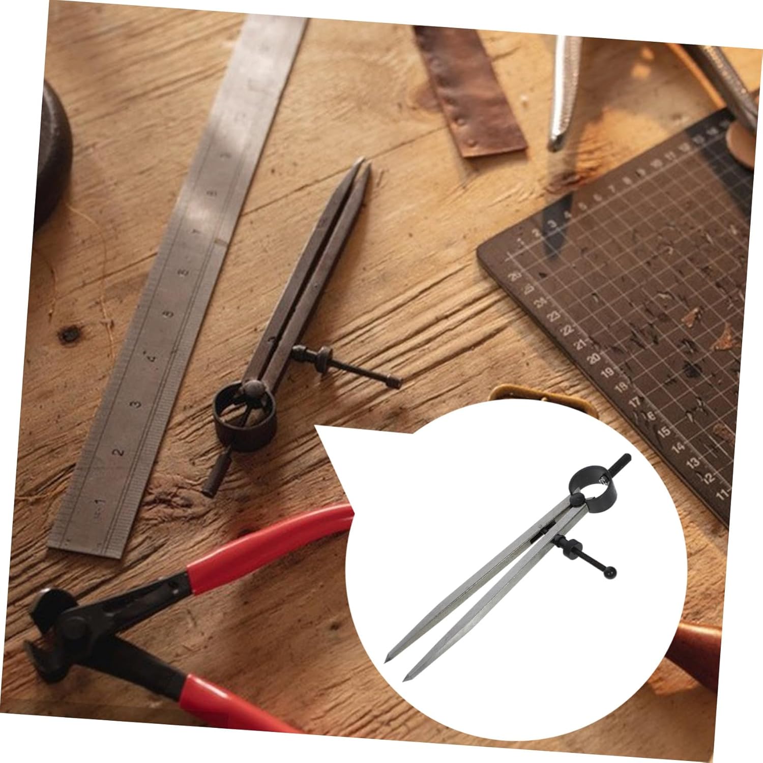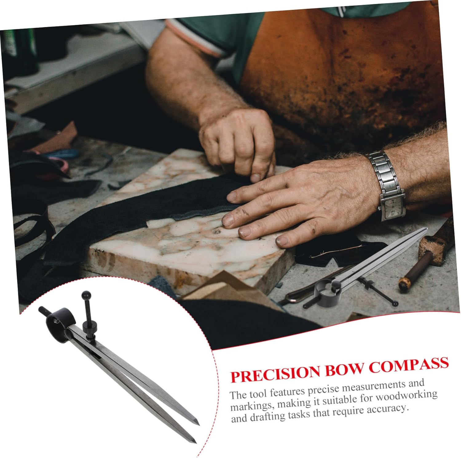 Compasso in pelle multifunzione: adatto per l'uso su una varietà di materiali, tra cui pelle, carta e tessuto, questo strumento è perfetto per tracciare linee e creare tagli precisi, compasso a molla per uso quotidiano Bussola resistente all'usura: questo strumento è un articolo versatile ed essenziale per qualsiasi officina o cassetta degli attrezzi, in quanto può essere utilizzato per una varietà di attività, bussola in metallo Divisore alare: il raggio assicura misurazioni accurate, consentendo una marcatura e un taglio precisi, una comoda bussola Strumento per tracciare: con misurazioni e marcature precise su vari materiali, questo strumento è perfetto per garantire la precisione in qualsiasi progetto, compasso geometrico Calibri di tracciatura portatili: il design ergonomico dell'impugnatura offre una presa comoda, consentendo agli utenti di utilizzare lo strumento per lunghi periodi senza disagio, strumento per disegnare cerchi