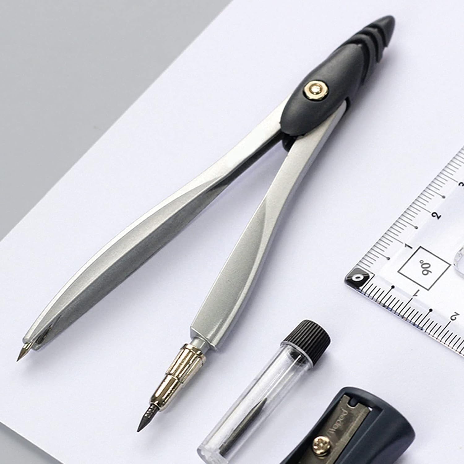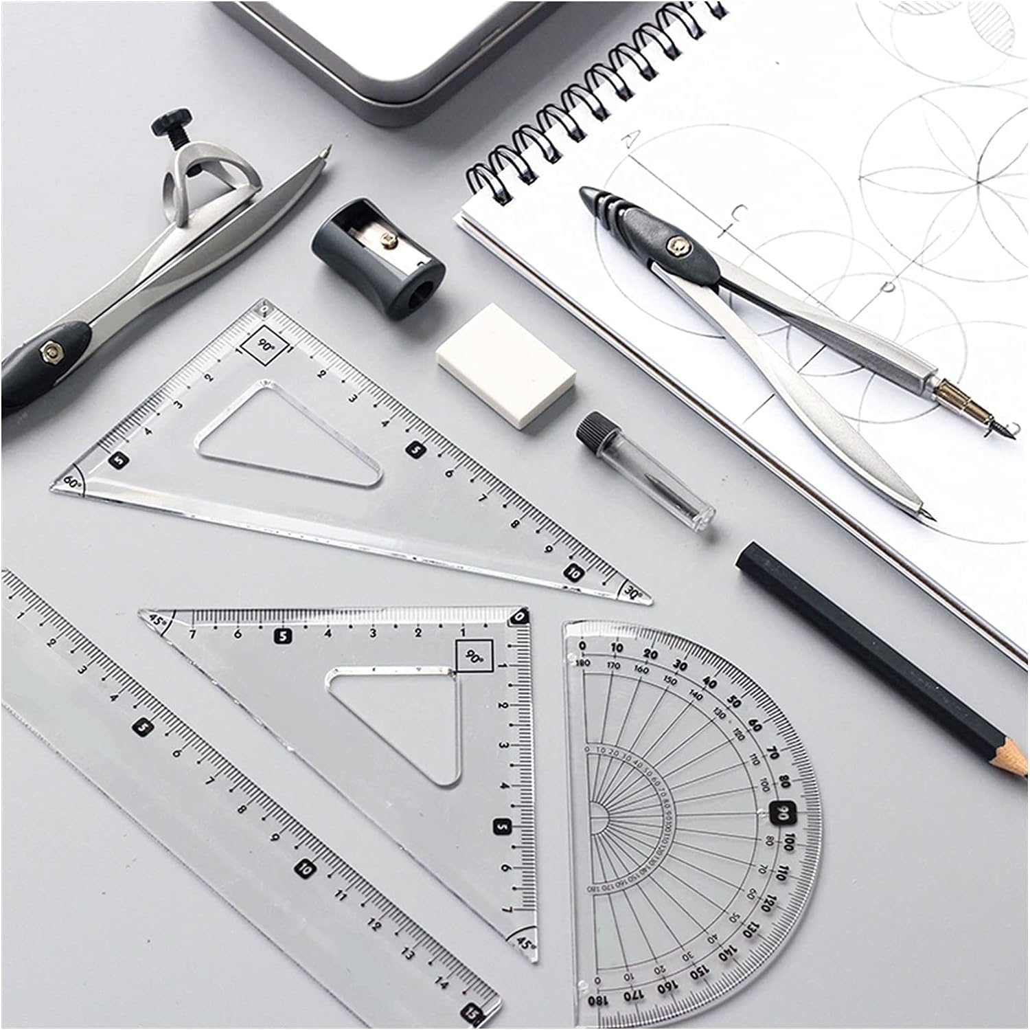 Un'ottima scelta per insegnanti e studenti. È anche un regalo perfetto per bambini e amici, facile da portare in classe e da conservare in classe e a casa. Sceglilo come regalo per la stagione scolastica o per Natale. Set da dieci pezzi: un righello, due compassi, una gomma, un goniometro da 180°, un temperamatite, due triangoli (60° e 45°), una matita e una mina. Il set di bussole è realizzato in acciaio inossidabile, durevole e facile da trasportare. Il compasso matematico può soddisfare diverse esigenze di disegno ed è comodo da usare. Il kit geometrico è confezionato singolarmente per una facile conservazione.