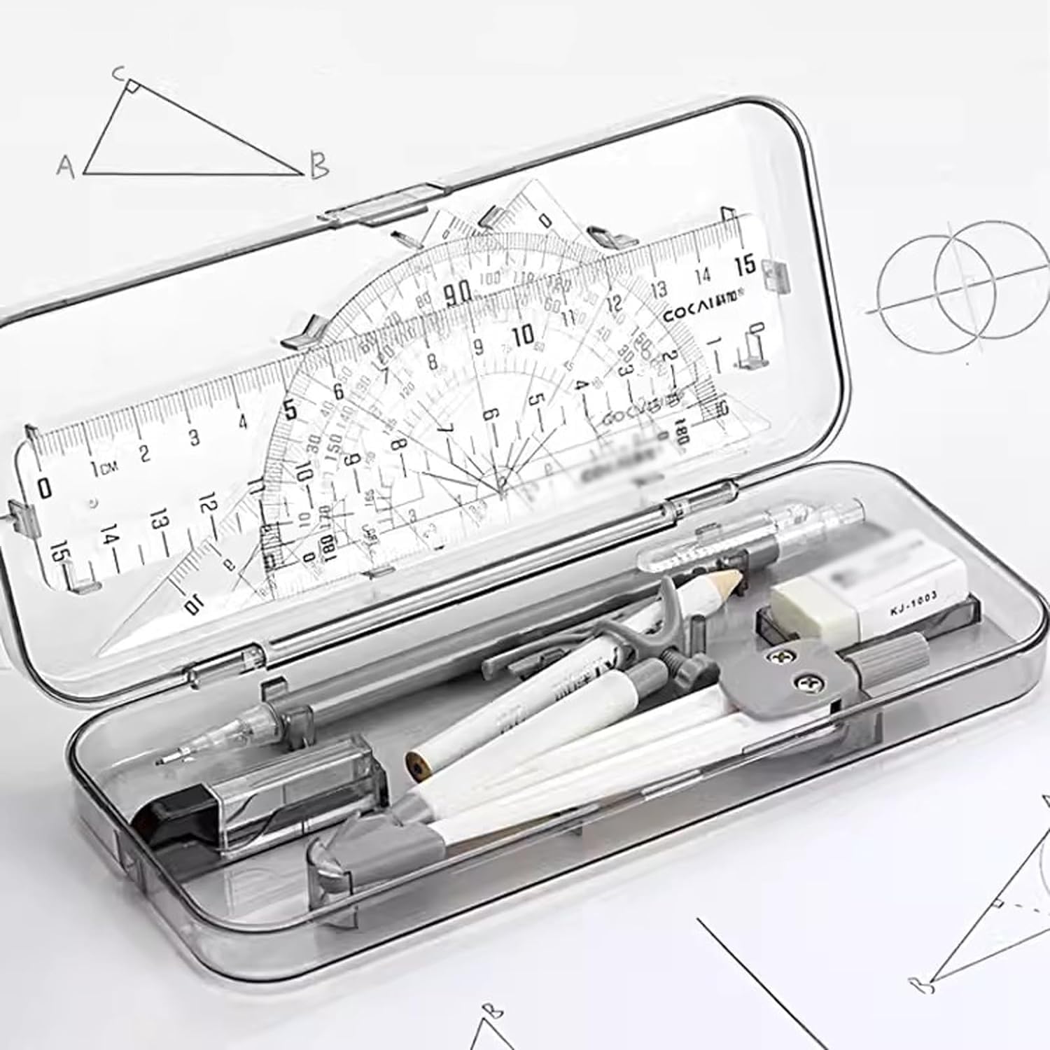 Realizzati con materiali durevoli, i nostri strumenti sono progettati per garantire precisione e durata costanti, sia che tu sia uno studente alle prese con i compiti di geometria, sia che tu sia un professionista che lavora su progetti complessi. Set di geometria da 9 pezzi per tutti i livelli progettato: il set di matematica/set di geometria progettato da esperti matematici esperti con tutti gli elementi essenziali per insegnanti e studenti di qualsiasi livello. La confezione include: matita, righelli triangolari, righello dritto, goniometro, compasso grafico e . Le bussole in metallo resistente non si piegano né si flettono durante l'uso; la testa della bussola dal design ergonomico è comoda da impugnare. Facile da riporre: con custodia resistente e infrangibile, per proteggere e conservare gli utensili in un unico posto in uno zaino o sulla scrivania. Facile da trasportare e riporre.