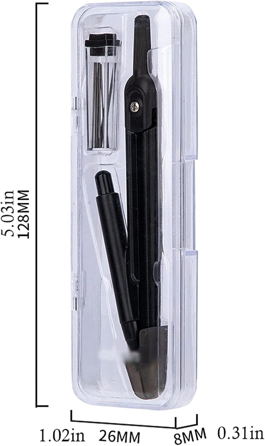 Un set di bussole in metallo, scatola di plastica, facile da trasportare. Esistono sei stili di compassi matematici, le dimensioni sono 6,89*2,76 pollici, 5,03*1,02*0,31 pollici, 1,26*5,20 pollici, 1,77*6,85 pollici, 1,77*6,30 pollici. Il kit geometrico contiene nucleo della penna, disegno liscio, alto contenuto di carbonio e non facile da rompere. Il design dall'aspetto metallico, alla moda e bello, soddisfa la tua visione esigente. Il materiale metallico ha un'elevata resistenza, una buona tenacità e una sensazione di mano confortevole. Adatto a insegnanti e studenti, il nostro set di compassi può disegnare qualsiasi forma geometrica.