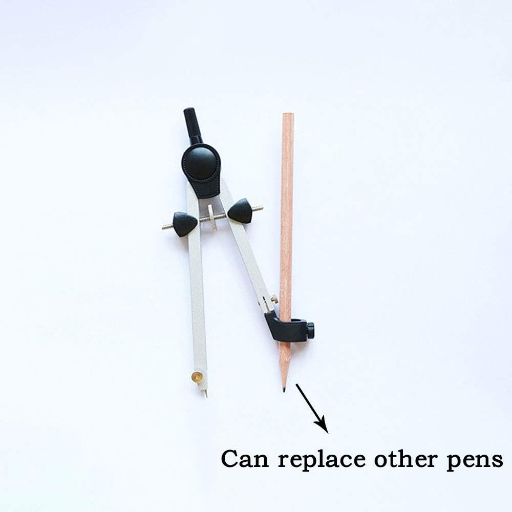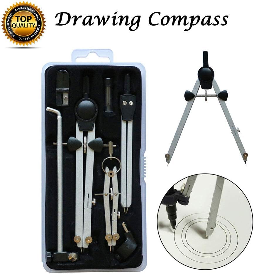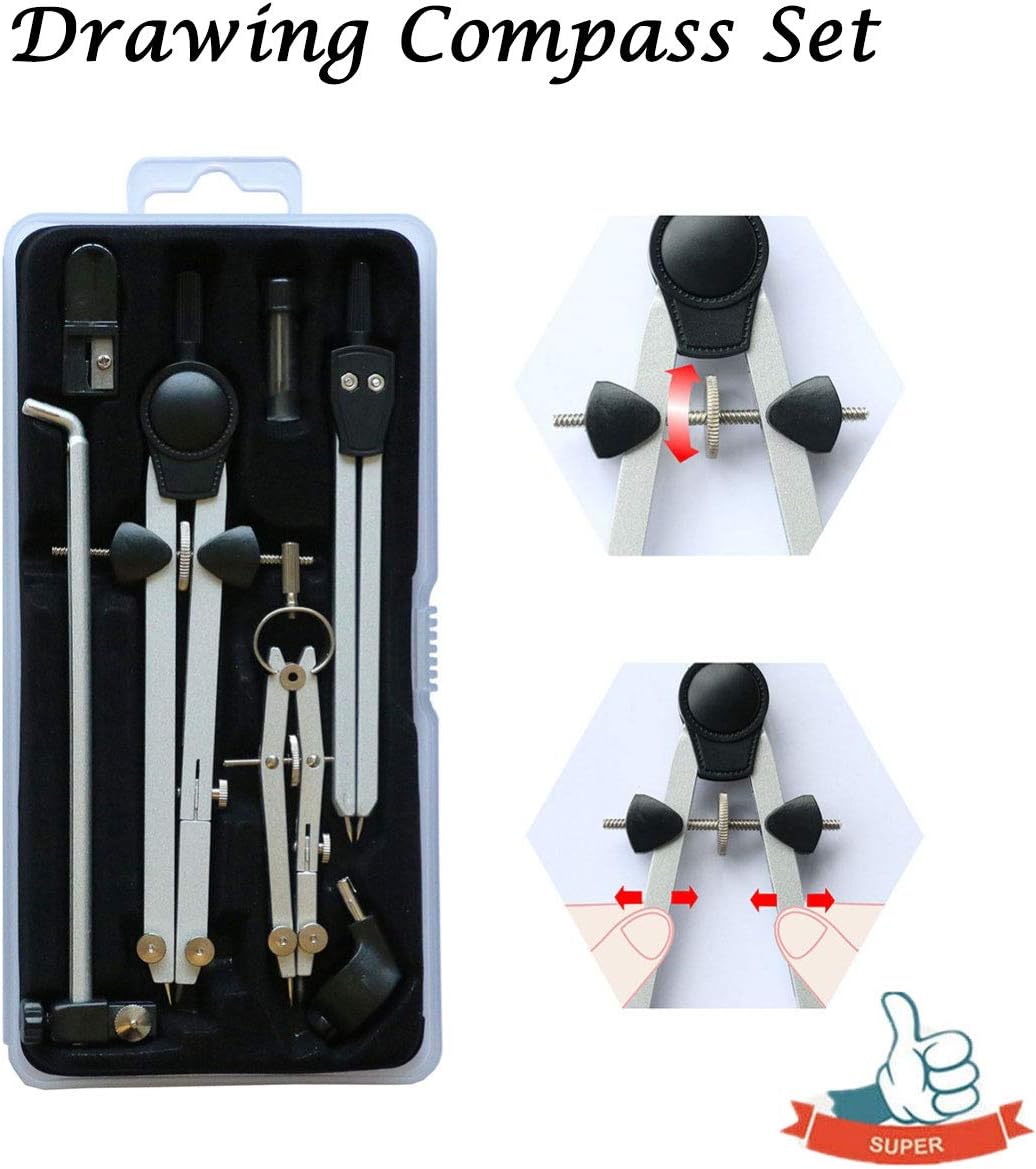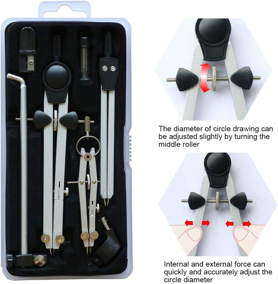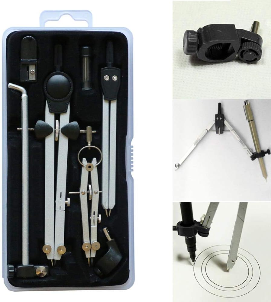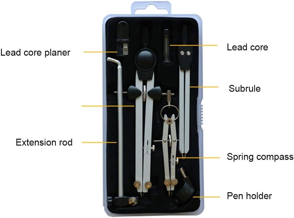 La vista diretta dei vertici consente costruzioni più precise. Strumento di geometria particolarmente adatto per le lezioni scolastiche. Perfetto per bambini e adulti: ottimo per l'uso a scuola, durante la lavorazione del legno o a casa. Il miglior strumento per disegnare cerchi per studenti, artisti, matematici e falegnami. La confezione include: 1 compasso con accessori.