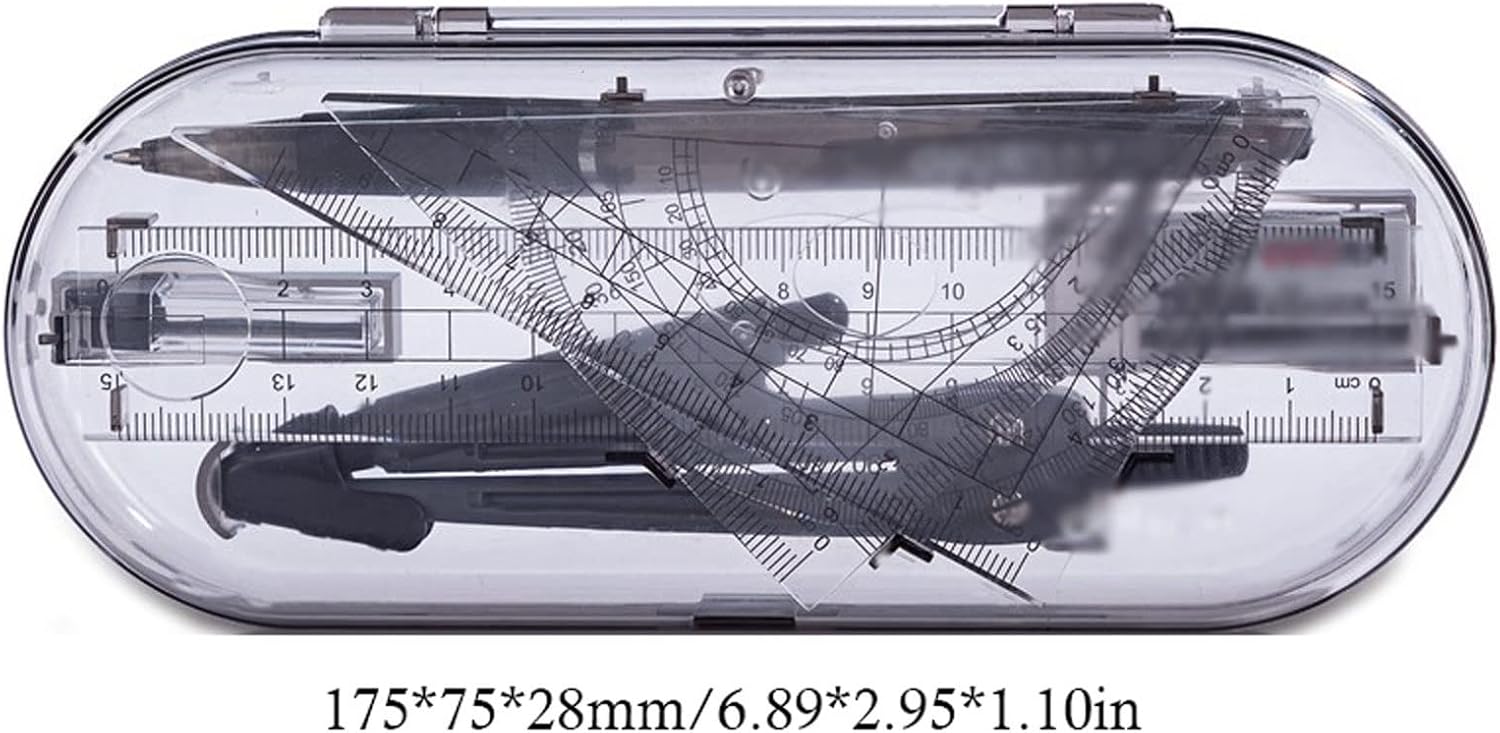 Il set di compassi comprende: righello, 2 triangoli (45°; 30/60°), goniometro, bussola, mina automatica, matita meccanica, gomma. Il set da disegno da otto pezzi soddisfa le tue esigenze di pittura. Un set contiene gli strumenti necessari for il disegno quotidiano, così puoi ridurre le difficoltà mentre disegni. Le dimensioni della scatola di immagazzinaggio del compasso matematico sono 175*75*28 mm/6,89*2,95*1,10 pollici. Il righello e il triangolo sono realizzati in materiali trasparenti, con scale chiare, comode for leggere i dati e completare facilmente disegni geometrici e misurazioni angolari. Gli strumenti da disegno meccanico sono progettati da esperti matematici e comprendono tutti gli elementi essenziali for insegnanti e studenti di qualsiasi livello. Un'ottima scelta for insegnanti e studenti. Sono anche un regalo perfetto for bambini e amici, facili da portare in classe e da riporre in classe e a casa. Sceglieteli come regalo for la stagione scolastica o for Natale.
