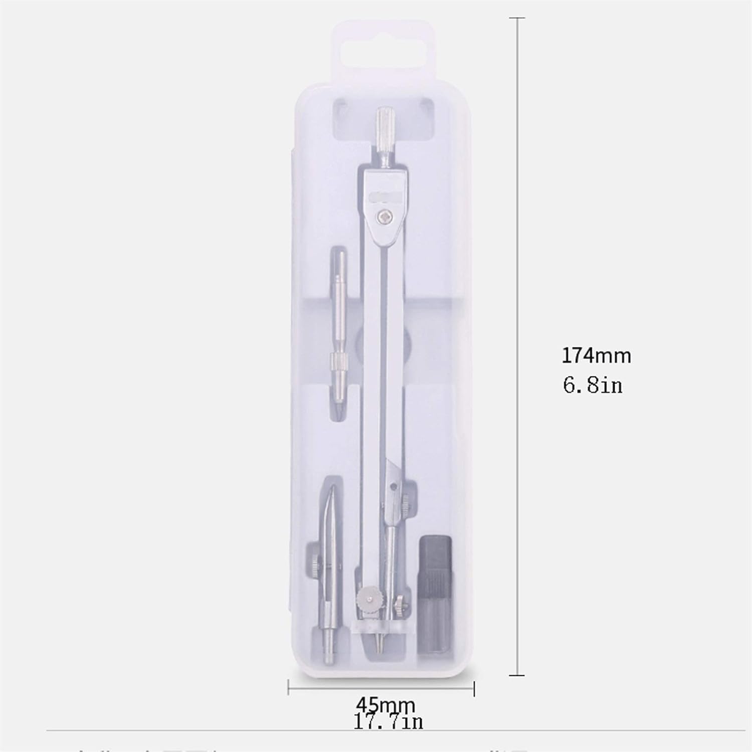È confezionato in una scatola di plastica semplice ed elegante, comoda da trasportare. Il set include: bussola, testa a becco d'anatra, testa con anima in piombo, anima in piombo Non si piega e si deforma facilmente, ha un'ottima tenacità ed è piacevole al tatto. Il design della bussola in metallo è alla moda e bello, in grado di soddisfare i tuoi occhi. Gli strumenti da disegno meccanico sono progettati da esperti matematici e comprendono tutti gli elementi essenziali for insegnanti e studenti di qualsiasi livello. Un'ottima scelta for insegnanti e studenti. Sono anche un regalo perfetto for bambini e amici, facili da portare in classe e da riporre in classe e a casa. Sceglieteli come regalo for la stagione scolastica o for Natale.