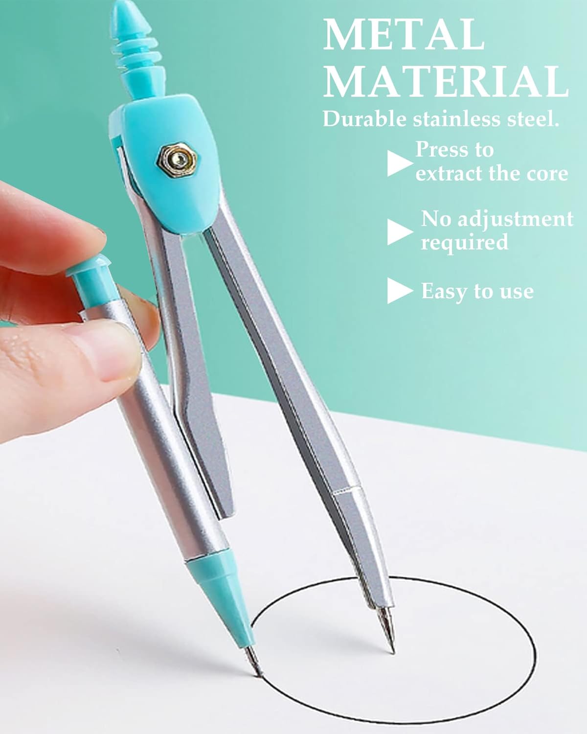 【Materiale di alta qualità】Compasso Realizzato con materiali di alta qualità, la struttura è stabile e non si danneggia facilmente. La punta dell'ago della bussola è affilata e non si smussa facilmente, e il righello non si piega e non si deforma facilmente, garantendo buone prestazioni anche a lungo termine e una garanzia di utilizzo duraturo. 【Imballaggio esterno raffinato e robusto】Compasso scuola media Il set di geometria per le scuole superiori è confezionato in una robusta scatola esterna in grado di resistere a urti e impatti. È dotato di un pratico sistema di stoccaggio. Tutti gli strumenti possono essere riposti ordinatamente insieme, non occupano spazio e sono facili da trasportare. Che tu lo metta nello zaino per portarlo a scuola o lo porti in altri luoghi, puoi riporlo facilmente e utilizzarlo in qualsiasi momento. 【Preciso e affidabile】Compasso scuola elementare Il design è raffinato, l'apertura e la chiusura sono fluide e può disegnare stabilmente cerchi di diversi raggi; La scala del righello è chiara e precisa, comoda per misurare e tracciare linee rette, rendendo il tuo lavoro di disegno più accurato ed efficiente, sia che si tratti di compiti per studenti o di disegno professionale. 【Set di apprendimento completo】Il materiale scolastico include 1 compasso, 1 ricarica di ricambio, 1 gomma, 1 goniometro e 3 righelli, che coprono molteplici funzioni come disegno, misurazione e disegno. Non è necessario acquistare altri accessori, può facilmente far fronte ai compiti in classe, al disegno geometrico e ad altre esigenze. 【Ampiamente applicabile】Il triangolo geometrico non è solo un valido aiuto per gli studenti che imparano in classe e completano i compiti di matematica, ma è anche adatto per il disegno a mano, la lavorazione del legno e altre scene. Che si tratti di scuola, casa o studio, può svolgere un ruolo pratico.