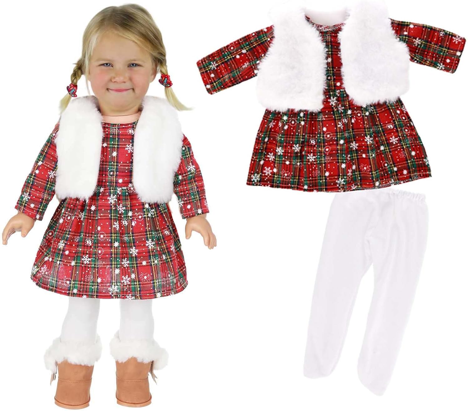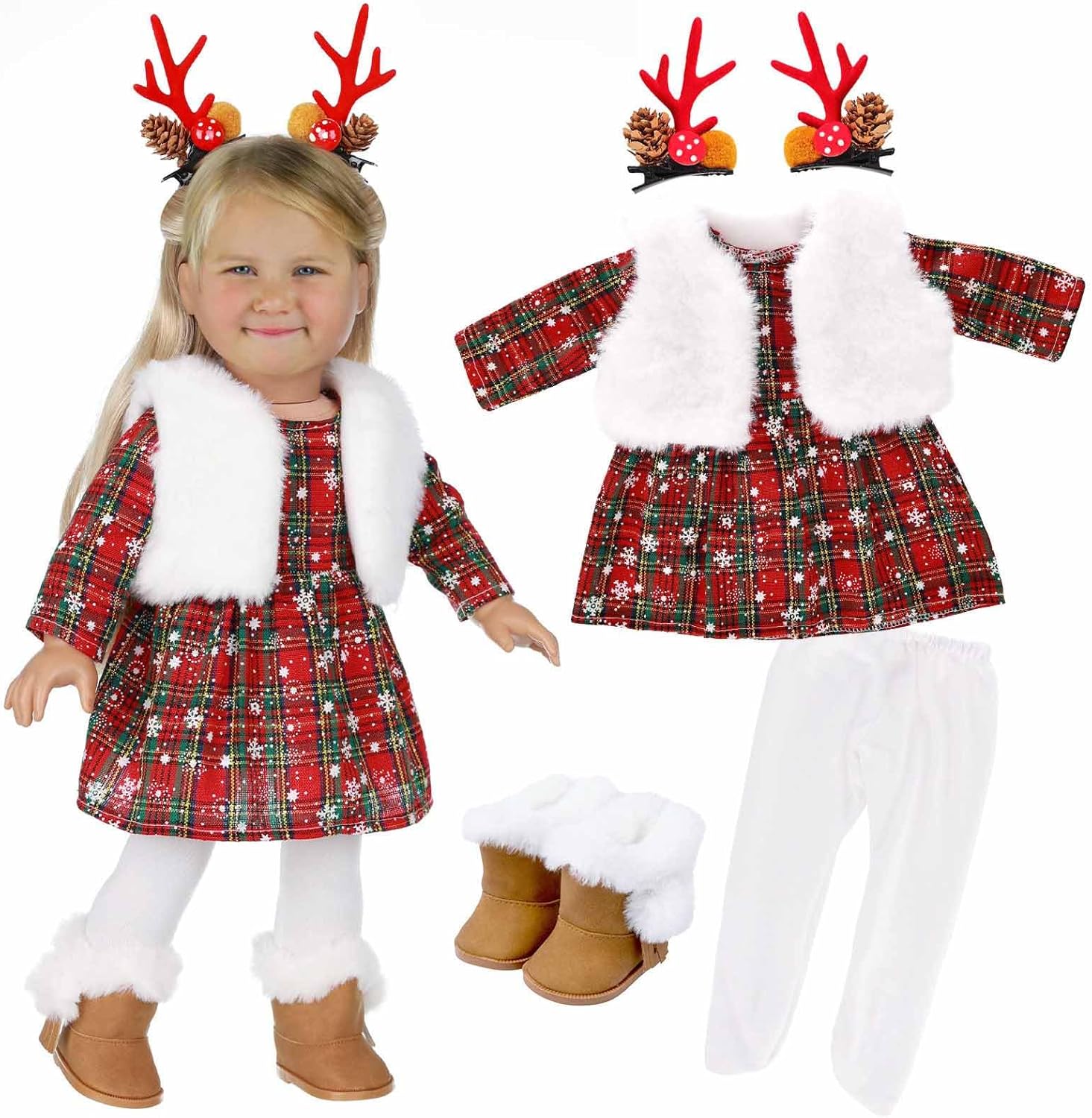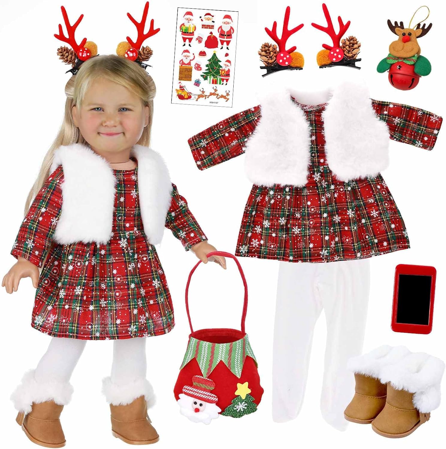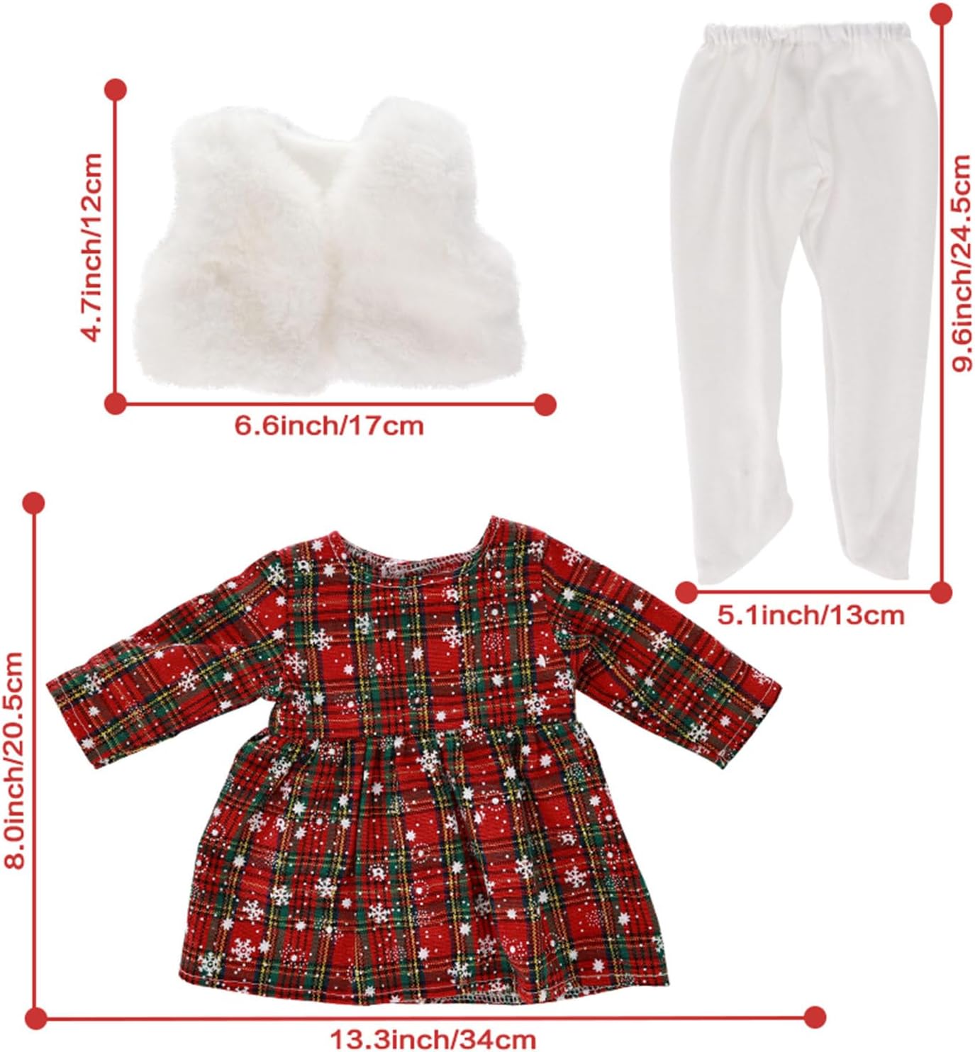 Per feste di Natale, riunioni di famiglia, esposizioni di bambole, questo set di vestiti aggiunge vacanza a ogni occasione, sia per bambini che per collezionisti. Realizzato in tessuto, questo set è cucito per durare e facilità d'uso, permettendoti di vestire e svestire le tue bambole rinate. Con la sua varietà di design, questo set di vestiti per bambole non solo porta eleganza alle vacanze ma serve anche come regalo per le ragazze che amano vestire le loro bambole con stile Festeggia il festival con il nostro set di vestiti di Natale per bambole da 16", completi con vestiti, cappello e sciarpa, indossabile per migliorare la decorazione natalizia della tua bambola. Per gli appassionati di bambole, questo vestito è adatto a un'ampia fascia di età, dai bambini piccoli agli adolescenti, rendendolo un'aggiunta al guardaroba di qualsiasi bambola.