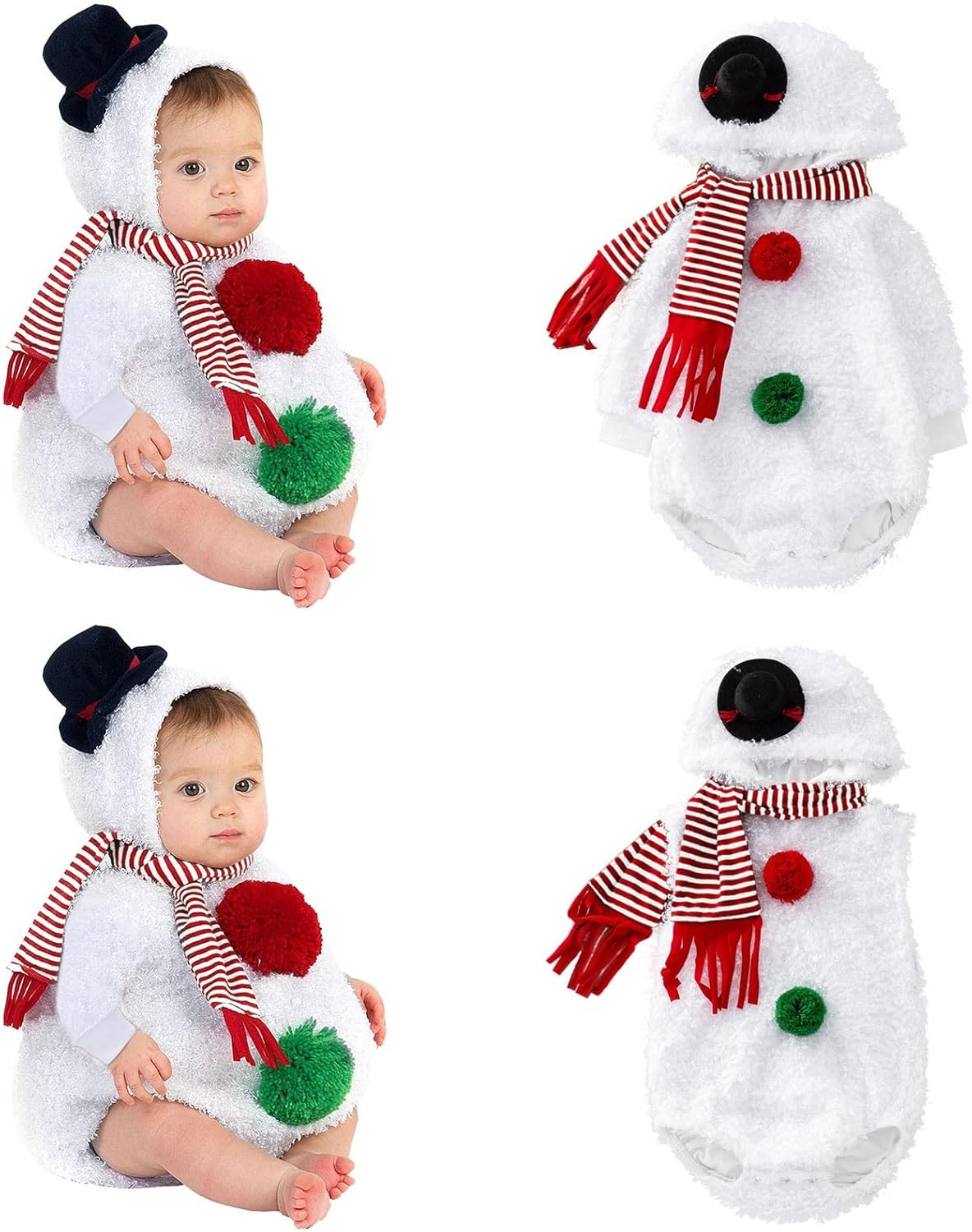 Costume di Natale per Neonati Set Completo con Body Cappello e Pantaloni Abbigliamento da Babbo Natale Carino per Bambini Perfetto per Foto e Feste Taglie 0-24 Mesi (White, 18-24 mesi) Costumi Bambina Neve Natalizia Tutine Pupazzo da Neve Natale Caratteristiche: Materiale: realizzato in comodo poliestere, comodo e traspirante, ideale per l'uso quotidiano. È molto morbido, confortevole, elastico, leggero e si adatta alla pelle. Design: Completo natalizio a maniche lunghe per neonati e bambine, con cappuccio, costume da pupazzo di neve, tutina e sciarpa. Il design elegante e alla moda rende il tuo bambino più attraente. Perfetto per un look casual, quotidiano o per servizi fotografici, è anche un'ottima idea per una sfilata per neonati. Realizzato con materiali morbidi al tatto, non danneggia la pelle del tuo bambino. Funzione: Ideale per un abbigliamento casual da interno o esterno, per appuntamenti, vacanze, uscite, per un look alla moda e allegro. Realizzato con materiali adatti per l'uso quotidiano, adatto per yoga, fitness, corsa, qualsiasi tipo di allenamento o per l'uso quotidiano. Taglia: le taglie del prodotto sono varie, puoi scegliere la taglia adatta e la nostra taglia è asiatica. Se il tuo bambino è , ti consigliamo di scegliere una taglia più grande, grazie. Scenari applicabili: casual, uso quotidiano, spiaggia, casa, club, viaggi, escursioni. Uso quotidiano, lavoro, Natale, appuntamenti, sport, scuola, lavoro, street wear, ecc. Facili da abbinare a stivali, jeans, leggings per un look alla moda in primavera, autunno e inverno. Materiale: misto cotone