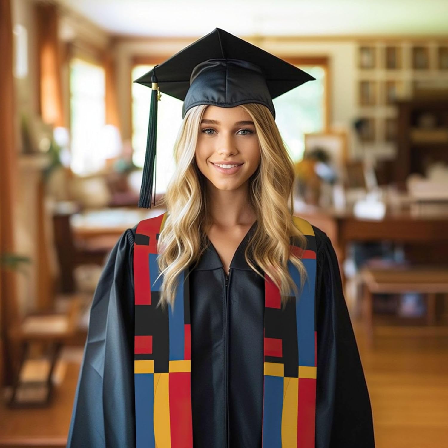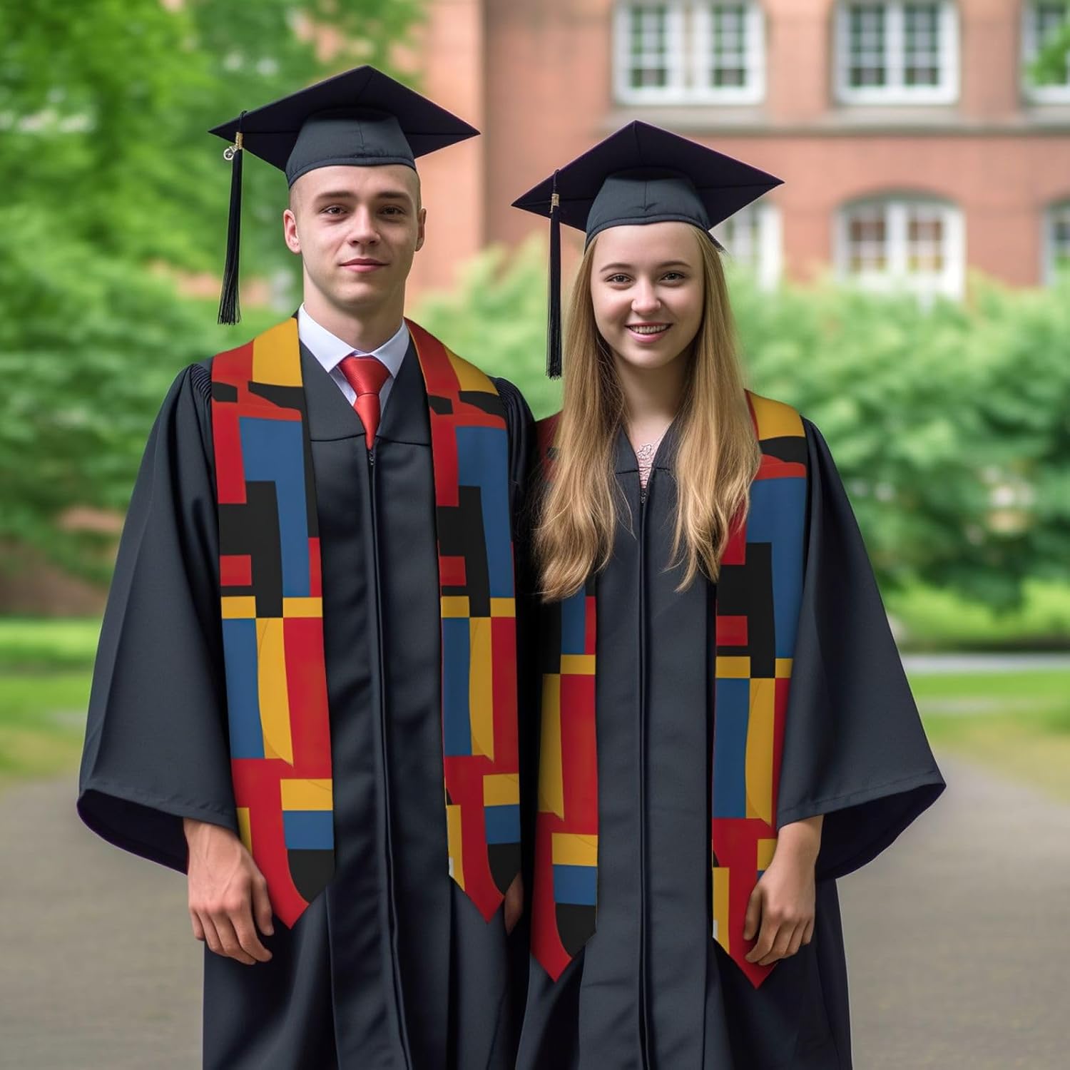 Festeggia la classe del 2025 con l'elegante composizione in rosso giallo blu e nero stampa stola scialle di laurea - un accessorio senza tempo e sofisticato che si abbina perfettamente a qualsiasi abbigliamento di laurea. Realizzata in una miscela di 96% poliestere e 4% spandex, questa composizione in rosso giallo blu e nero stampa stola laurea offre un'esperienza leggera, morbida e durevole. Il tessuto in raso Charmeuse offre una sensazione di lusso e un aspetto brillante, assicurandoti di apparire e sentire al meglio nel tuo giorno speciale. La forma sapientemente progettata di questa stola di laurea assicura una vestibilità perfetta, evitando qualsiasi scivolamento o spostamento durante la cerimonia. Scegli tra due opzioni di stile: estremità appuntite o piatte, per abbinare il tuo stile personale e le tue preferenze. Questa stola versatile è adatta sia per uomini che per donne, rendendola una scelta unisex per qualsiasi laureato. Più di un semplice accessorio, questa composizione in rosso giallo blu e nero stampa stola laurea un regalo significativo per i vostri cari. Che si tratti di tuo figlio, figlia, amica o sorella, questa elegante stola aggiungerà un tocco di raffinatezza al loro ensemble di laurea e servirà come ricordo duraturo dei loro successi accademici.