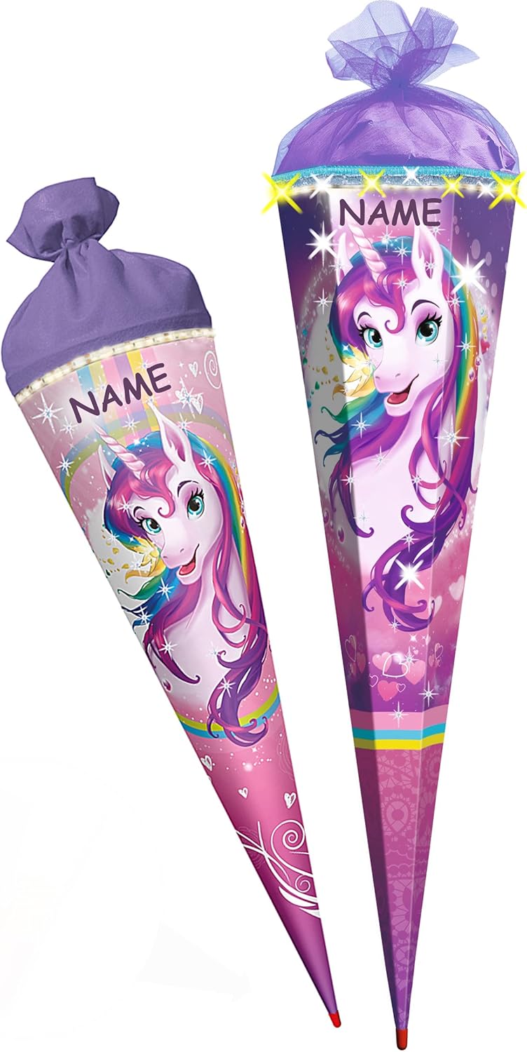 con un fantastico effetto GLITTER E GLIMMER! __ cono scolastico stabile e di alta qualità ___ lungo 35 cm __ il bordo superiore ha una finitura in tulle ___ Forma: ROTONDO ___ Motivo: "Unicorn / Rainbow Unicorn" made in Germany! __ Materiale: cartone rivestito e di alta qualità - SUPER stabile! - idrorepellente! __ fantastici colori di stampa!_____ OPZIONALE è disponibile una punta in plastica abbinata, trasparente e solida da applicare (questo rende la punta del cono scolastico molto stabile e stabile) ---- (questo articolo deve essere ordinato EXTRA al cono scolastico) e come extra: IL cono scolastico individuale con il vostro NOME DESIDERATO - aggiungete semplicemente l'articolo "nome desiderato" come extra nel carrello, il nome verrà quindi abbinato. Un'altra idea: un fiocco personalizzato con i vostri NOMI DESIDERATI - aggiungete semplicemente l'articolo "Fiocco con il nome desiderato" come extra nel carrello, il nome verrà poi abbinato al fiocco per abbinarlo agli zaini / sacchetti regalo ___ ci sono anche piccoli sacchetti da 10 cm come decorazione da appendere, targhette per il nome, decorazioni per la tavola, zaini con steli per composizioni floreali, motivi sparsi, ghirlande e articoli per feste