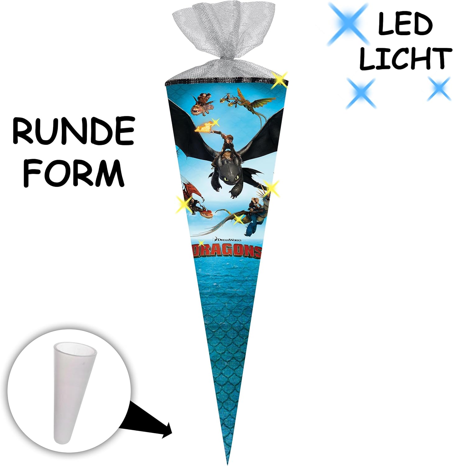 CHE CATTURA L'OCCHIO: fantastica luce LED ed effetto lampeggiante! (quando si preme un pulsante le lampade si accendono e lampeggiano per un certo tempo)! __ stabile e di alta qualità - cono scolastico - lungo 85 cm - con elegante finitura in tulle ARGENTO - forma: 12 - QUADRATO ___ motivo: "Draghi - Come addestrare il tuo drago" l'OCCHIO: ______ incl. grande fiocco con effetto 3D in colore coordinato - questo rende il tuo cono scolastico ancora più bello ______ i modelli di fiocco vengono consegnati misti / stiamo cercando un bellissimo fiocco con effetto 3D abbinato per il tuo Cono scolastico (puoi vedere esempi nelle immagini) Scelta della taglia: 70 / 85 cm _____ made in Germany! __ Materiale: cartone rivestito e di alta qualità - SUPER stabile! - idrorepellente! __ fantastici colori di stampa!_____ OPZIONALE è disponibile una punta in plastica abbinata, trasparente e solida da applicare (questo rende la punta del cono scolastico molto stabile e stabile) ---- (questo articolo deve essere ordinato EXTRA al cono scolastico) e come extra: IL cono scolastico individuale con il vostro NOME DESIDERATO - aggiungete semplicemente l'articolo "nome desiderato" come extra nel carrello, il nome verrà quindi abbinato. Un'altra idea: un fiocco personalizzato con il vostro NOME DESIDERATO - aggiungete semplicemente l'articolo "Fiocco con il nome desiderato" come extra nel vostro carrello, il nome verrà quindi abbinato al fiocco