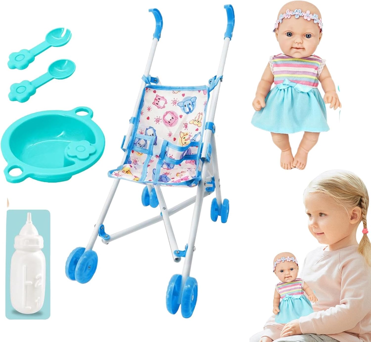 Finemente progettato: ogni dettaglio di questo set di passeggini realistico e dal design accattivante è progettato con cura, fornendo l'esperienza di gioco di ruolo più autentica e imitando i prodotti della vita reale. Ispira l'adattabilità dei ruoli: simula la cura di un bambino con il nostro set e il passeggino, consentendogli di comprendere i benefici e le conseguenze del mangiare, del cambiare il pannolino e del camminare. Aumentare le capacità di comprensione e adattamento in molteplici ruoli all'interno della famiglia e della società promuovendo un senso di responsabilità e imitando scene di vita reale Materiale di alta qualità: realizzato con materiali resistenti e sicuri, questo passeggino ha una struttura stabile e una forte capacità di carico, garantendo tranquillità durante il recupero Incoraggia le qualità di attenzione - Lascia che il lato premuroso di tuo figlio risplenda con il nostro set di passeggini, uno strumento perfetto per apprendere l'empatia - promuove l'immaginazione, le capacità di risoluzione dei problemi e la crescita sociale. REGALO IDEALE - Con un robusto passeggino, questo simpatico giocattolo è un compagno di gioco ideale per. È anche una meravigliosa ricompensa quotidiana o un regalo per ogni occasione speciale, come compleanni, vacanze e Capodanno.