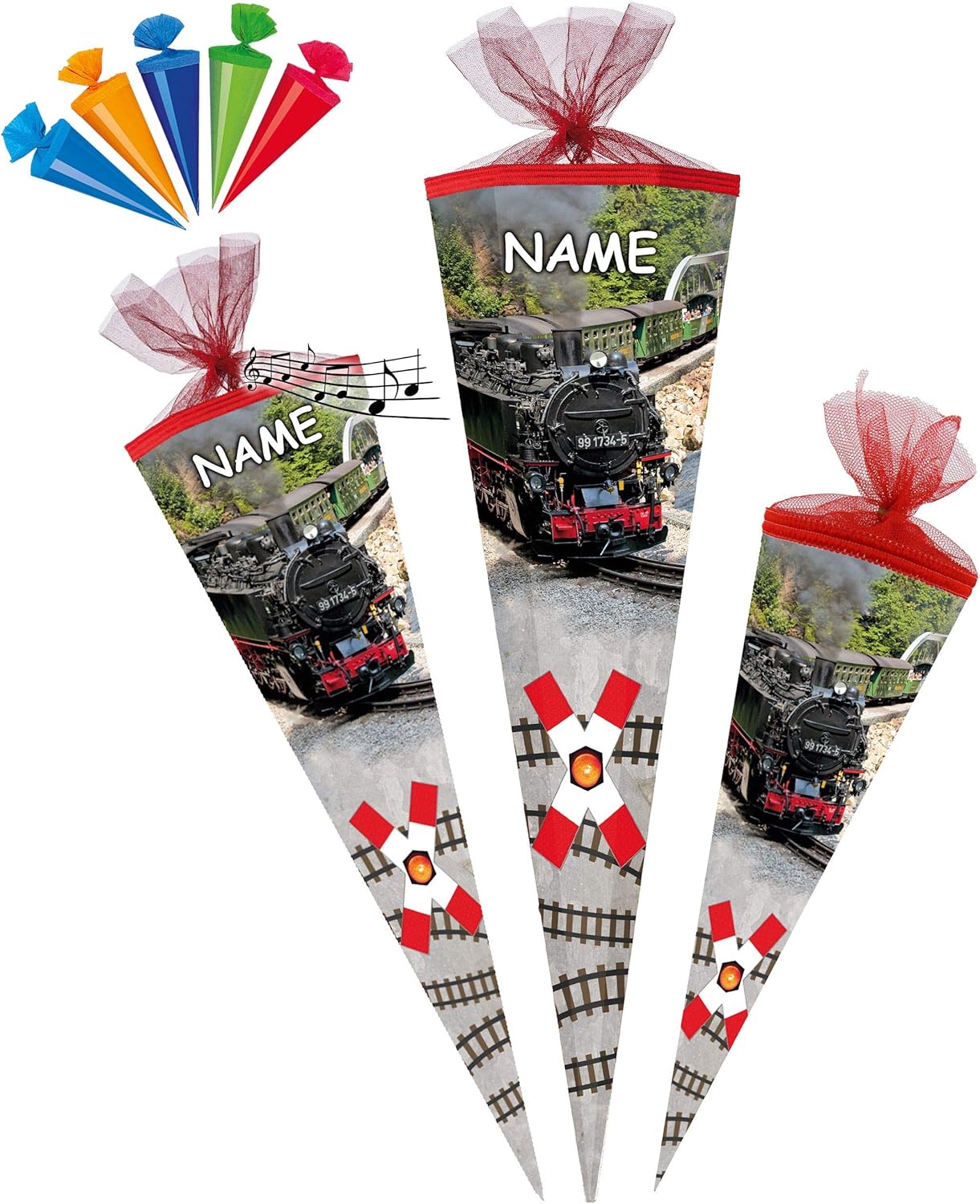 con il fantastico ___ SUONO ferroviario e l'effetto rumore! (attivabile con la semplice pressione di un pulsante) ____ fantastico set _____ + stampa GLITTER e mica!! ____ stabile e di alta qualità - cono per la scuola ___ 70 cm di lunghezza (misurato solo il cartone) ___ forma: ROTONDO ____ il bordo superiore ha un elegante bordo intrecciato e una finitura in tulle ____ motivo: "locomotiva a vapore / locomotiva - ferrovia / treno" + 5 pezzi - coni scolastici extra in un colorato mix di colori da appendere o decorare.... (ciascuno alto 12 cm - misurato solo il cartone) l'OCCHIO: ______ la tua borsa per la scuola individuale ___ incl. colore abbinato grande effetto 3D _ fiocco - con il tuo NOME DESIDERATO - il nome sarà fatto per abbinarsi! ___ viene richiesto il nome - AUTOMATICAMENTE entro 4 ore - NON inviare un messaggio in anticipo ___ i modelli di fiocco vengono consegnati misti / cercheremo un bellissimo fiocco effetto 3D abbinato per il tuo cono scolastico (puoi vedere esempi nelle foto) prodotto in Germania! __ Materiale: cartone rivestito e di alta qualità - SUPER stabile! - idrorepellente! __ fantastici colori di stampa!_____ OPZIONALE è disponibile una punta in plastica abbinata, trasparente e solida da attaccare (questo rende la punta del cono scolastico molto stabile e stabile) ---- (questo articolo deve essere ordinato EXTRA al cono scolastico) e come extra: IL cono scolastico individuale con il vostro NOME DESIDERATO - aggiungete semplicemente l'articolo "nome desiderato" come extra nel carrello, il nome verrà poi applicato al cono scolastico