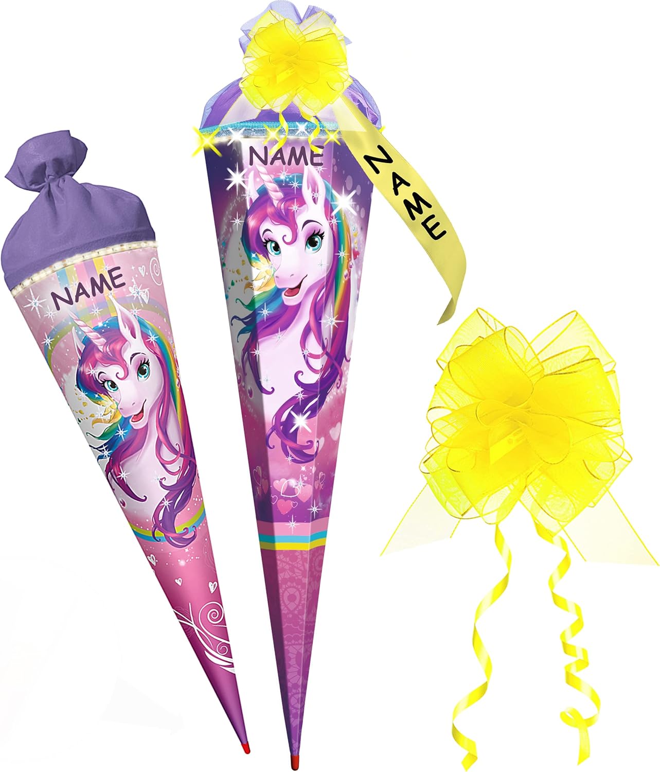 con un fantastico SUONO e un effetto rumore! ____ (quando si preme un pulsante si sentono i tipici rumori dei cavalli e dei nitriti - per un certo tempo)!! __ stabile e di alta qualità - cono scolastico - lungo 70 cm - con polsino in organza e tulle - forma: ROTONDO ___ motivo: "Cavallo - Horse Club" l'OCCHIO: ______ il tuo cono scolastico individuale ___ incl. grande effetto 3D in colore coordinato _ LUCE LED E LUMINOSA - fiocco - con il tuo primo NOME desiderato - il nome verrà personalizzato! ___ viene richiesto il nome - AUTOMATICAMENTE entro 4 ore - NON inviare un messaggio in anticipo ___ i modelli di fiocco vengono consegnati misti / cercheremo un bellissimo fiocco effetto 3D abbinato per il tuo cono scolastico (puoi vedere esempi nelle foto) prodotto in Germania! __ Materiale: cartone rivestito e di alta qualità - SUPER stabile! - idrorepellente! __ fantastici colori di stampa!_____ OPZIONALE è disponibile una punta in plastica abbinata, trasparente e solida da attaccare (questo rende la punta del cono scolastico molto stabile e stabile) ---- (questo articolo deve essere ordinato EXTRA al cono scolastico) e come extra: IL cono scolastico individuale con il vostro NOME DESIDERATO - aggiungete semplicemente l'articolo "nome desiderato" come extra nel carrello, il nome verrà poi applicato al cono scolastico