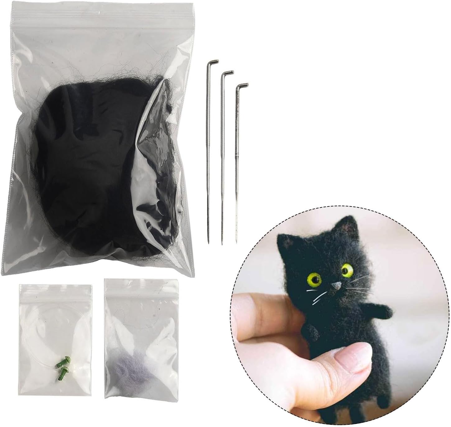 Confezione completa di materiale per feltratura ad ago, perfetto per gli appassionati di artigianato (gatto nero)