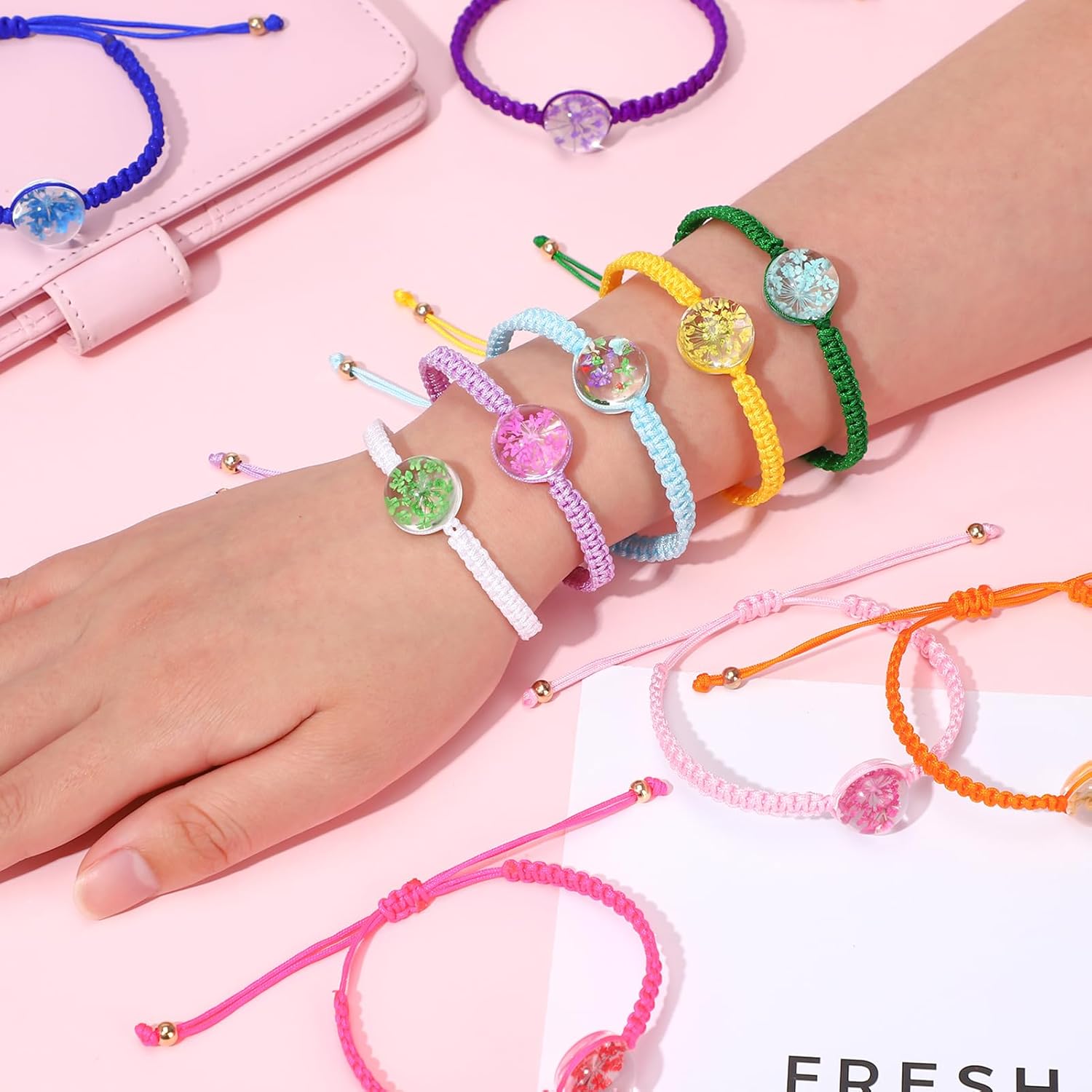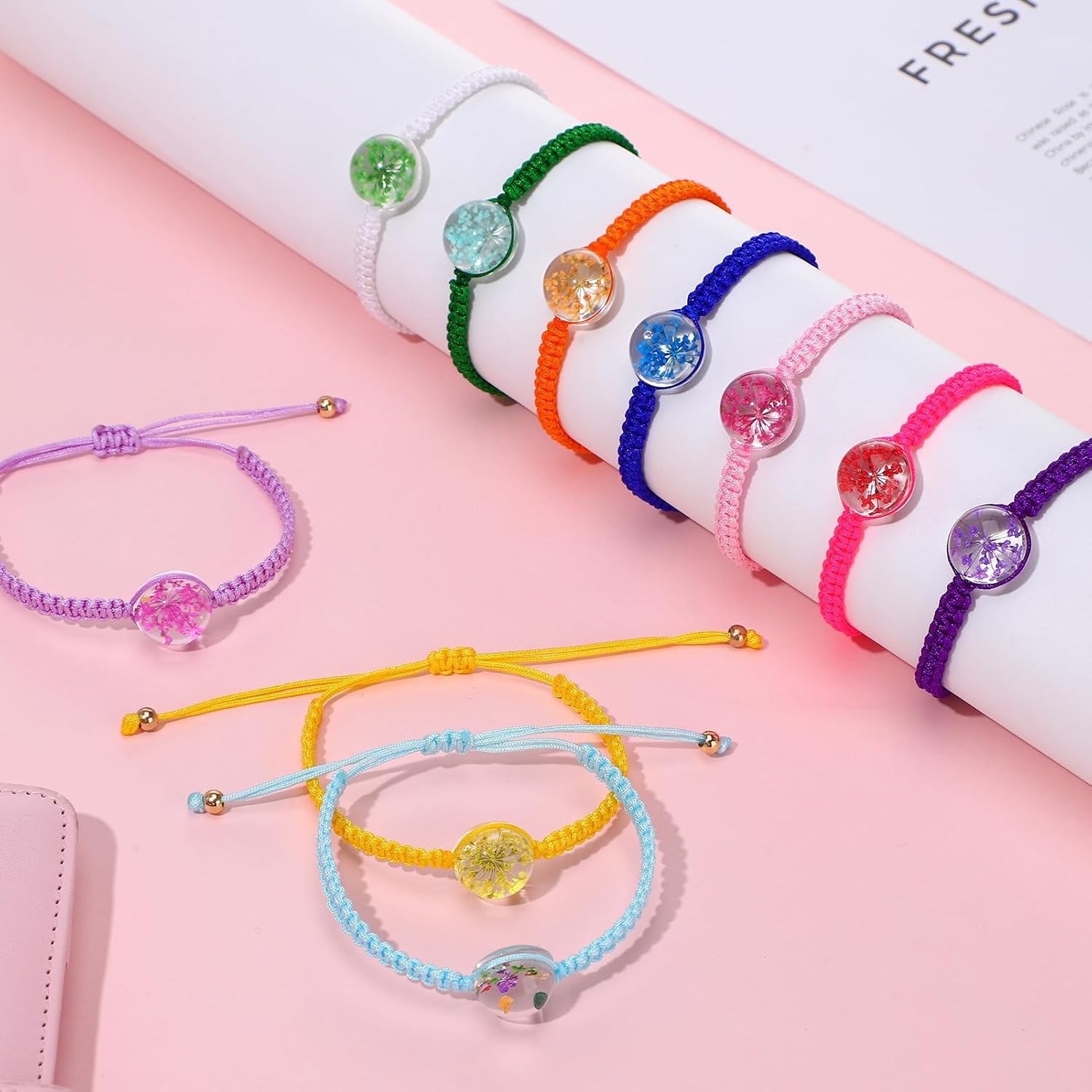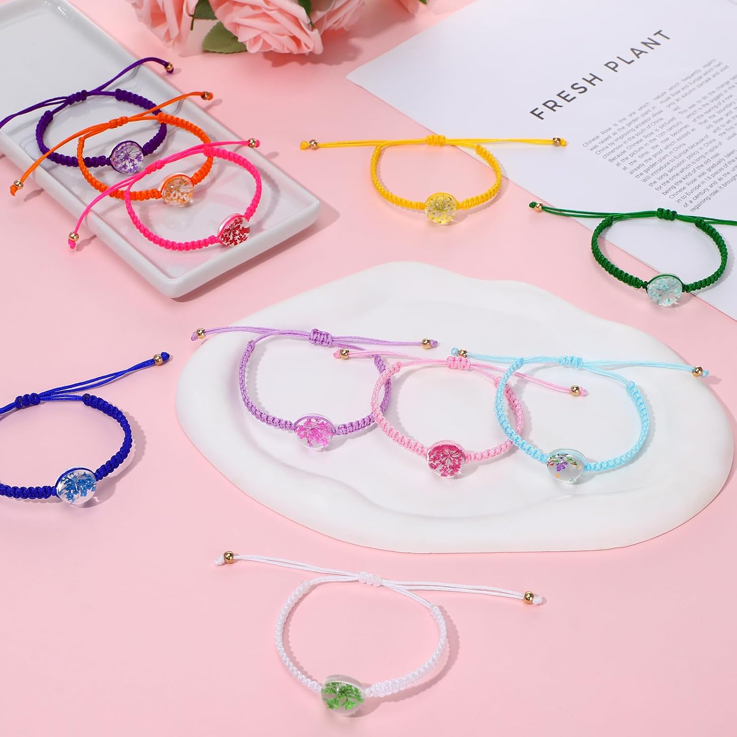 Confezione da 10 braccialetti dell'amicizia per bambine, braccialetti con fiori colorati intrecciati, sacchettini regolabili per feste di compleanno di bambini, donne, adolescenti
