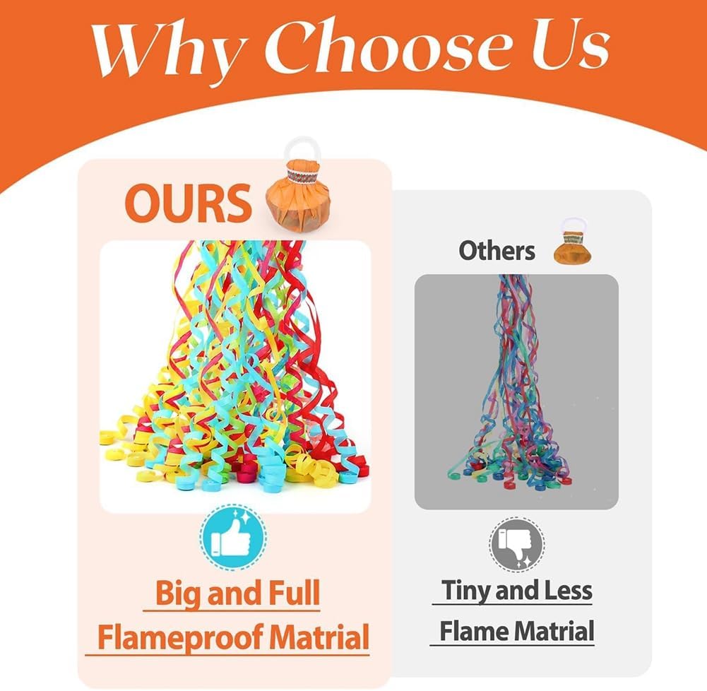 Festeggiamenti senza caos: goditi i festeggiamenti senza il fastidio di pulire. Questi cannoni coriandoli sono un'alternativa più sicura e pulita ai tradizionali cannoni coriandoli. Rendono la pulizia dopo la festa un gioco da ragazzi e assicurano che il divertimento non svanisca. Confezione sfusa per feste di grandi dimensioni: questo set contiene 10 bottoni automatici colorati, ciascuno riempito con 30 nastri lunghi circa 5 m. Realizzati in carta velina ignifuga, questi bottoni automatici sono perfetti per aggiungere un tocco di colore a qualsiasi grande celebrazione. Design facile da usare: tieni semplicemente l'anello con un dito, strappa la carta nella parte inferiore e lancia le stelle filanti per accendere la celebrazione. La confezione contiene 30 nastri lunghi fino a 5 metri e garantiranno un aspetto spettacolare in ogni evento. Romantico e indimenticabile: aggiungi un tocco di romanticismo e unicità alle tue occasioni speciali con i nostri streamer colorati e facili da pulire. Perfetti per i matrimoni, questi bottoni automatici ti consentono di creare facilmente una finitura magica o di migliorare l'atmosfera della festa. FORNITURE VERSATILI PER LE FESTE: immergiti in un mondo di colori con i nostri streamer di carta velina. Ideali per matrimoni, compleanni, Natale, Capodanno, lauree e altro ancora, questi bottoni automatici creeranno una celebrazione vibrante che i tuoi ospiti ricorderanno per gli anni a venire.