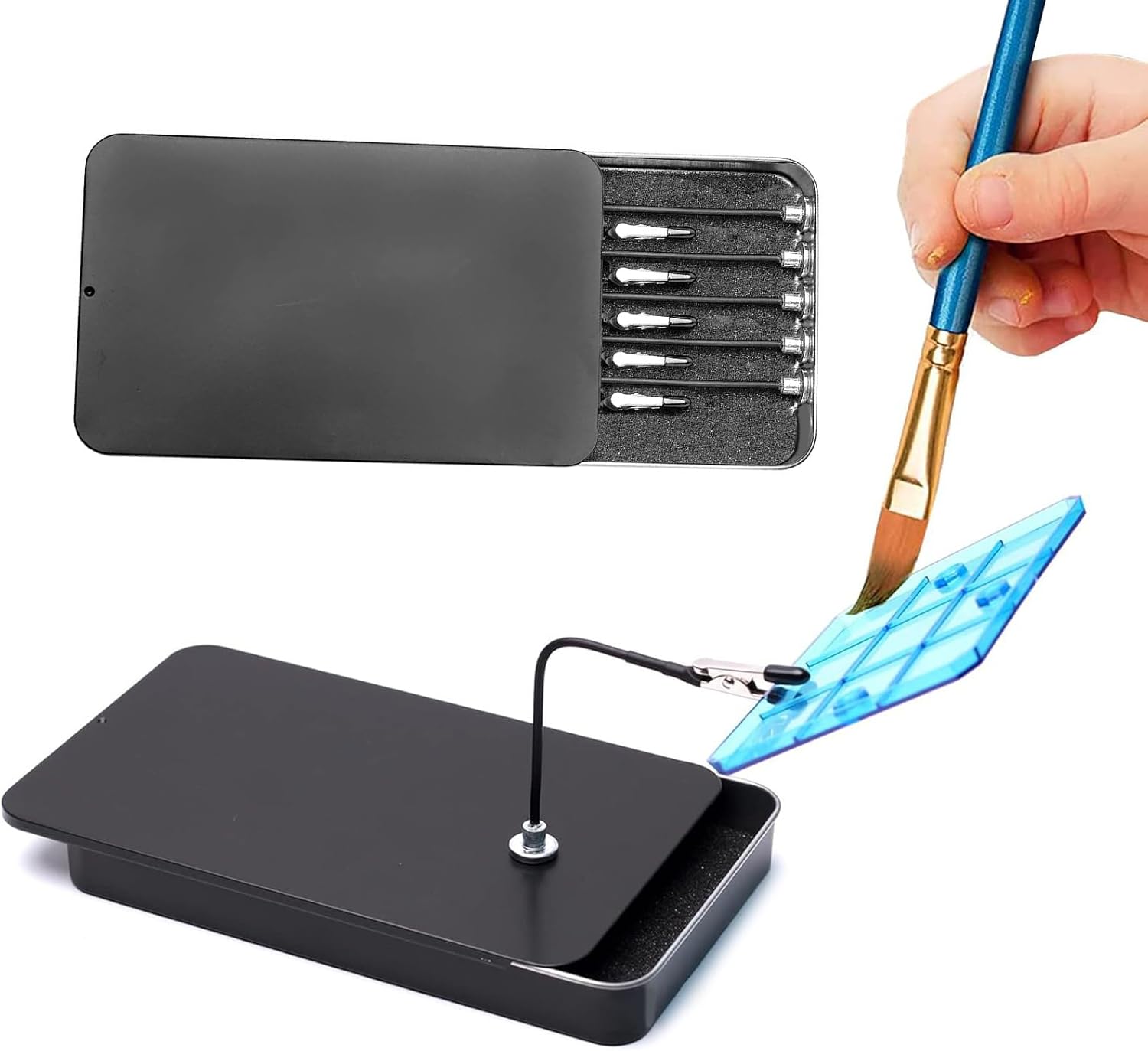 Il rivestimento isolante in gomma protegge le parti dai graffi e garantisce una presa sicura su oggetti grandi e piccoli senza causare danni Questo set viene fornito con una custodia in metallo, che lo rende un'ottima opzione per gli appassionati di progetti di modelli dettagliati Con una connessione solida, il braccio a clip rimane saldamente in posizione su superfici metalliche, garantendo un funzionamento coerente Il braccio regolabile consente il posizionamento preciso delle parti a qualsiasi angolazione, ideale per maneggiare componenti delicati durante le attività di verniciatura Il design flessibile della clip per vernice consente regolazioni facili e precise, rendendola adatta a varie applicazioni di pittura e modellismo