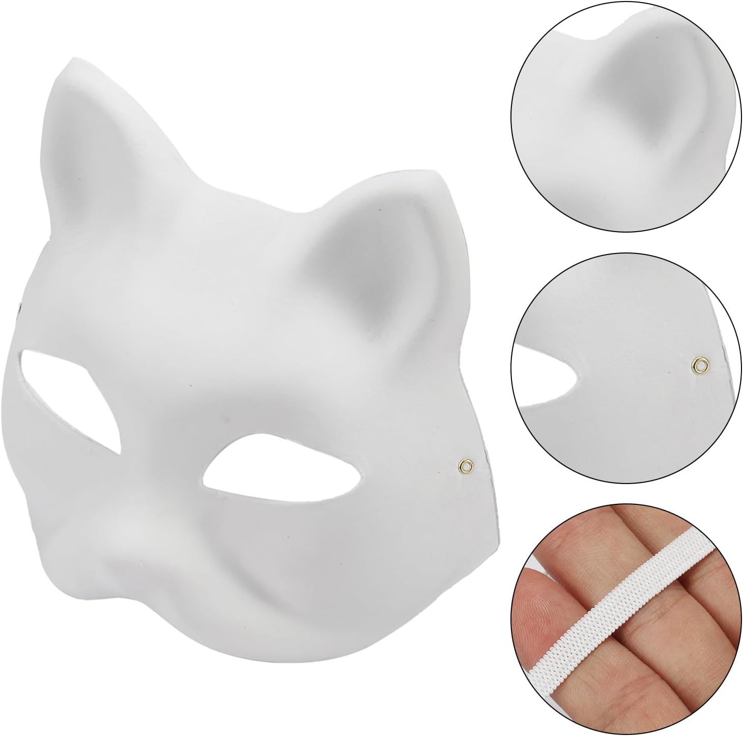 Good mask, have the elastic already attached. Have ordered more for my daughters birthday party, make your own mask, we use paint sticks for colouring the main and then paintbrushes for the details.