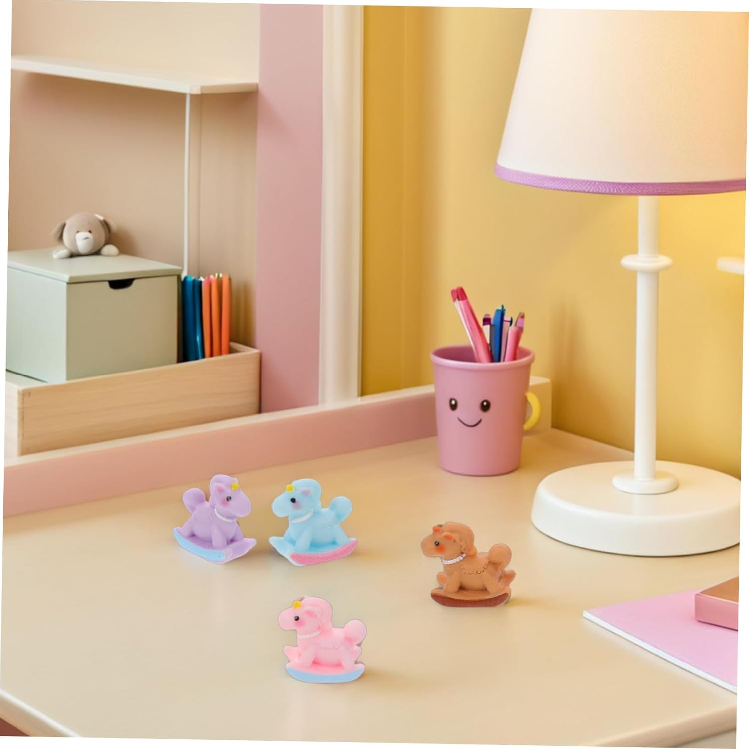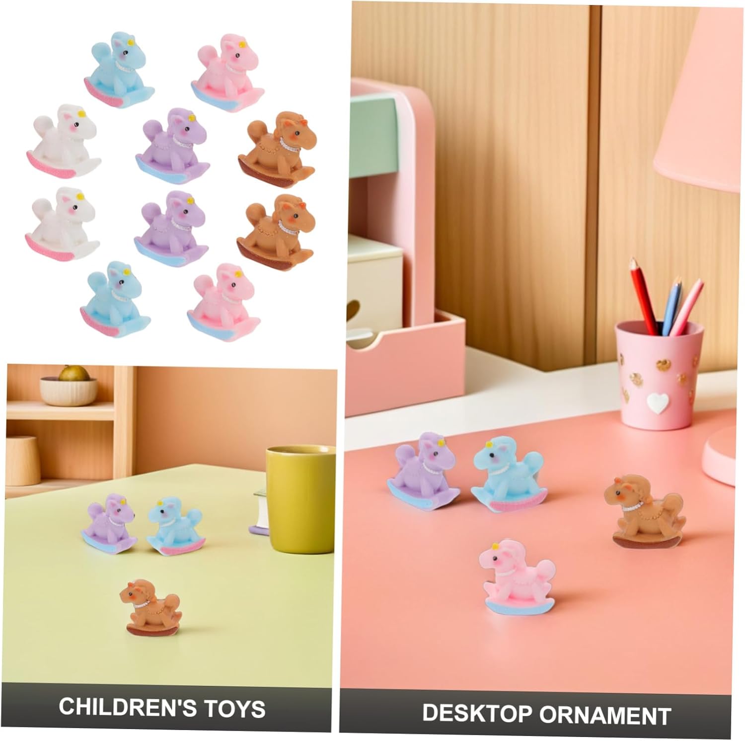 Opzioni di visualizzazione compatte: il mini ornamento multicolore del cavallo a dondolo e il mini unicorno del cavallo a dondolo sono progettati per un facile posizionamento su scrivanie, case delle bambole o giardini fatati, per decorare piccoli spazi, come ornamento per modello di cavallo o come ornamento per statua di animale in resina. Decorazioni per le feste: usa le figurine di mini cavalli come decorazioni da tavolo per feste di compleanno o come toppers per cupcake per decorare le tue decorazioni per feste di aggiornamento e rendi il tuo evento più memorabile con mini cavalli a dondolo multicolori, ornamenti natalizi e toppers per cupcake. Dimensioni compatte e versatili: queste mini figurine di cavalli a dondolo sono adatte come decorazione di cavalli a dondolo in miniatura per case delle bambole o come simpatiche figurine per la scrivania e possono adattarsi facilmente a qualsiasi casa delle bambole o scrivania per uno stile giocoso. Statuette di mini cavalli in resina per il giardino delle fate, statuette di cavalli in miniatura fatte a mano. Regali e ricordi indimenticabili: il mini ornamento natalizio del cavallo a dondolo e gli accenti a forma di statuetta di cavallo in miniatura sono regali premurosi per collezionisti e amanti apprezzati per i loro ricordi gioiosi o lo stile unico. Statuine di cavalli in resina in miniatura, statuina di cavallo a dondolo "unicorno" in resina Accessori creativi fai-da-te: il design degli accessori artigianali fai-da-te assicura che queste miniature di cavalli in resina per mini paesaggi da giardino promuovano la creatività di bambini e adulti in giochi di ruolo o progetti artigianali, mini cavallo a dondolo con unicorno, mini statuina di cavallo a dondolo
