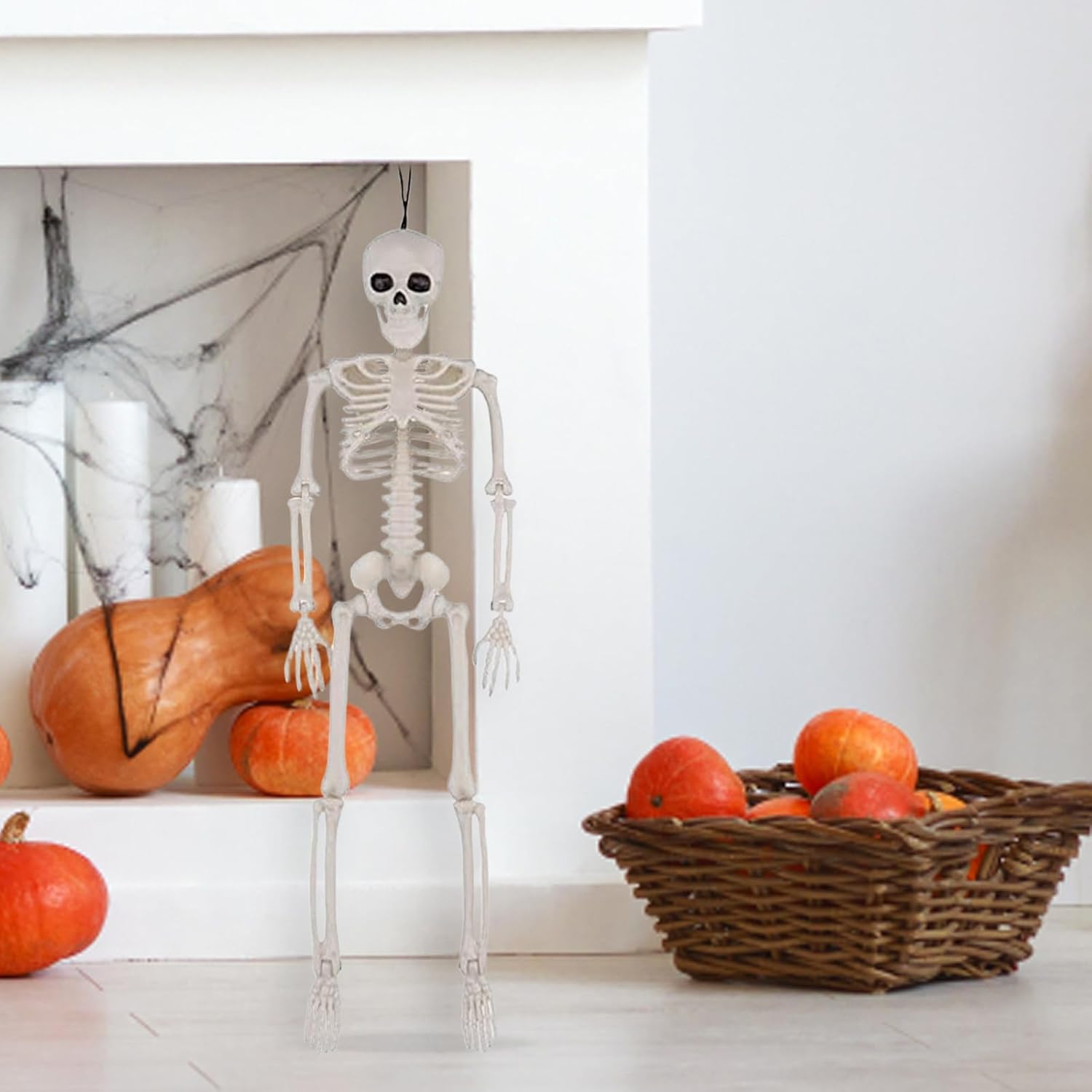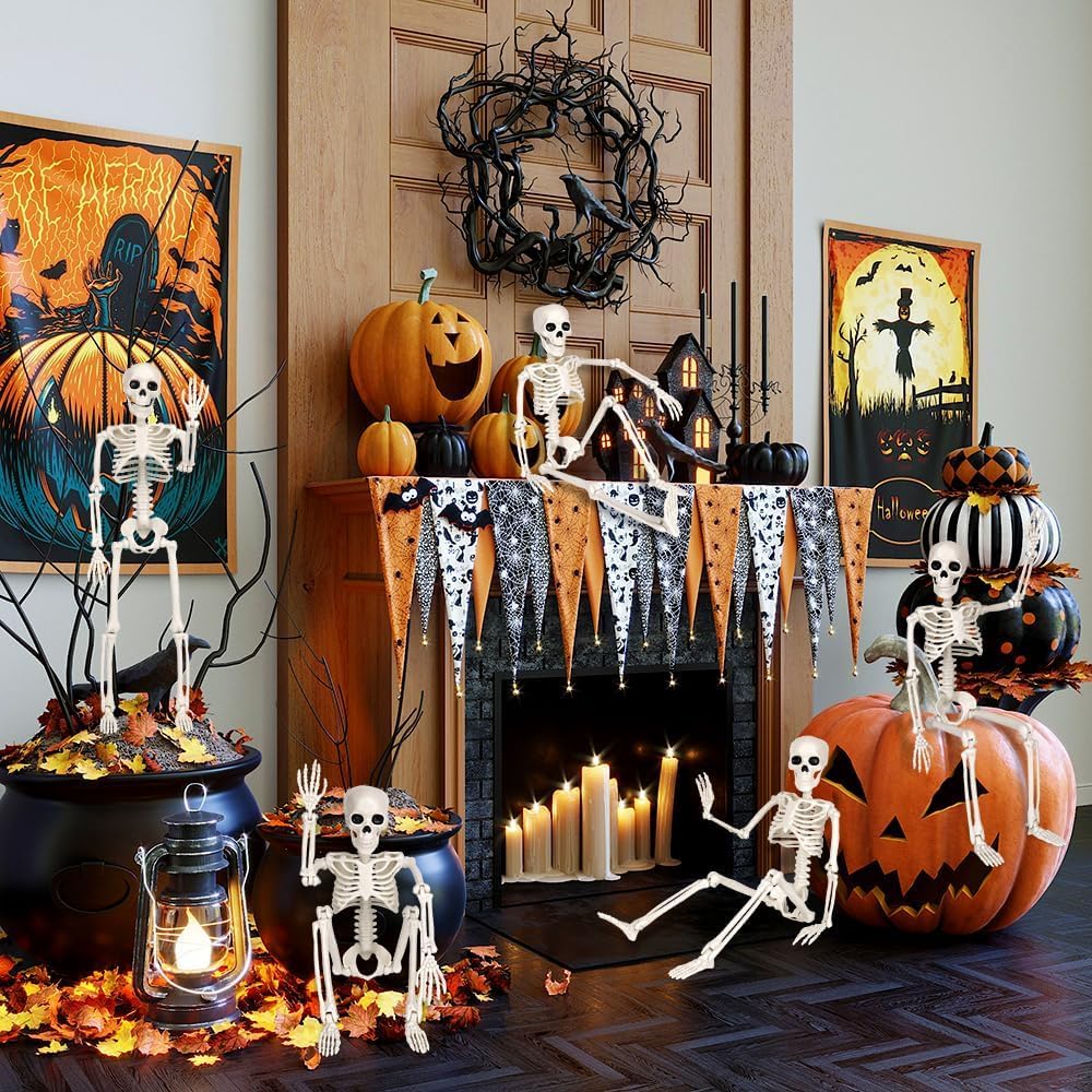 Confezione da 10 mini scheletri posizionabili Include 10 scheletri altamente dettagliati da 40 cm con articolazioni mobili (spalle, gomiti, ginocchia) per infinite possibilità di disposizione. Perfetto per creare scene spettrali in casa, in giardino o alle feste. Dettagli realistici e resistenza agli agenti atmosfericiLa precisa struttura ossea e il trattamento superficiale opaco simulano le ossa vere. La plastica robusta resiste alla pioggia, al vento e ai raggi UV: ideale per l'uso all'aperto. Applicazione versatile Appenderli su alberi, porte, mobili o combinarli con lanterne e ragnatele. Adatto anche per spazi interni come soggiorni, cucine o uffici domestici. Facile da montare e portatile Grazie all'apertura con gancio integrato (2 cm di diametro), gli scheletri possono essere appesi in pochi secondi. Il design leggero (120 g ciascuno) li rende il perfetto trasporto di decorazioni. Set perfetto Il set è adatto agli appassionati di Halloween, agli organizzatori di eventi o come creativo per famiglie e amici.