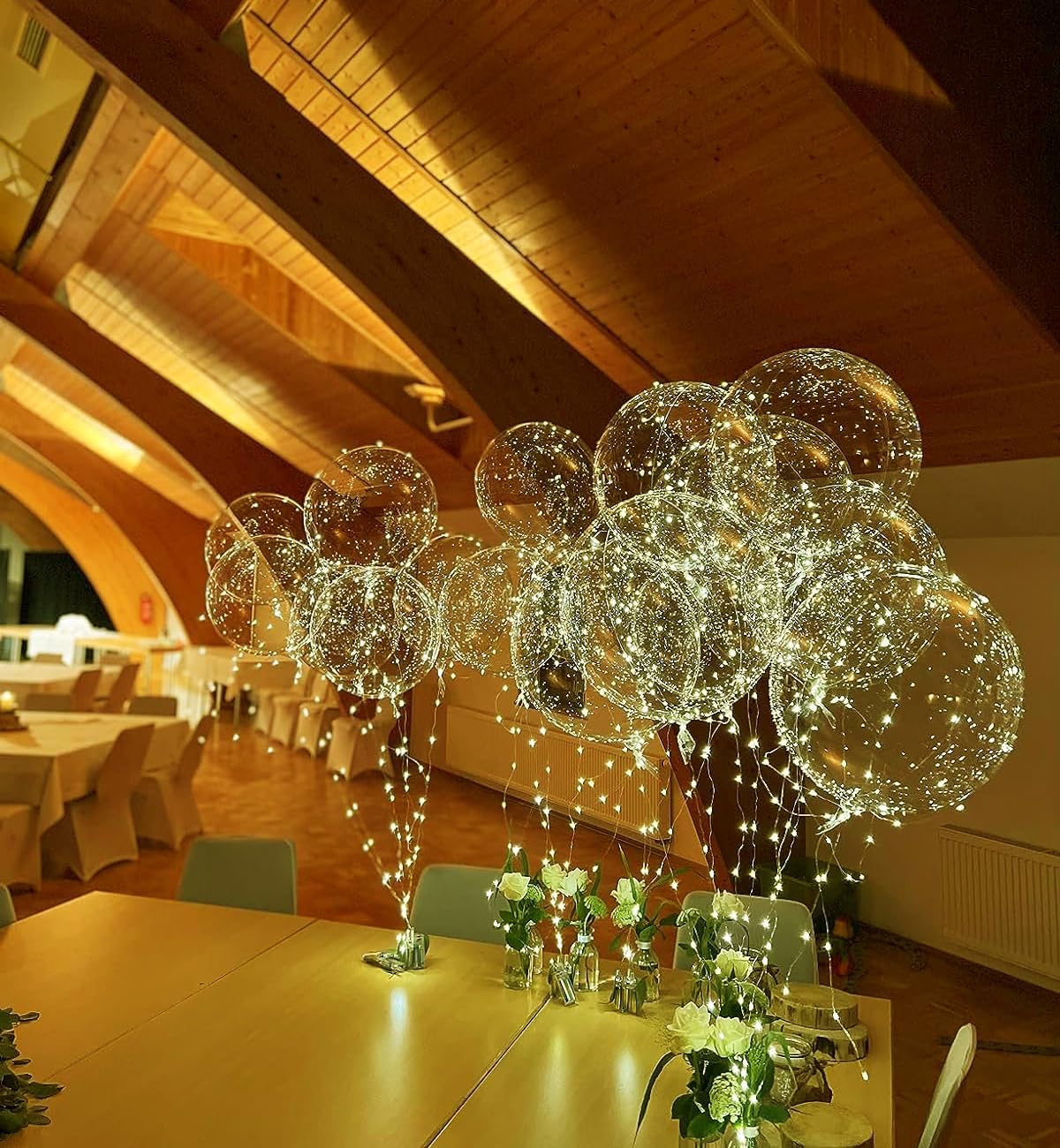 【Realizzati con materiali di protezione ambientale】 Questi palloncini luminosi sono realizzati in lattice di alta qualità, sono sicuri, durevoli e non facili da rompere; I palloncini luminosi possono galleggiare solo se sono riempiti di elio. 【Bellissime lucine】I palloncini trasparenti sono dotati di lucine lunghe 3 metri, realizzate con fili di rame argentati e perline LED, che garantiscono una maggiore durata, non si surriscaldano per un utilizzo sicuro. Dopo la festa, le lucine possono essere riciclate e riutilizzate. 【Installazione semplice】 Seguire le istruzioni incluse per assemblare i palloncini della festa. Prima di gonfiare il palloncino, espandere completamente il palloncino, fare qualche nodo e poi avvolgere la striscia LED sul palloncino trasparente. Quando si gonfia con aria anziché con elio, il palloncino può essere appeso al soffitto o alle scale. 【Contenuto della confezione】12 palloncini trasparenti, 10 lucine a LED, 50 punti colla. Il palloncino di compleanno è alimentato da batterie (2x AA non incluse). 【Nessun rischio acquistato】 Il nostro servizio clienti ti aiuterà a risolvere facilmente il tuo problema. Se non sei soddisfatto di ricevere i nostri palloncini, puoi richiedere una restituzione incondizionata e un rimborso entro il periodo applicabile. Puoi contattare il nostro servizio clienti in qualsiasi momento. Saremo felici di risolvere il tuo problema.
