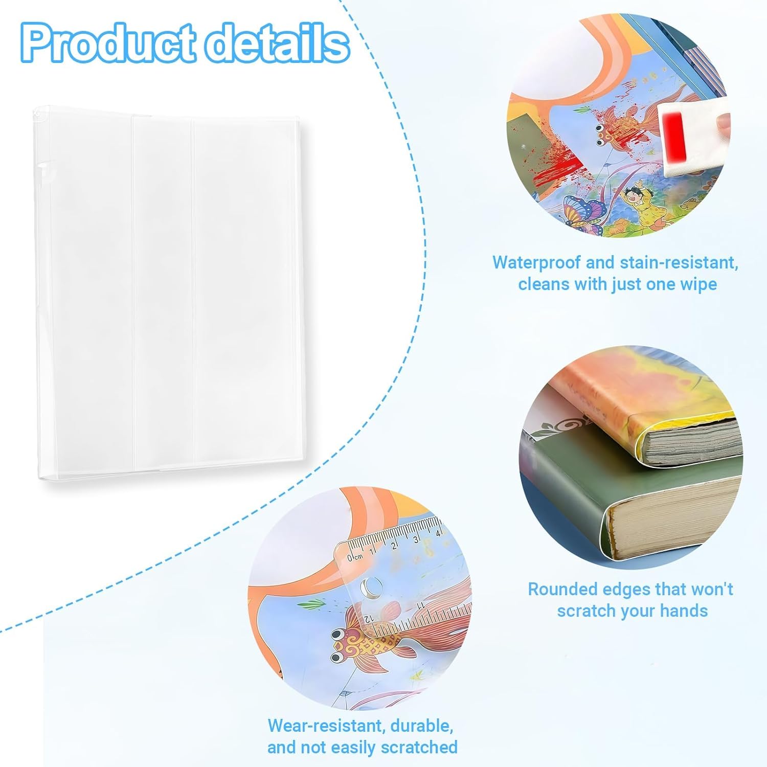 【Materiali di alta qualità】 Questi pacchetti di 10 protezioni per quaderni sono realizzati in PP resistente, fornendo una protezione affidabile contro umidità, macchie e usura. Flessibile e indeformabile, questo materiale garantisce che i tuoi libri rimangano in ottime condizioni anche dopo un uso prolungato. 【Facile da utilizzare】 Facile da installare, copre il libro trasparente, basta inserire le pagine del tuo libro nei lembi di copertina. Non sono necessarie abilità speciali e il nastro adesivo incluso protegge i tuoi libri da polvere e impronte digitali. 【Design adattabile】 La trasparenza del materiale consente una rapida identificazione del contenuto dei libri senza rimuovere la copertina. Inoltre, la larghezza di un lato della copertura è regolabile per adattarsi allo spessore di diversi lavori, garantendo una protezione efficace. Dimensioni adatte: le nostre copertine per notebook offrono (16 K, 265 x 190 mm), che possono soddisfare le esigenze di molti tipi di libri. 【Applicazioni diversificate】 Queste copertine trasparenti sono ideali per proteggere libri di testo, quaderni e riviste. Il loro formato versatile li rende perfetti per l'uso a scuola, in ufficio o a casa, garantendo la longevità dei tuoi libri preferiti.