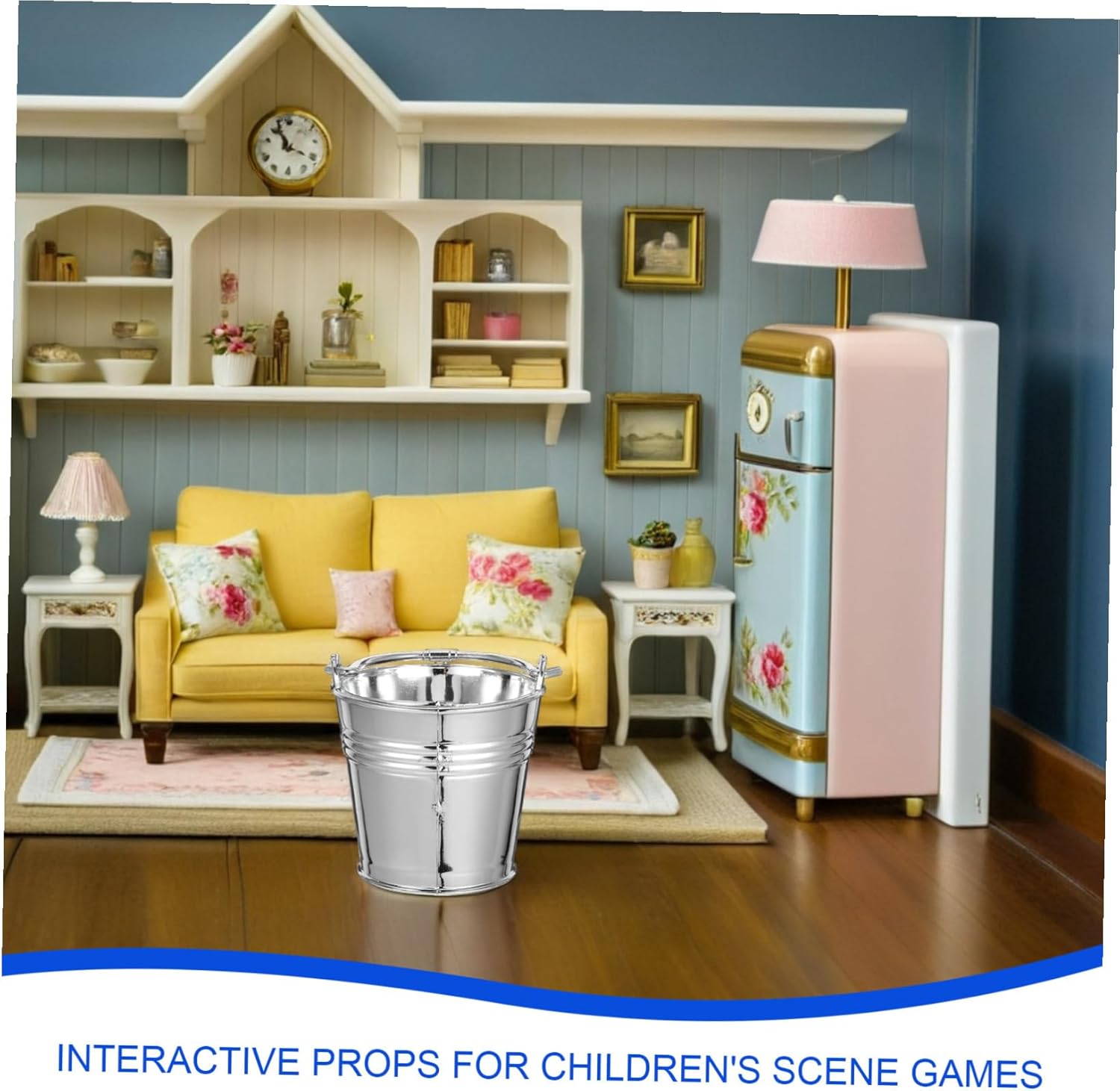Ciondolo in miniatura: questi piccoli secchi sono progettati per affascinare i bambini con le loro dimensioni incantevoli e incoraggiare il gioco fantasioso e l'esplorazione creativa. giocattolo a botte da giardino, secchio per casa delle bambole Versatile: ideale per giochi al chiuso, picnic all'aperto o avventure in spiaggia. Questi secchi si adattano a diversi scenari e offrono intrattenimento senza fine. Adatto per uso interno ed esterno: sia in soggiorno, in giardino o in spiaggia, questi secchi offrono intrattenimento in qualsiasi ambiente, secchio per il bagno, decorazione per la cucina Aspetto autentico: il design placcato argento aggiunge un tocco realistico e rende questi secchi un'aggiunta affascinante a qualsiasi scenario di gioco, pentole da gioco, mini secchio di latta Pulizia: la superficie liscia consente una pulizia facile e veloce, assicurando che il secchio rimanga pulito e, secchio per casa delle bambole, mini secchio da scrivania