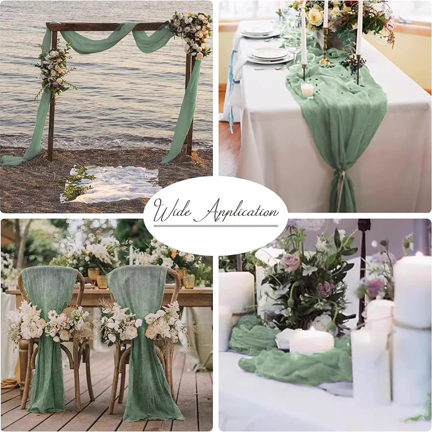 Dimensioni: 90x180cm, 90x300cm Produzione: Realizzato in garza di alta qualità con una trama plissettata, questo runner da tavolo è morbido e cade magnificamente Runner da tavolo extra lungo: può essere facilmente piegato e regolato per adattarsi a diversi tipi di tavolo. Comodamente lavabile a mano o in lavatrice in acqua fredda, è resistente e pratico. Utilizzo versatile: questo runner da tavolo in garza valorizza non solo i tavoli da pranzo e gli schienali delle sedie, ma anche gli archi nuziali, gli allestimenti per feste, i tavoli da dessert, le tende di sfondo e molto altro ancora. Istruzioni per la cura: si consiglia di lavare a mano il runner da tavolo in garza stropicciata in acqua fredda con un detersivo delicato o in lavatrice con ciclo delicato e sacchetto per il bucato.