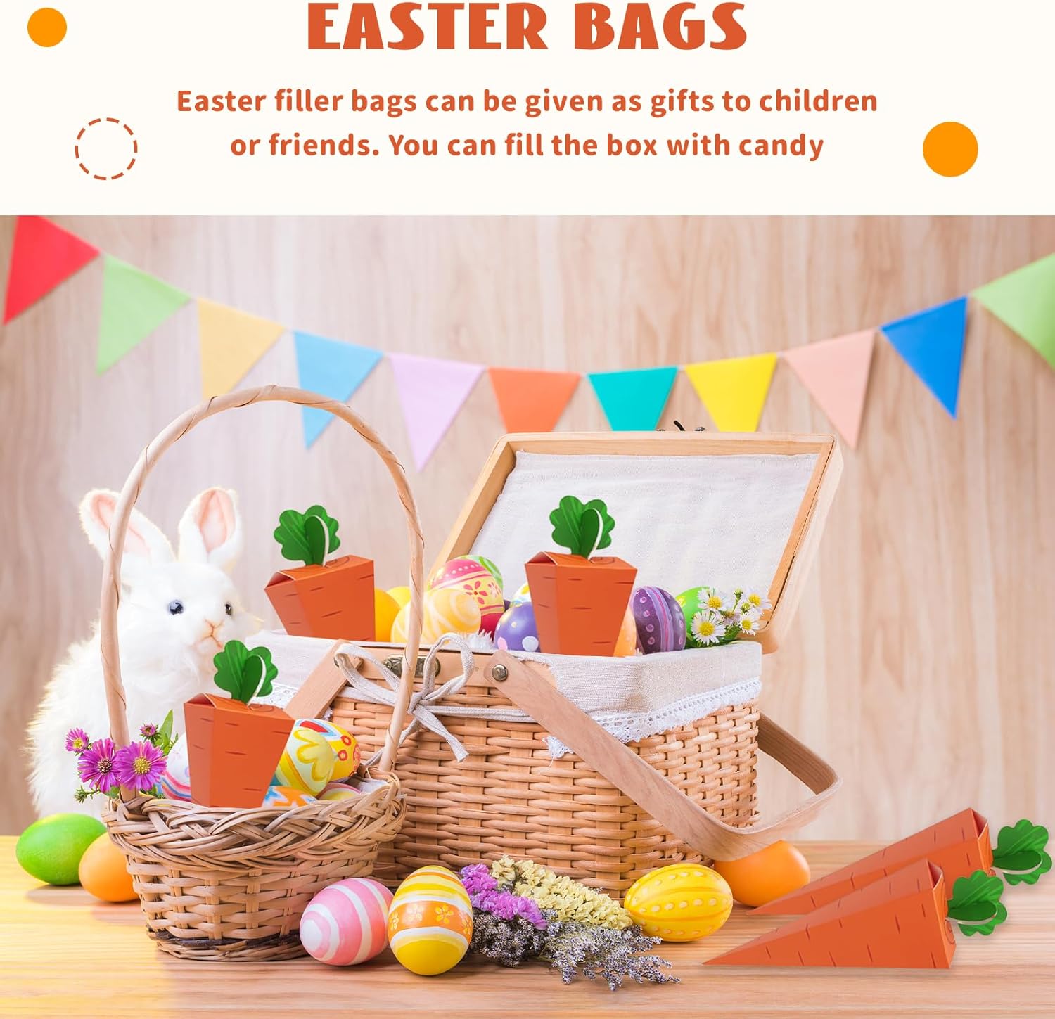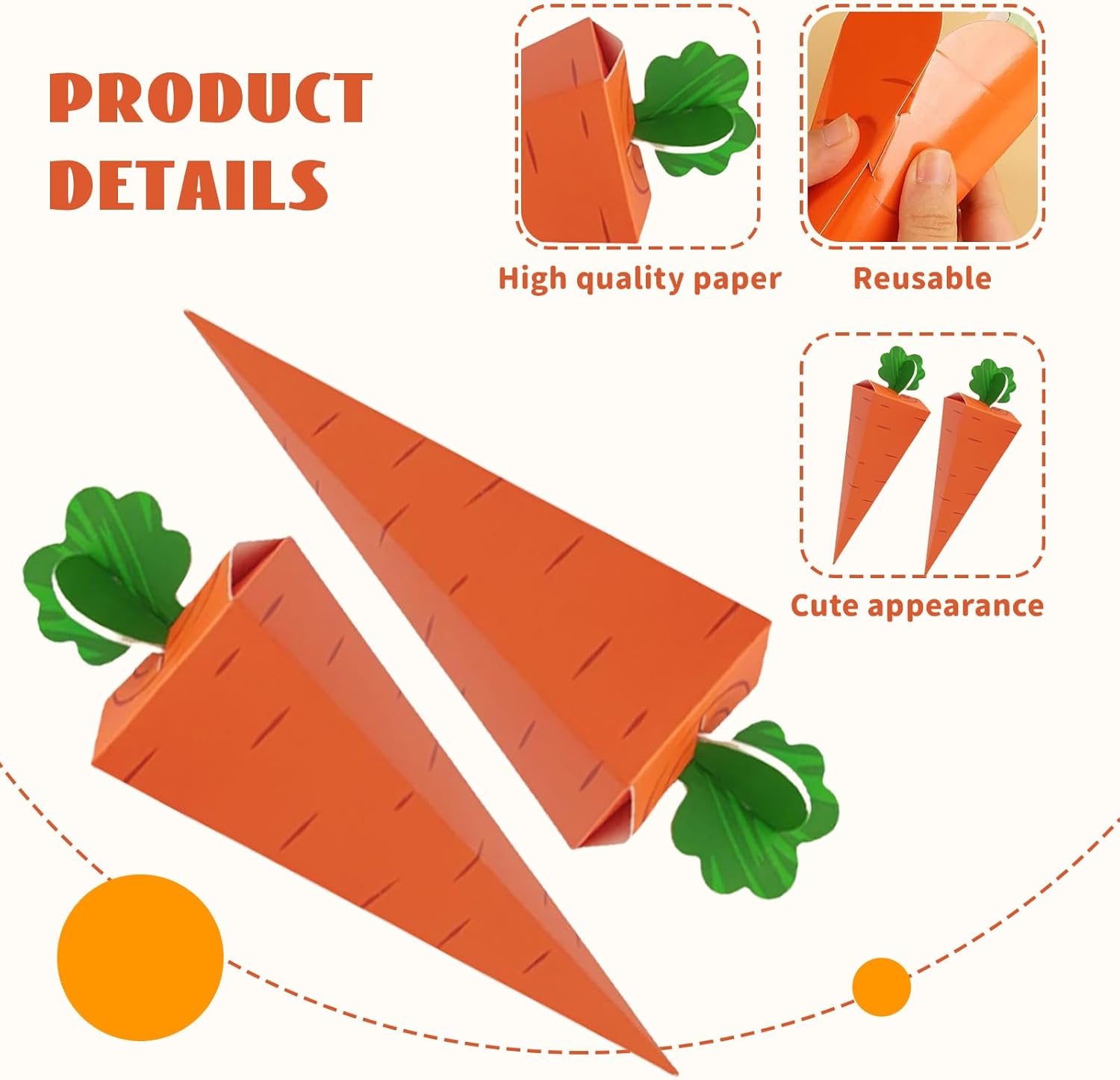 Design unico: questi sacchetti pasquali hanno un'incantevole forma a carota e portano un'atmosfera primaverile ad ogni celebrazione Carta di alta qualità: i sacchetti sono realizzati in carta robusta, ideali per piccoli regali e sacchetti per feste Uso versatile: perfetti per riempire cestini pasquali, come decorazione o come confezione regalo per piccole sorprese Dimensioni pratiche: i piccoli sacchetti di carta sono ideali per dolci, piccoli giocattoli o altri sacchetti per feste Confezione regalo: questi sacchetti regalo sono un'ottima scelta per i regali di Pasqua e renderanno ogni celebrazione indimenticabile