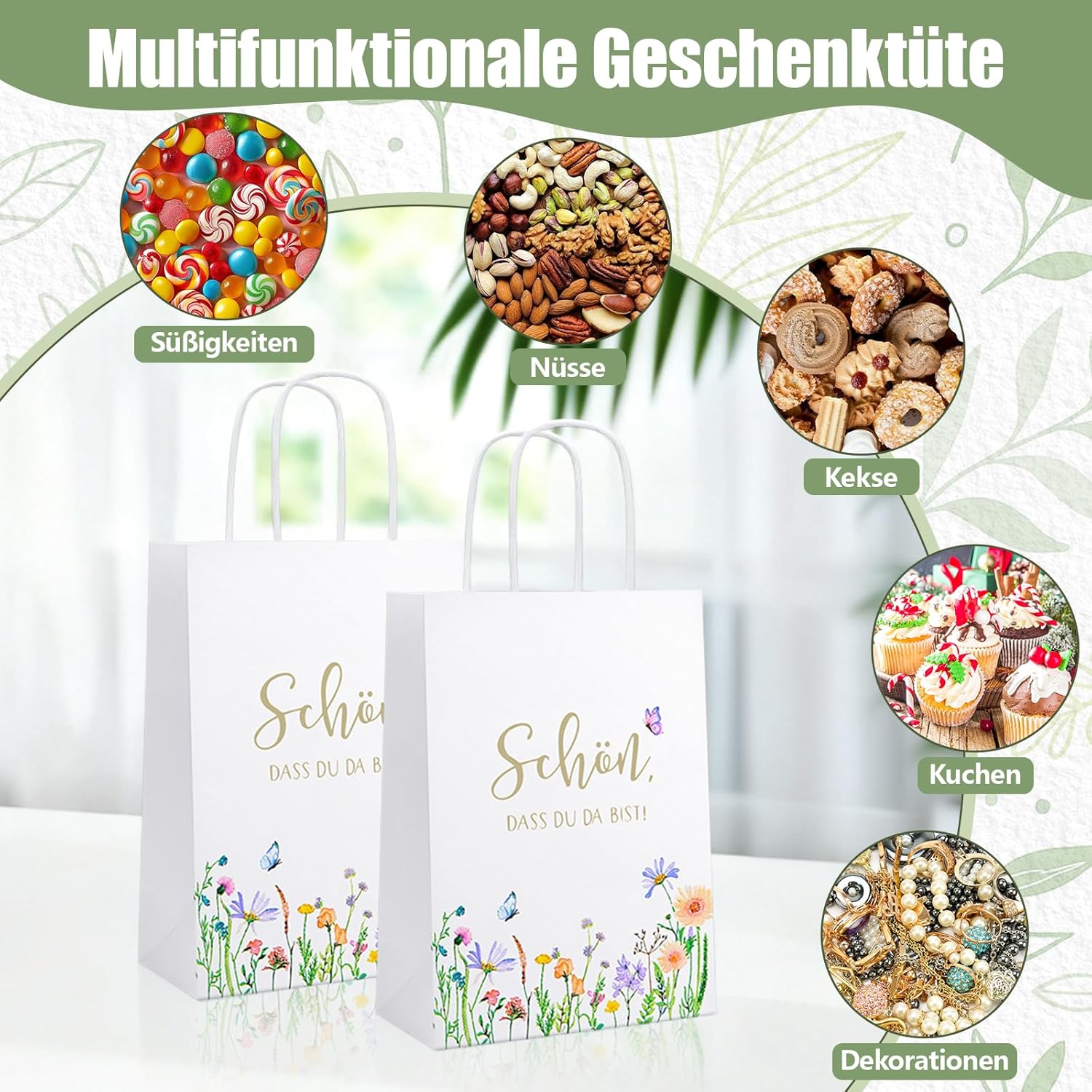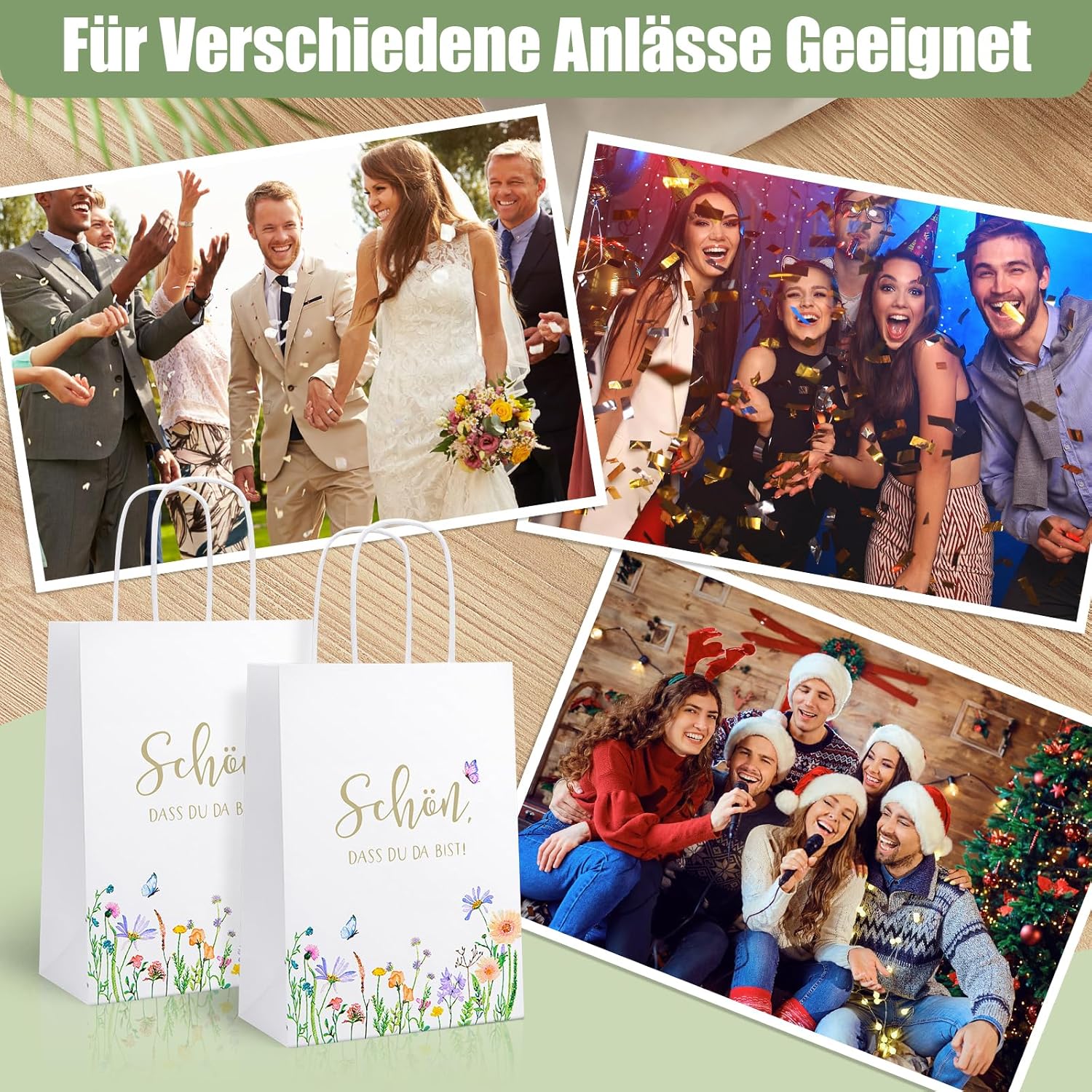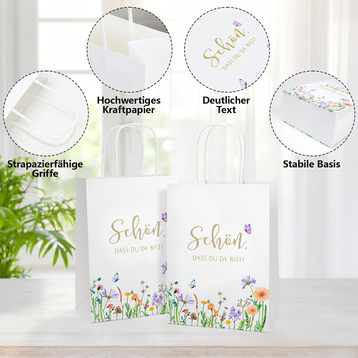 【Gesto sincero】Riceverai 10 sacchetti regalo con la scritta "Grazie" in un design elegante e chiaro che esprime in modo efficace la tua sincera gratitudine. Ogni sacchetto regalo misura 21 x 15 x 8 centimetri, rendendolo ideale da portare con te. 【Materiali di alta qualità】 I nostri sacchetti regalo di nozze sono realizzati in carta kraft di alta qualità, resistente all'umidità e agli strappi. La base è rinforzata per sopportare un peso da 5 a 10 chilogrammi. Sono inodori e riutilizzabili e possono essere piegati quando non vengono utilizzati per risparmiare spazio. 【Personalizzabili】 La superficie liscia di queste borse da festa in carta kraft consente una facile personalizzazione. Puoi aggiungere etichette, nastri, adesivi e altro per creare una soluzione di imballaggio unica e personalizzata. 【Comodo da trasportare】 Le maniglie di questa borsa regalo sono progettate con corde rotonde, comode da tenere, antiscivolo e facili da trasportare. Puoi mettere piccoli giocattoli, caramelle o altri oggetti nei sacchetti regalo. 【Ampia gamma di usi】 Le nostre borse shopper in carta presentano un design semplice ed elegante e sono adatte a varie occasioni come matrimoni, feste di compleanno, festival, Natale e riunioni varie. Sono una scelta eccellente per trasmettere il tuo calore e i migliori auguri.