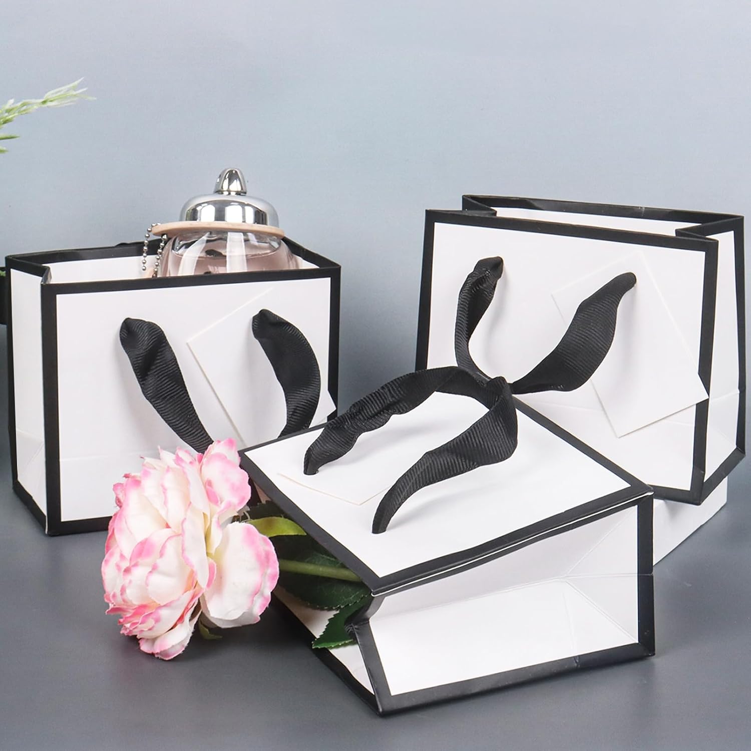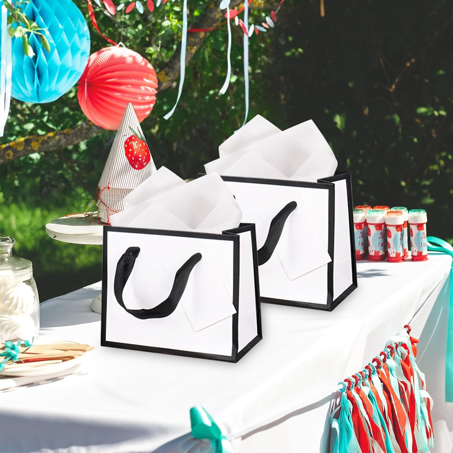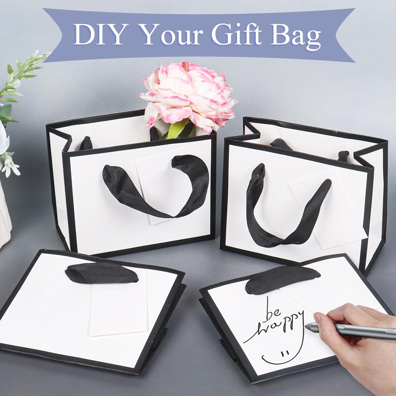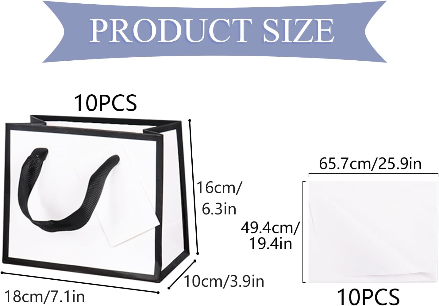 CARTA VELO ED ETICHETTE REGALO GRATUITE: ogni set di sacchetti regalo viene fornito con carta velina bianca ed etichette regalo abbinate, rendendo facile e veloce incartare e presentare in modo professionale i tuoi regali. MATERIALE DI ALTA QUALITÀ: Questi sacchetti regalo bianchi sono realizzati in materiale cartaceo robusto di alta qualità, robusto e resistente agli strappi. DIMENSIONE ADATTA PER VARI REGALI: Questi piccoli sacchetti regalo misurano 18 (L)×10 (L)×16 (A) cm, rendendoli ideali per esporre una varietà di regali come gioielli, dolcetti gourmet o altri piccoli regali. Facile da personalizzare: questi sacchetti regalo vuoti forniscono una tela per la personalizzazione con adesivi, nastri o pennarelli, consentendoti di personalizzare ogni sacchetto per adattarlo al destinatario e all'occasione. ADATTE A OGNI OCCASIONE: Queste borse sono perfette per compleanni, matrimoni, baby shower o qualsiasi altra occasione speciale in cui vuoi lasciare un ricordo indelebile.