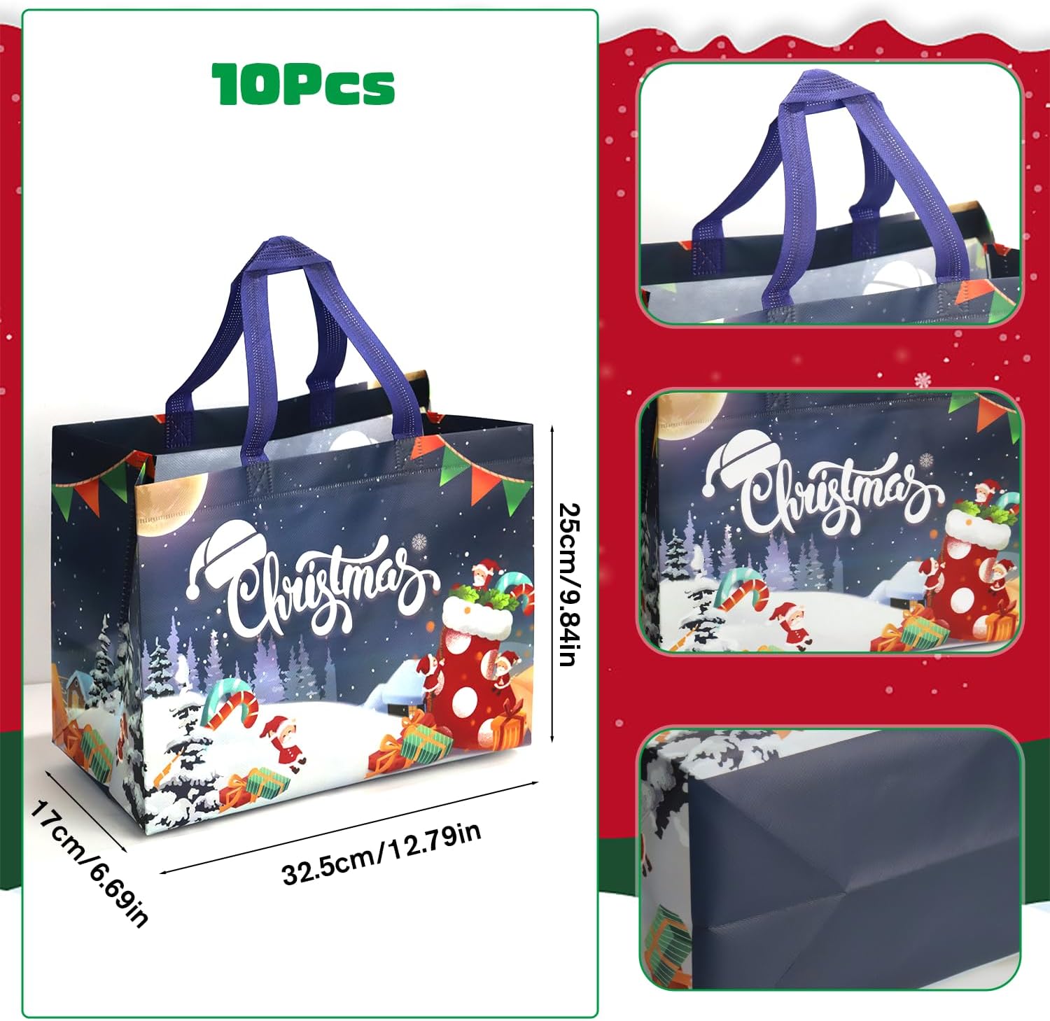 Confezione da 10 sacchetti regalo di Natale grandi, sacchetti di Natale con manici, sacchetti di Natale in tessuto non tessuto, sacchetti di Natale riutilizzabili, sacchetti per la spesa per regali, 32,5 x 25 x 17 cm (A)