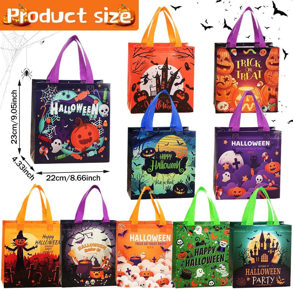 【MATERIALE DI ALTA QUALITÀ】: le nostre borse tote in tessuto non tessuto di Halloween sono realizzate in materiale non tessuto di alta qualità + PP di alta qualità, garantendo durata e uso a lungo termine. Il processo di laminazione fornisce ulteriore stabilità. La superficie della borsa per il trasporto è ricoperta da una pellicola impermeabile, stabile, pieghevole, riutilizzabile e lavabile. Non sono soggetti a sbiadimento, screpolature e rotture. 【Design unico di Halloween】 Ogni set contiene 10 diverse borse da festa di Halloween in stile classico con motivi a tema Halloween per aggiungere un'atmosfera festosa alla tua celebrazione. Perfetto per fare dolcetto o scherzetto o per ospitare una festa di Halloween. Ideale anche per fare regali a vicini, insegnanti, amici, clienti, colleghi e altri. 【Dimensione perfetta】 La dimensione di questi sacchetti regalo portatili è 23 x 22 x 11 cm. La dimensione del sacchetto regalo può contenere caramelle, biscotti, cioccolatini, cartoline, piccoli giocattoli e altri oggetti, il che è molto conveniente. Adatto per confezioni regalo natalizie di Halloween. Trasporta comodamente tutti i tuoi elementi essenziali per Halloween mentre i colori e gli stili accattivanti creano un'atmosfera di Halloween. 【Ecologico e riutilizzabile】: dì addio ai sacchetti di plastica usa e getta! Le nostre borse tote in tessuto non tessuto sono ecologiche e riutilizzabili, riducono gli sprechi e promuovono la sostenibilità. Quando le vacanze sono finite, funziona bene come borsa per riporre i giocattoli o può essere utilizzata per conservare le decorazioni di Halloween dell'anno prossimo. 【Ampie applicazioni】 I nostri sacchetti regalo portatili sono perfetti per confezionare piccoli regali. Che si tratti di una festa di Halloween, di giocattoli, dolcetti o decorazioni di Halloween, puoi riporre in sicurezza qualsiasi regalo di Halloween o regalo per bambini in queste versatili borse. Aggiungi un tocco festoso ai tuoi regali con queste borse appositamente progettate.