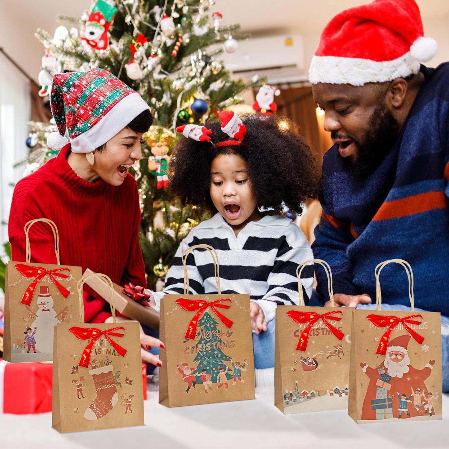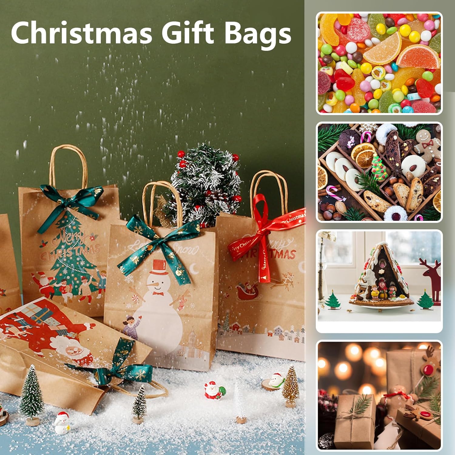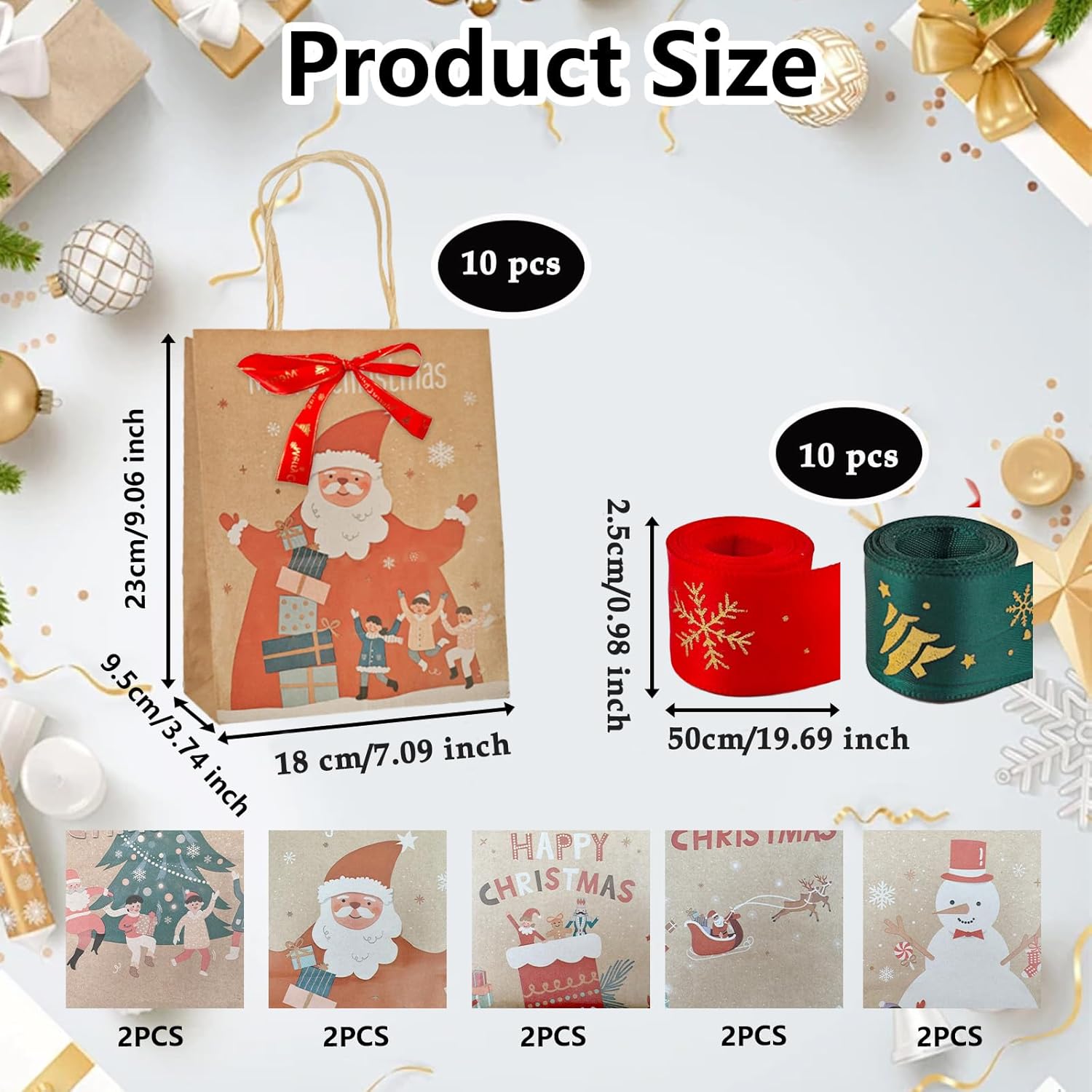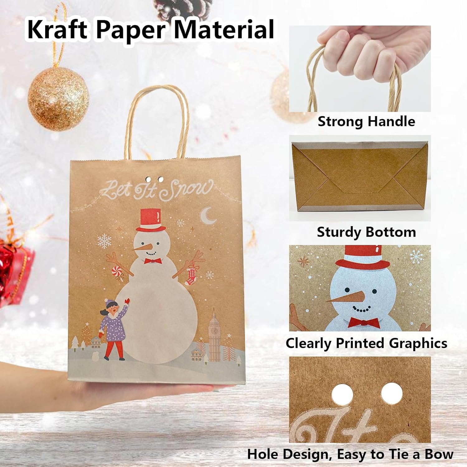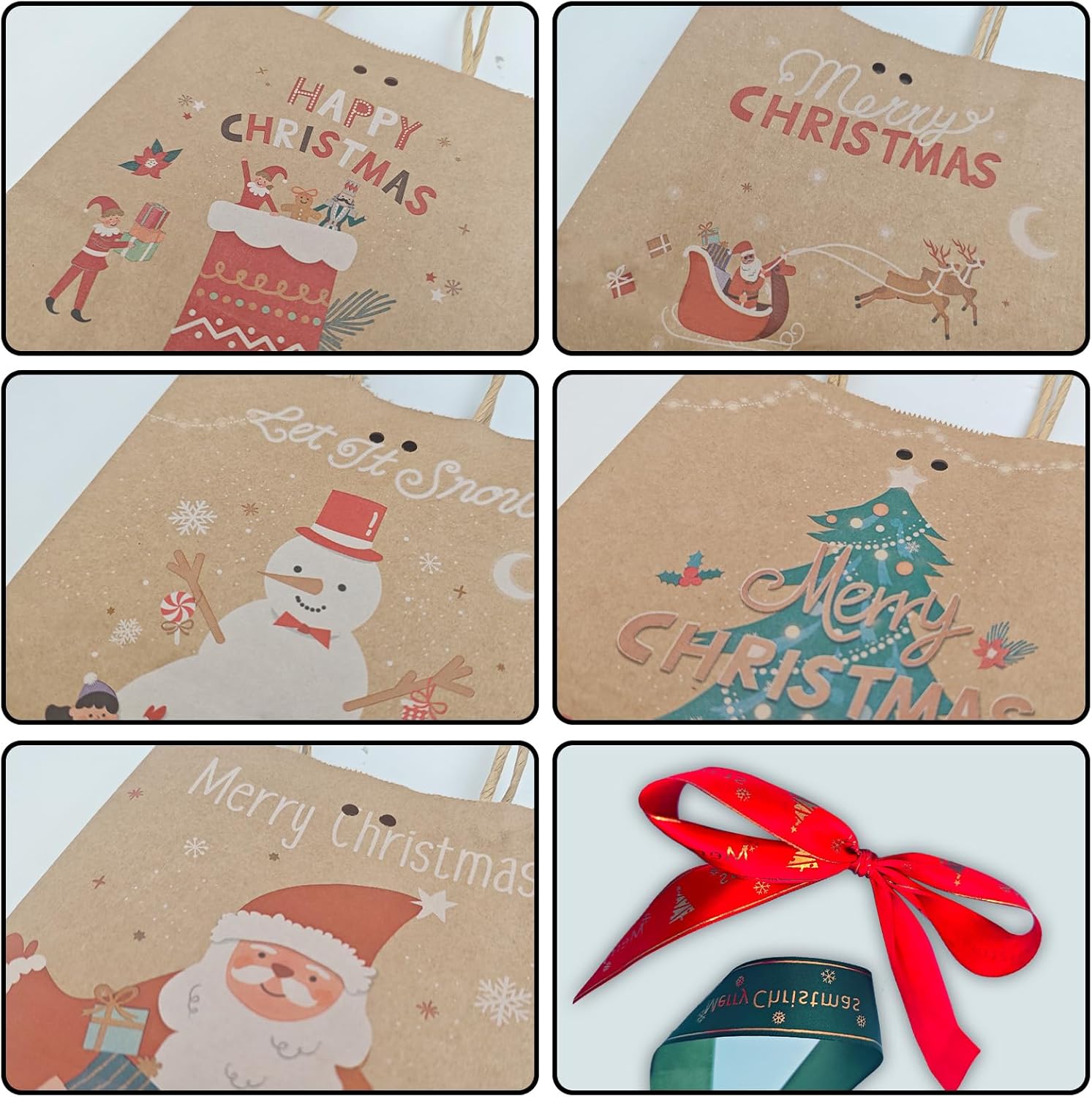 Set di sacchetti regalo natalizi: riceverai 10 sacchetti di carta natalizi (L x P x A: 23 x 9,5 x 18 cm/9,06 x 3,74 x 7,09 pollici), 5 pezzi di nastro rosso + 5 pezzi di nastro verde (L: 50 cm/19,69 pollici). Alta qualità: i sacchetti regalo di Natale sono realizzati in carta kraft da 120 g/m² di alta qualità, con un design della maniglia più spesso, robusto e durevole, non facile da rompere, senza odore, riutilizzabile e riciclabile, perfetto per i regali delle feste di Natale. Disegni natalizi: i sacchetti regalo di Natale sono disponibili in 5 diversi modelli classici natalizi, 2 pezzi per ogni stile, come calze di Natale, pupazzo di neve, albero di Natale e Babbo Natale, che possono creare un'allegra atmosfera natalizia per te. Facile da usare: i sacchetti regalo di Natale con manico sono progettati con un'ampia apertura che facilita l'inserimento dei regali nella borsa, un piccolo foro nell'apertura è progettato per facilitare il passaggio attraverso il nastro e sigillarlo per garantire che i regali non cadano facilmente e la robusta maniglia per il trasporto ne facilita il trasporto. Adatto a varie occasioni: ideali per feste a tema natalizio, feste natalizie per bambini, celebrazioni di Capodanno, riempitivi del calendario dell'avvento natalizio, confezioni regalo e feste in casa, ecc., i sacchetti regalo natalizi per regali possono essere utilizzati per confezionare dolci, snack, stuzzichini e altri regali per portare facilmente gioia alla tua famiglia, vicini, amici, insegnanti, clienti, colleghi e altro ancora.