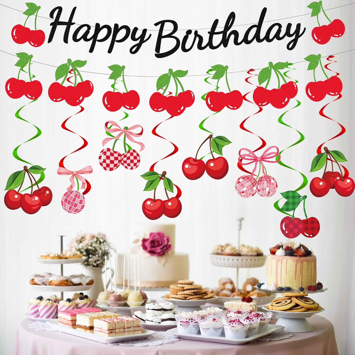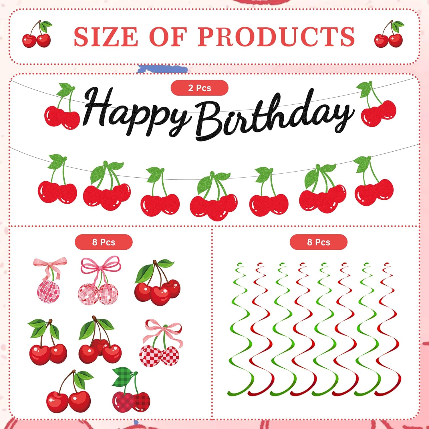 Contenuto della confezione: Riceverai 10 decorazioni di compleanno a tema ciliegie, tra cui 1 striscione di buon compleanno, 1 striscione di ciliegie e 8 turbinii sospesi, aggiungerai un'atmosfera dolce al compleanno della ragazza e lascerai un'impressione indimenticabile Design a tema ciliegia: questo set di decorazioni per feste a tema di compleanno con un simpatico motivo a ciliegie, aggiunge divertimento alla tua festa di compleanno, perfetto per le feste di compleanno di ragazze e donne Materiale premium: gli striscioni sagomati per feste a tema ciliegia sono realizzati in cartoncino di alta qualità, resistente e riutilizzabile, questo striscione aggiungerà un tocco di eleganza e glamour per la tua celebrazione Facile da usare: lo striscione con ciliegia è pre-infilato, non è necessario perdere tempo a maneggiarlo; puoi appenderlo al muro, alla porta, al soffitto o in qualsiasi altro luogo che devi decorare per creare una bella festa. Occasione applicabile: questa ghirlanda di compleanno è progettata per ragazze e donne che celebrano feste di compleanno; altamente raccomandato per addio al nubilato, forniture per feste a tema fiori di ciliegio, addii al nubilato e altro ancora