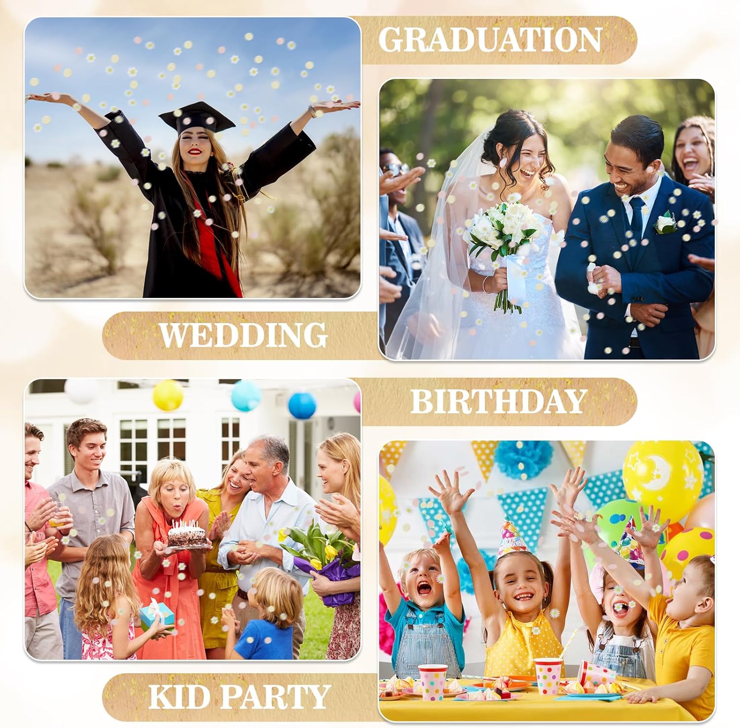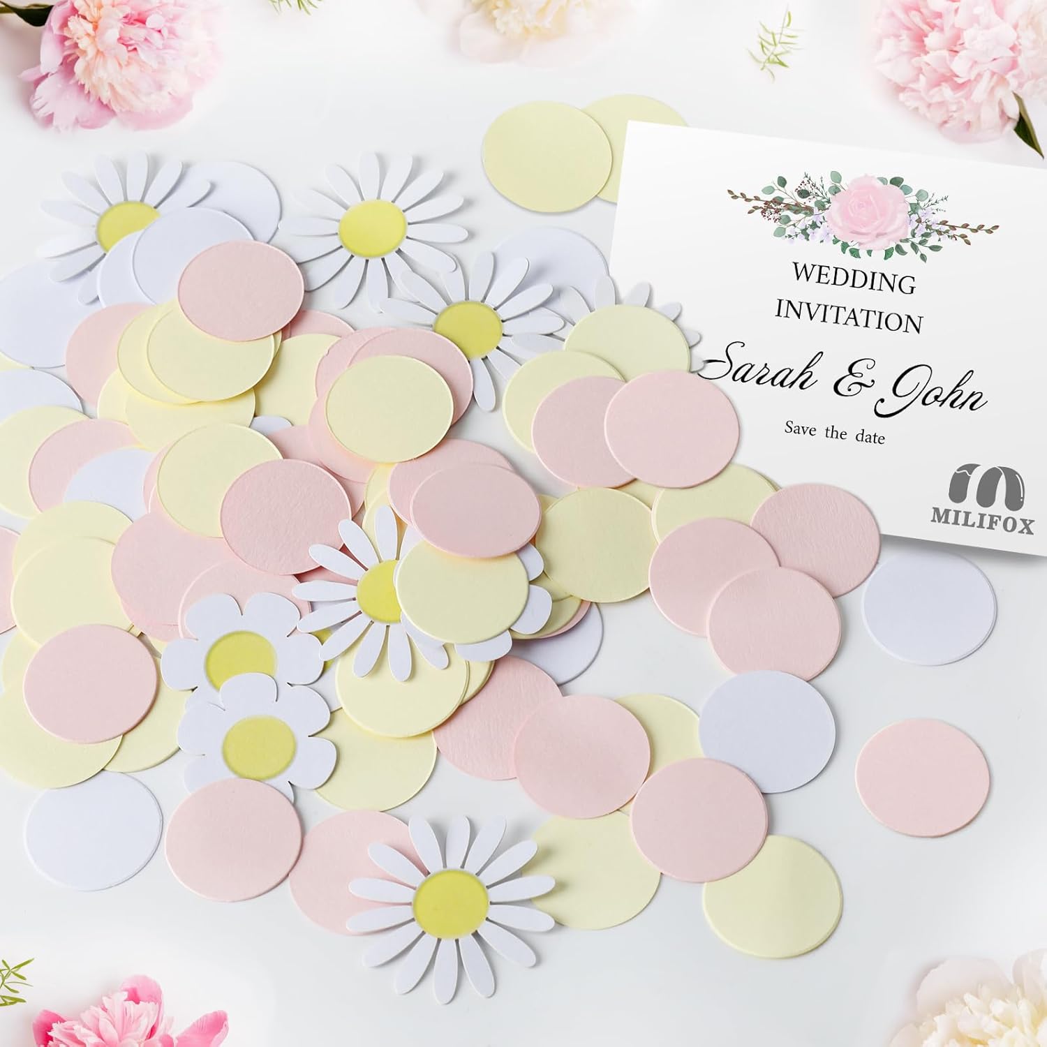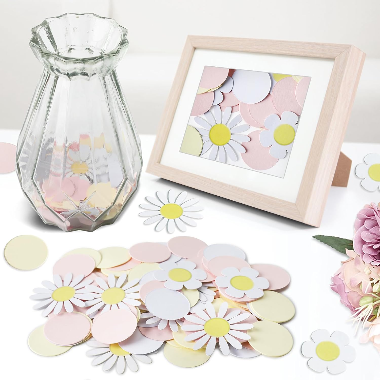 Materiali: I nostri coriandoli di carta con fiori di margherita sono realizzati in cartone biodegradabile con una superficie liscia, i coriandoli per baby shower hanno una superficie leggera per robustezza e durata. Quantità: i coriandoli rivelano il genere hanno 100 pezzi, una varietà di forme e colori diversi. Immagina la scena in cui i coriandoli di carta con fiori di margherite bianchi, rosa, gialli da spargere sul tuo matrimonio, compleanno, anniversario, cocktail party e altro ancora divertimento fai-da-te: puoi liberare la tua creatività con questi coriandoli da tavolo per baby shower, puoi spargerli nell'aria, puoi anche usarlo per decorare pareti, tavoli da dessert o usarli come palloncini decorativi, riempitivi per torte per una sorpresa piena di coriandoli colorati Disegni a motivi multipli: Pronto per aggiungere colore alla tua vita? i nostri coriandoli da doccia con disegni multicolori e multi-motivo possono essere usati per decorare la festa e portare molto divertimento ai tuoi amici Bella decorazione per la festa: i coriandoli di carta sparsi multicolori sono ideali per baby shower, rivelazione di genere, addio al nubilato, anniversario e così via, aggiungendo un'atmosfera dolce e festosa (Suggerimenti caldi: i nostri coriandoli di carta non sono commestibili, quindi tienili lontano dalla portata dei bambini)