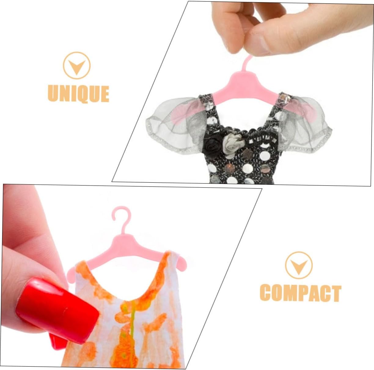 Mini appendiabiti per guardaroba per gioielli - Una quantità sufficiente può soddisfare le varie esigenze quotidiane dei vestiti delle bambole appesi e rendere la stanza dei giochi più ordinata, Mini appendiabiti appendiabiti per animali domestici - Fornisce ampio spazio per appendere più abiti e ti aiuta a gestire i vestiti delle bambole, Mini appendiabiti Appendiabiti per animali domestici - Le grucce per abiti per bambole possono essere un'ottima scelta per sostituire grucce vecchie o rotte, Appendiabiti per casa delle bambole - Ti aiuta ad appendere tutti i vestiti per le bambole nell'armadio per creare un guardaroba ordinato, soddisfare le tue esigenze di stoccaggio, vestiti di plastica appendiabiti Mini appendiabiti - Il mini appendiabiti piccolo e leggero può soddisfare le varie esigenze di decorazione per esporre i vestiti, appendiabiti creativo per l'artigianato