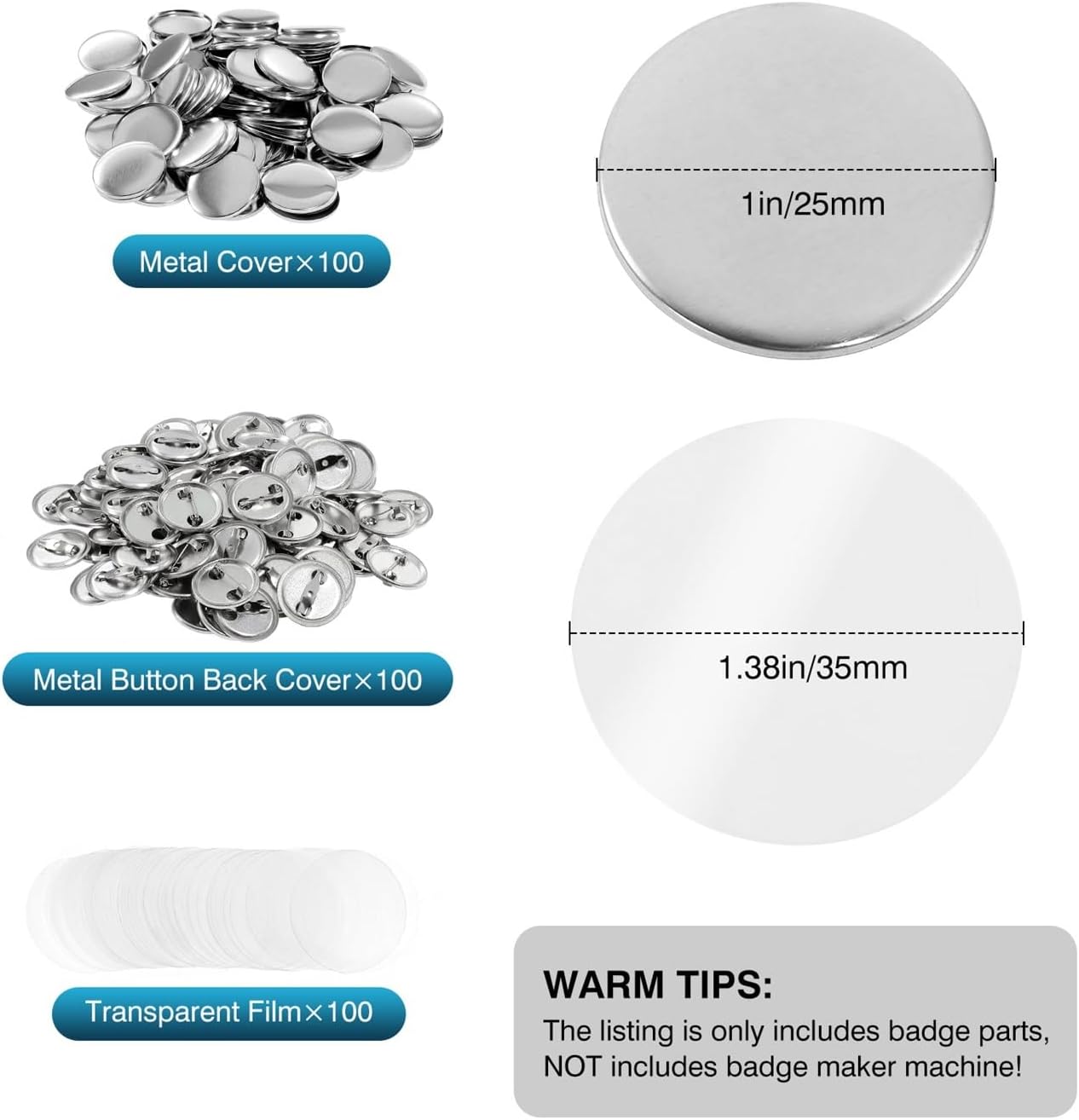 Materiale: metallo + plastica Uomini: 100 pezzi/scatola Dimensioni: 25mm/32mm/37mm/44mm/58mm/75mm Colore: ferro Forma: rotonda Benvenuto! Spero che troverai i tuoi prodotti preferiti.