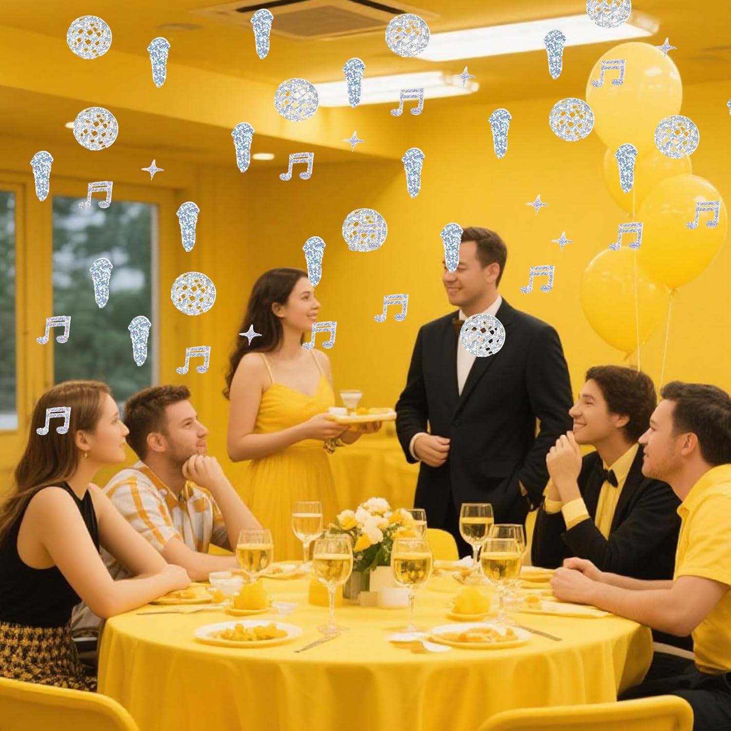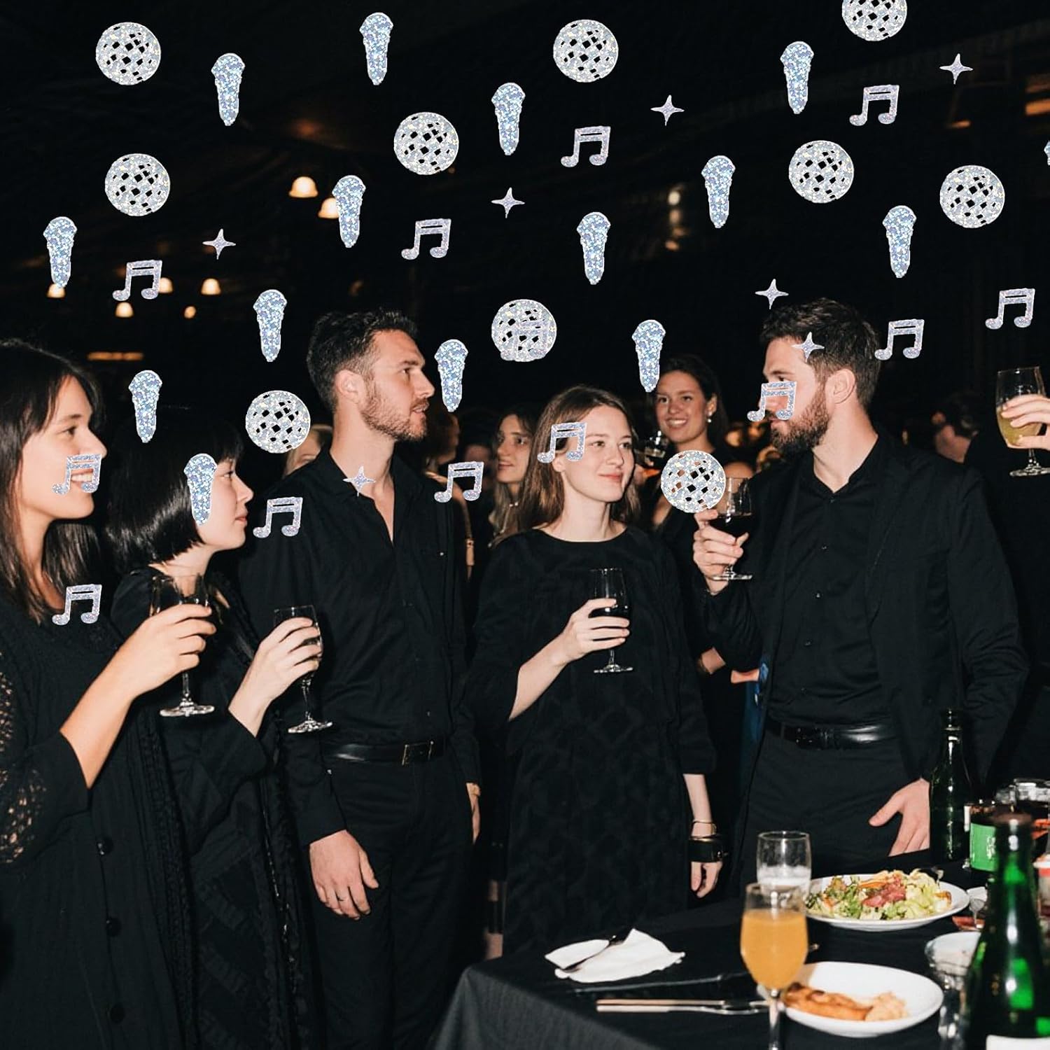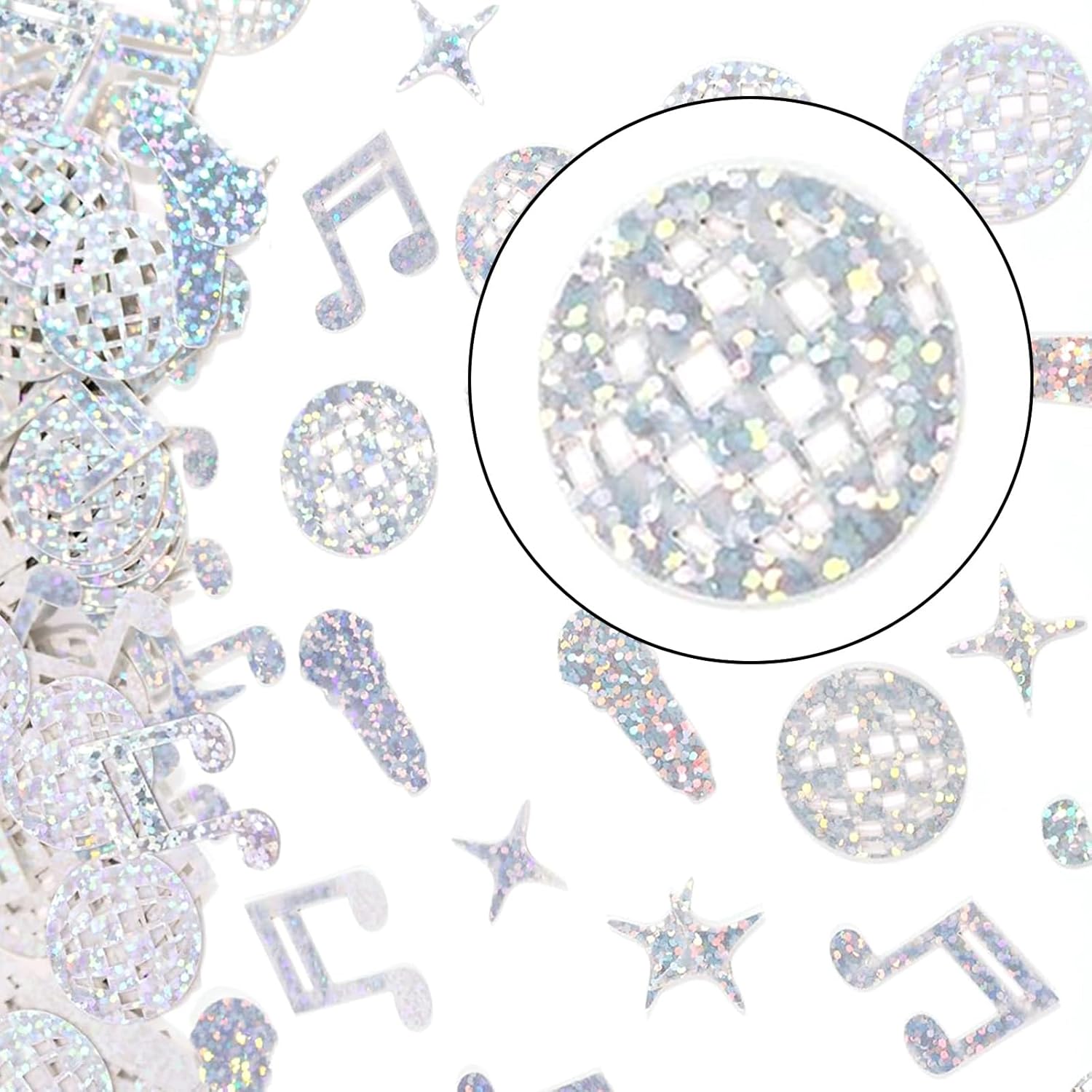 Cosa ottieni - Riceverai 100 pezzi di coriandoli glitterati con palline da discoteca, tra cui palline da discoteca, microfoni, stelle, note musicali e altre forme, in quantità e forme diverse, sufficienti per soddisfare le esigenze di decorazione della tua festa. Materiale: i coriandoli con palline da discoteca sono realizzati in materiale PVC, che è piccolo, leggero, robusto e durevole, con una superficie liscia per un uso a lungo termine. Varie forme: i coriandoli per feste in discoteca includono palline da discoteca, microfoni, stelle, note musicali e altro ancora. La palla da discoteca può riflettere la luce per creare un'atmosfera psichedelica; la forma delle note trasmette gioia e vitalità; la forma a stella dona un senso di fantasia; la forma del microfono evidenzia il fascino del palco, una varietà di forme per soddisfare le diverse esigenze decorative. Retro cool: la superficie dei coriandoli decorativi per feste in discoteca è lucida e può riflettere la luce, creando un bellissimo effetto glitter. Combinato con gli elementi classici della discoteca, ha un forte stile retrò, che migliora immediatamente lo stile dell'evento, crea un'atmosfera da discoteca unica, rende l'evento pieno di nostalgia e moda e lascia un'impressione profonda sui partecipanti. Ampia gamma di usi - I coriandoli glitterati sono adatti per feste, matrimoni, balli, eventi a tema e molto altro. Possono essere sparsi sui tavoli per creare un'atmosfera glamour, utilizzati come decorazioni per i menu per attirare l'attenzione o incorporati negli inviti per aggiungere un tocco unico, rendendo facile aggiungere un'atmosfera festosa a tutti i tipi di occasioni.