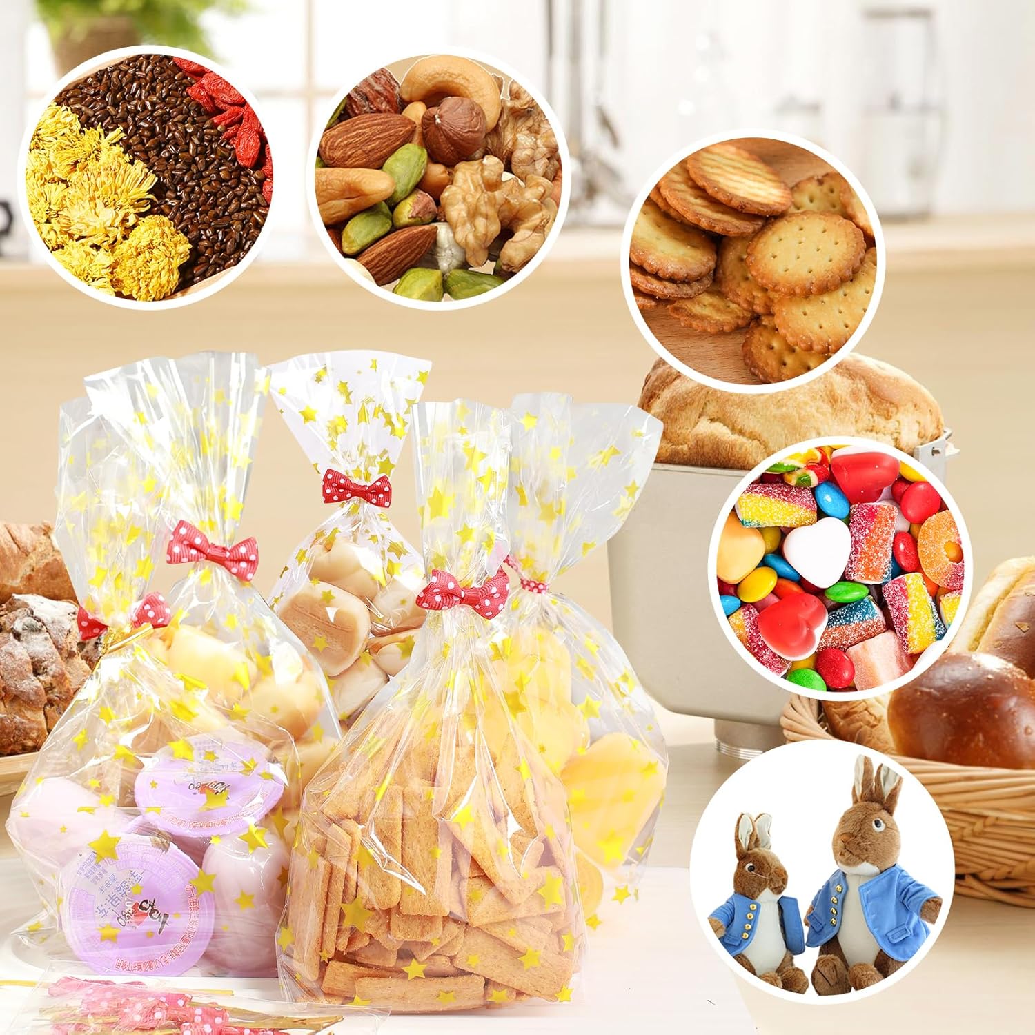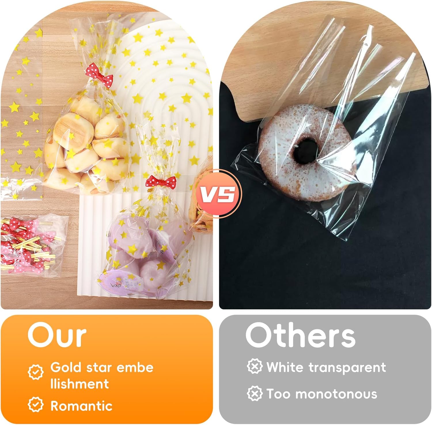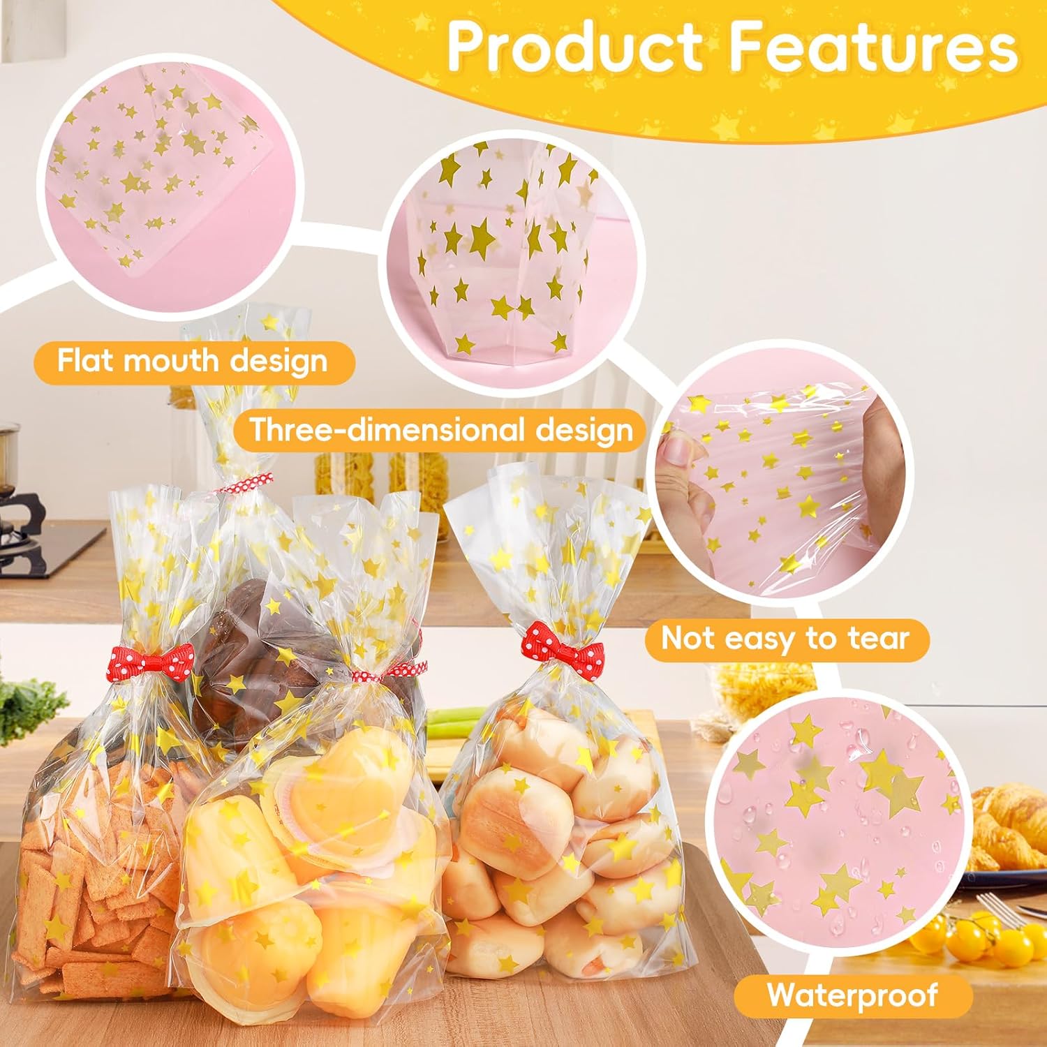 Specifiche: il set di sacchetti per caramelle contiene 120 sacchetti per caramelle dorati che misurano 21 x 12,8 centimetri con elevata trasparenza, 100 nuovi nastri metallici rossi densamente a pois e 20 fiocchi rossi per cravatta. Puoi regolarli liberamente per soddisfare le diverse esigenze, con quantità sufficienti, molto adatti per oggetti di grandi dimensioni o possono essere conservati per situazioni di emergenza. 【Materiale】I piccoli sacchetti regalo sono realizzati secondo rigorosi standard di qualità e sono realizzati al 100% in polipropilene deviato (OPP). Sono puliti, igienici, non tossici, inodori e rispettosi dell'ambiente. Sono più trasparenti dei sacchetti di plastica PP e sono adatti per il confezionamento degli alimenti. Possono entrare in contatto diretto con gli alimenti, hanno una buona ermeticità e garantiscono una maggiore freschezza e durata di conservazione degli alimenti. 【Estetica】I piccoli sacchetti regalo con stella dorata hanno una forma unica e un forte senso del design, che li rende festosi e accattivanti. Grazie al design autoportante a fondo piatto, l'imballaggio diventa più stabile. I fiocchi rossi a pois e i nastri rossi a pois sembrano belli e alla moda. Le fasce contengono fili di ferro morbidi, non facili da rompere e facili da arrotolare, sicuri e non feriscono le mani. 【Imballaggio trasparente】Il materiale trasparente consente di vedere il contenuto della confezione in modo chiaro e rapido, senza necessità di etichettatura e classificazione. Il design trasparente rende le grandi buste di cellophane più pulite e ordinate, e i bordi della borsa sono puliti e non si danneggiano facilmente. Bello, leggero, comodo da usare e fa risparmiare lavoro, è molto adatto per la protezione, lo stoccaggio, l'organizzazione e il trasporto. 【Ampiamente usato】Questi piccoli sacchetti di cellophane sono perfetti per conservare piccoli regali, cibo, biscotti, dolci, cioccolatini, mandorle, popcorn, marshmallow ecc. Possono proteggere bene il tuo cibo. I sacchetti di imballaggio trasparenti sono adatti non solo per Natale, ma anche per altre festività e occasioni, come bomboniere, compleanni, matrimoni, cerimonie di laurea e altre celebrazioni, rendendoli una confezione regalo molto creativa.