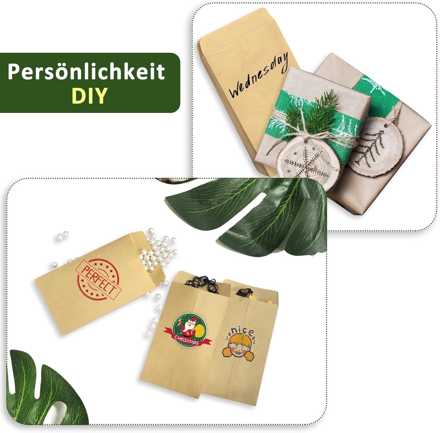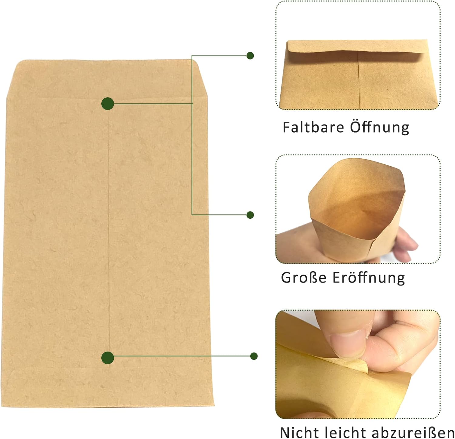 【Contenuto della confezione】 Include mini sacchetti di carta da 100 pezzi da 10 × 6 cm e 5 adesivi (1 pezzo con 12 adesivi, totale 60 adesivi). 【Ecologico e traspirante】 Il sacchetto per semi è sicuro e non tossico e può essere utilizzato al posto dei sacchetti di plastica. I semi nei mini sacchetti di carta possono respirare attraverso la carta kraft e non marciscono. 【Borsa portaoggetti multifunzionale】Un totale di 100 sacchetti multifunzionali di carta kraft possono contenere semi di piante, monete, gioielli, oggetti di artigianato, bottoni, carte, sigilli, piccoli oggetti, ecc. Puoi anche scrivere il nome dell'articolo sulla carta marrone del sacchetto piatto per facilitare l'ordinamento e la ricerca. Facile da usare: nella confezione sono presenti 60 adesivi che possono essere utilizzati per sigillare l'imboccatura dei mini sacchetti di carta kraft per evitare che gli oggetti cadano. 【Buste fai da te】 La superficie dei piccoli sacchetti di carta kraft vintage è liscia, puoi disegnare, scrivere o attaccare adesivi in base allo scopo o alle tue preferenze.
