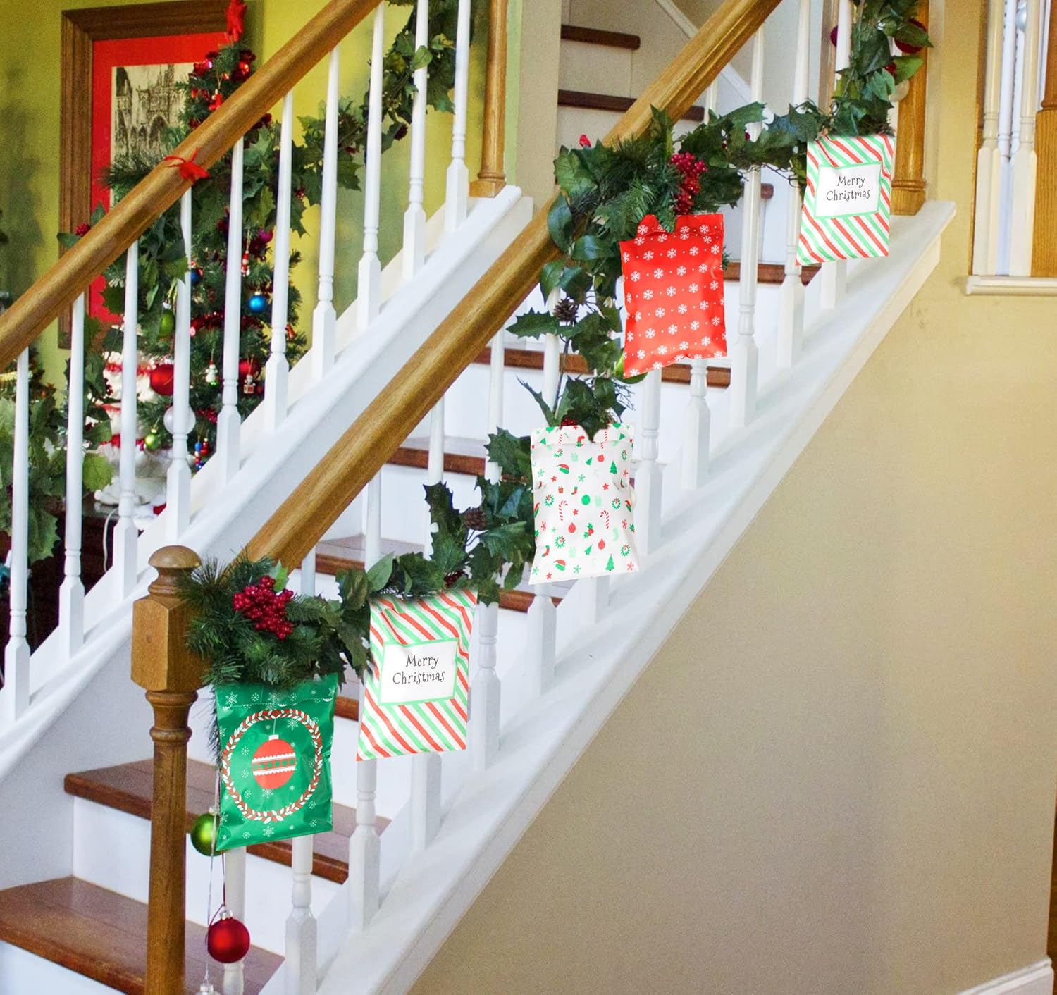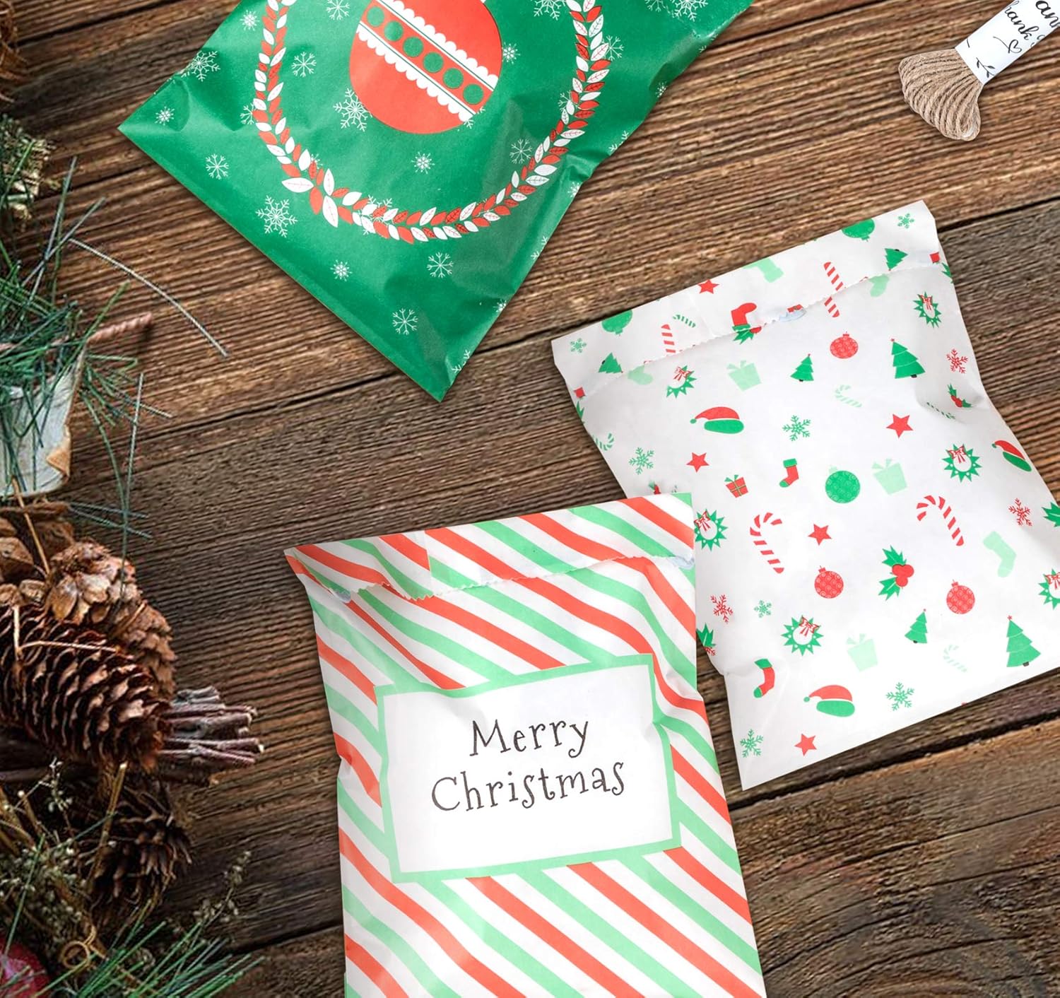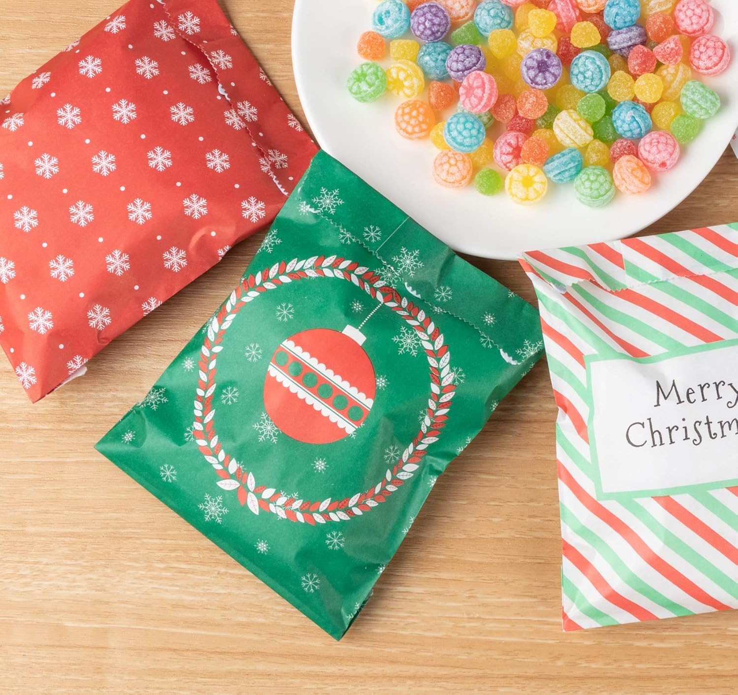 Sacchetti regalo di Natale: sacchetti per caramelle e sacchetti per dolci, 4 modelli diversi, 25 pezzi ciascuno, per un totale di 100 sacchetti nella confezione. Dimensioni: ca. 13x18 cm Per tutti i tipi di dolci come caramelle, cioccolato, biscotti, ecc. ma anche come sacchetti regalo per il calendario dell'Avvento per farsi tanti altri piccoli regali. Può essere utilizzato anche per bomboniere o piccoli regali, come bella decorazione da tavola in occasione di matrimoni e altre celebrazioni. Design natalizio: motivo natalizio classico e bellissimo, design opaco, perfetto sacchetto per riempire il calendario natalizio fai-da-te, regala alla tua famiglia una sorpresa natalizia! Materiale biodegradabile per uso alimentare: è sicuro, sano e completamente decomposto dopo l'uso e non provoca inquinamento ambientale.