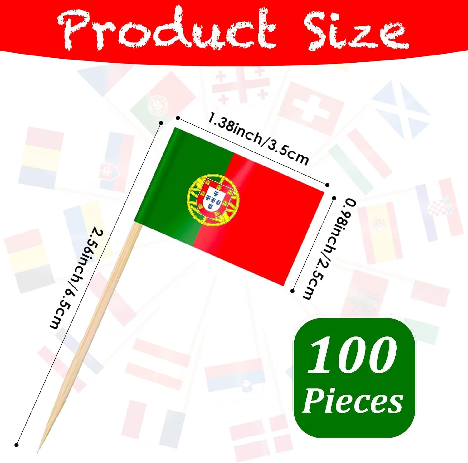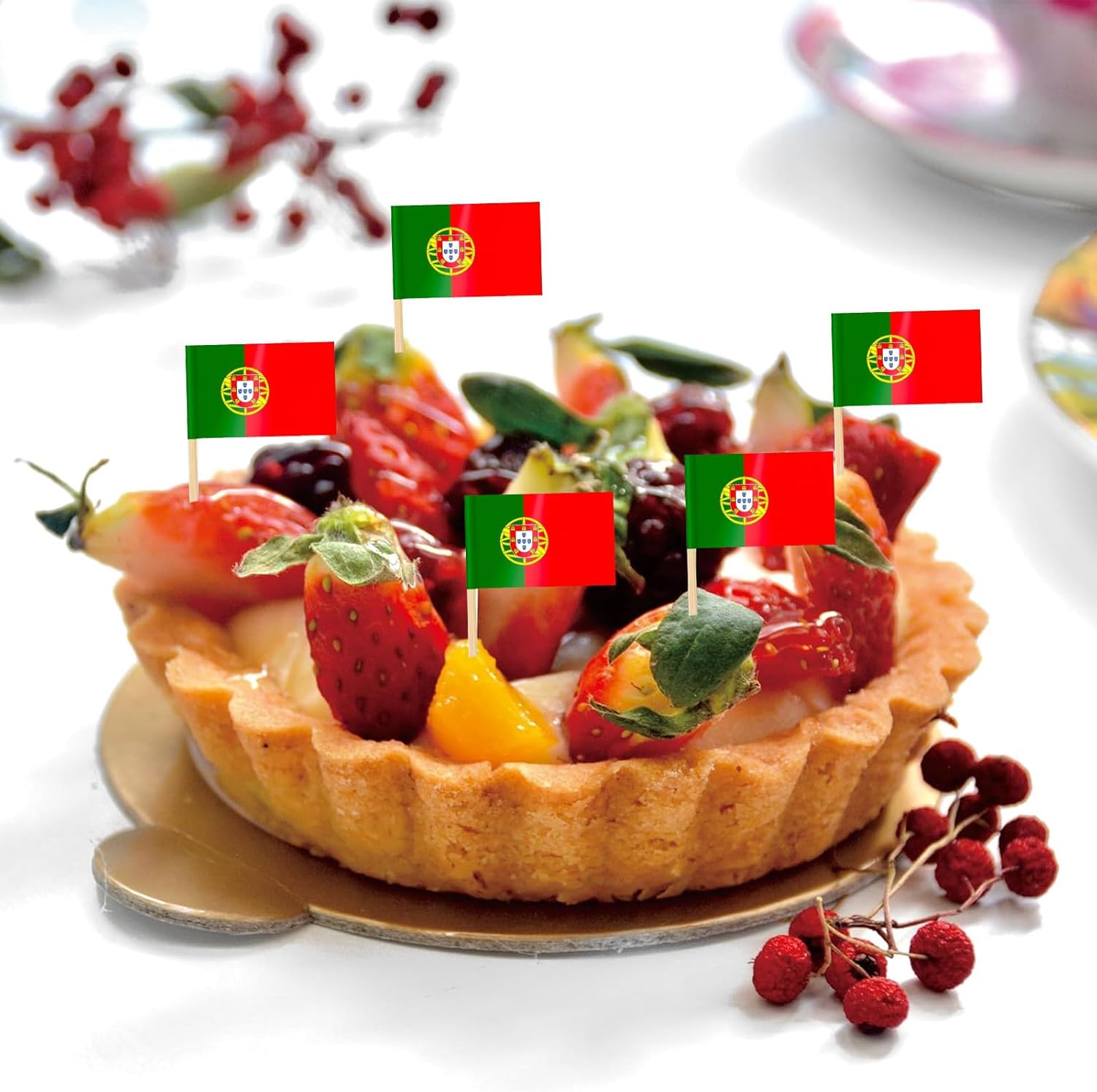 ??????? Confezione: riceverai 100 pezzi di toppers per torta con bandiera del Portogallo. Il motivo è luminoso e vivace, aggiunge un tono allegro e divertente alla tua festa di compleanno o ad eventi reali. I materiali dei toppers per torta con la bandiera del Portogallo sono realizzati con carta di alta qualità. Tutti i materiali di questo kit di decorazioni per torte con bandiera del Portogallo sono atossici, sicuri e durevoli, non facili da deformare o rompere. Non commestibile solo a scopo decorativo. ??????? Nessun assemblaggio richiesto. Questi toppers per torta per feste portoghesi sono stati fissati in anticipo con stuzzicadenti e non è necessario rimontarli. Basta inserire le bandierine stuzzicadenti su panini, hamburger, torte, frutta e altri alimenti per completare la decorazione e illuminare l'intera festa. ??????? Occasioni perfette per l'incoronazione del re, ma possono anche essere utilizzate per decorazioni di feste come compleanno del re, matrimonio, festa in casa, festa di Natale, anniversario, baby shower, laurea, San Valentino, anniversario, festa nazionale, festa di strada per il 70° compleanno. Buffet, barbecue party, eventi reali, eventi sportivi, decorazioni per bar e hotel, ecc.