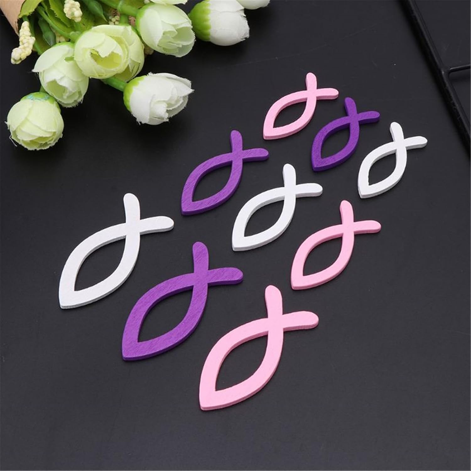 Decorazione artigianale in legno a forma di pesce per battesimi, comunioni e cresime, offerta per bambini e bambine. Realizzati in legno naturale con dettagli delicati, questi ornamenti aggiungono un tocco stravagante a qualsiasi tavolo festivo. Ideale per organizzatori di eventi, genitori e celebranti religiosi in cerca di significativi battesimi o comunioni decorazione da tavola. Migliora i centrotavola durante i battesimi, cospargi sui tavoli da dessert durante le feste della prima comunione. Questi pesci di legno raddoppiano come ricordi molto tempo dopo la fine della celebrazione.