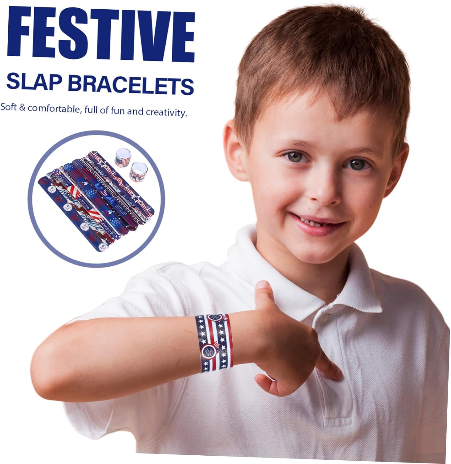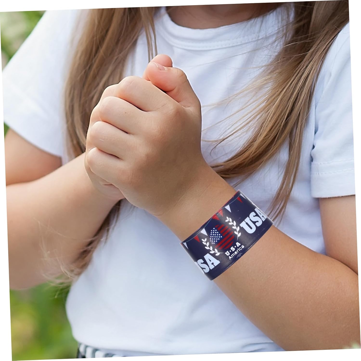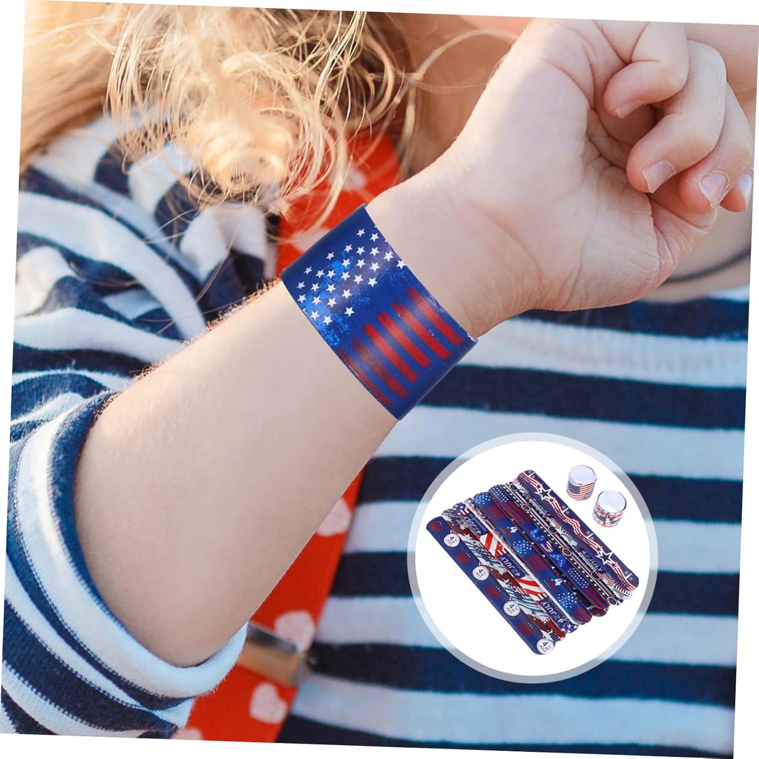 Accessori per festival - Perfetti come regalo per una festa o come un modo delizioso per esprimere l'orgoglio nazionale durante le celebrazioni del Giorno dell'Indipendenza, Regalo per la festa del Giorno dell'Indipendenza Braccialetti Slap per il Giorno dell'Indipendenza - Lascia che tuo figlio mostri con orgoglio il suo spirito con questi vivaci braccialetti Slap per il Giorno dell'Indipendenza, Braccialetti Clap Slap Braccialetti per Slap in plastica - Il rapido movimento a schiaffo fornisce ai bambini un modo emozionante di indossare i loro braccialetti senza assistenza Bracciale Slap per il Giorno dell'Indipendenza - la resistente struttura in PVC rende questi braccialetti impermeabili e perfetti per le attività estive, cinturini per schiaffi per ragazze Festival Bracciale schiaffo: un accessorio fantastico per mostrare il tuo amore per gli Stati Uniti durante gli eventi del Giorno dell'Indipendenza, braccialetto schiaffo da polso