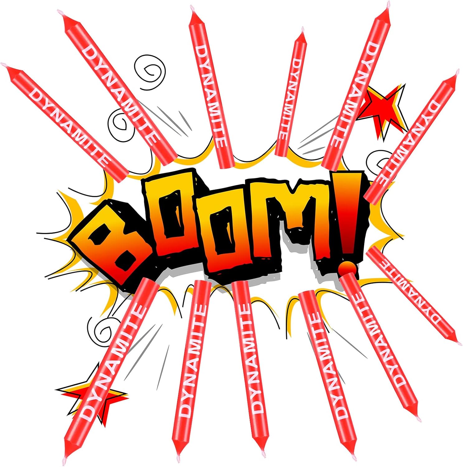 Disegni innovativi: Le candeline di compleanno in TNT sembrano vera dinamite, stampate con lettere di [Dinamite], interessanti e originali, decorazioni ideali per torte a tema dinamite Quantità adeguata: Ci sono 12 pezzi di candeline di compleanno in dinamite nella confezione, una quantità ragionevole per la decorazione della tua torta di compleanno, e puoi anche conservare il resto per il tuo uso successivo Candele sicure: I toppers per torta in TNT sono fatti di paraffina, sicuri e inodore, ti offrono un utilizzo piacevole e piacevole esperienza, brucia a lungo e mantieni la tua festa di compleanno calda e luminosa Dimensioni ridotte: le candeline di compleanno dinamite misurano circa 3 x 0,3 pollici, le dimensioni ridotte le rendono adatte alla maggior parte delle torte, tra cui torte di compleanno, torte per bambini, torte di laurea e così via Molteplici occasioni: puoi utilizzare queste piccole candeline di compleanno dinamite alla tua festa di compleanno, festa di Halloween, festa di Natale, festa di videogiochi, festa a tema dinamite e altre e mostrare il tuo buon gusto