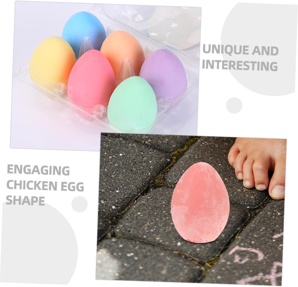 Gesso per lavagna: questo modello giocattolo con uova di gallina è realizzato con materiali sicuri e sicuro da usare. Lavagna antipolvere pratico gesso colorato: il gesso robusto e durevole assicura che possa essere utilizzato ripetutamente senza rompersi o consumarsi facilmente, gesso senza polvere Gesso pasquale: il design unico e interessante di un uovo aggiunge un elemento divertente. Gesso a forma di uovo Gessetti a forma di uovo: fornisci il gesso giocattolo per disegnare e dai ai genitori una sensazione calmante. Gessetti solidi per lavagna per dipingere su lavagna: che tu stia creando capolavori su carta o dando libero sfogo alla tua creatività, questo versatile gesso ispirerà e divertirà sicuramente, il gesso colorato da lavagna