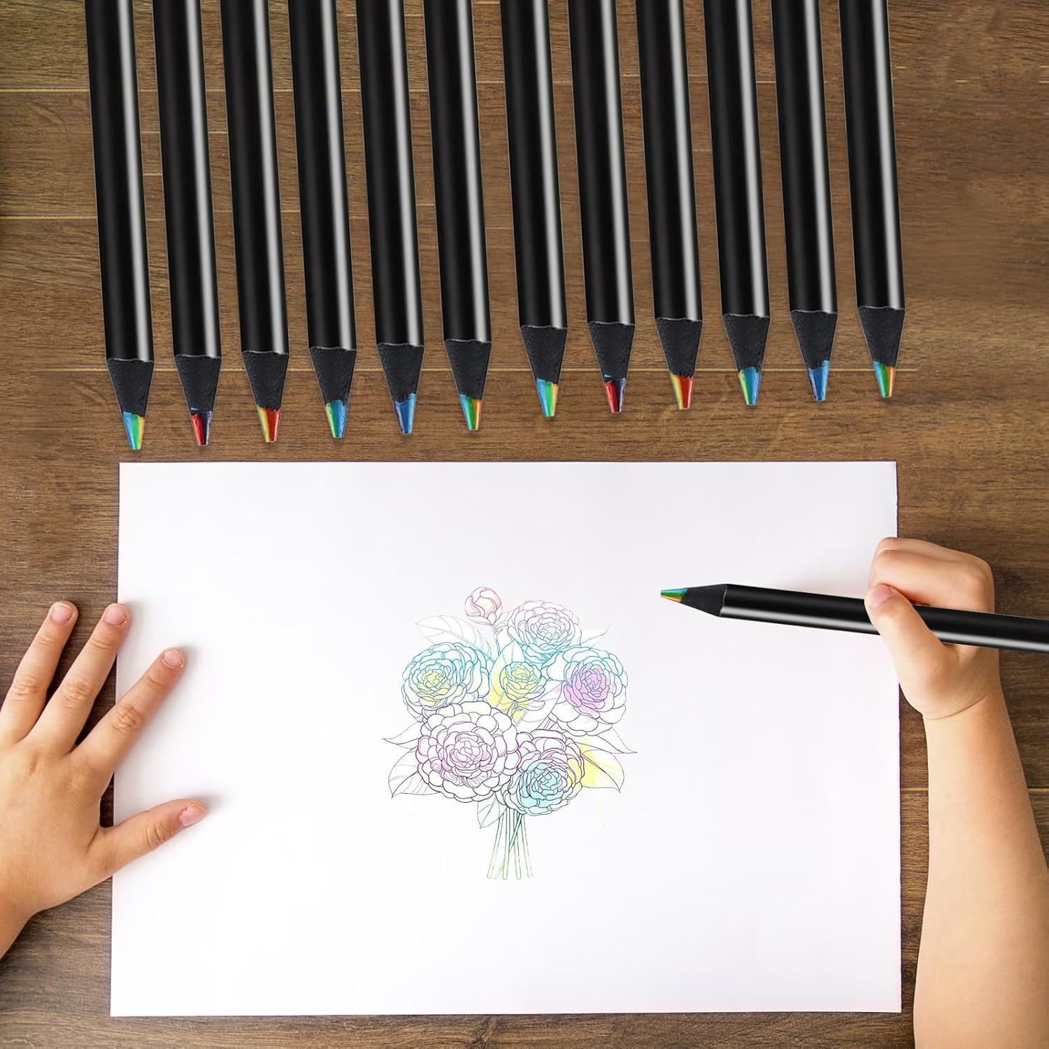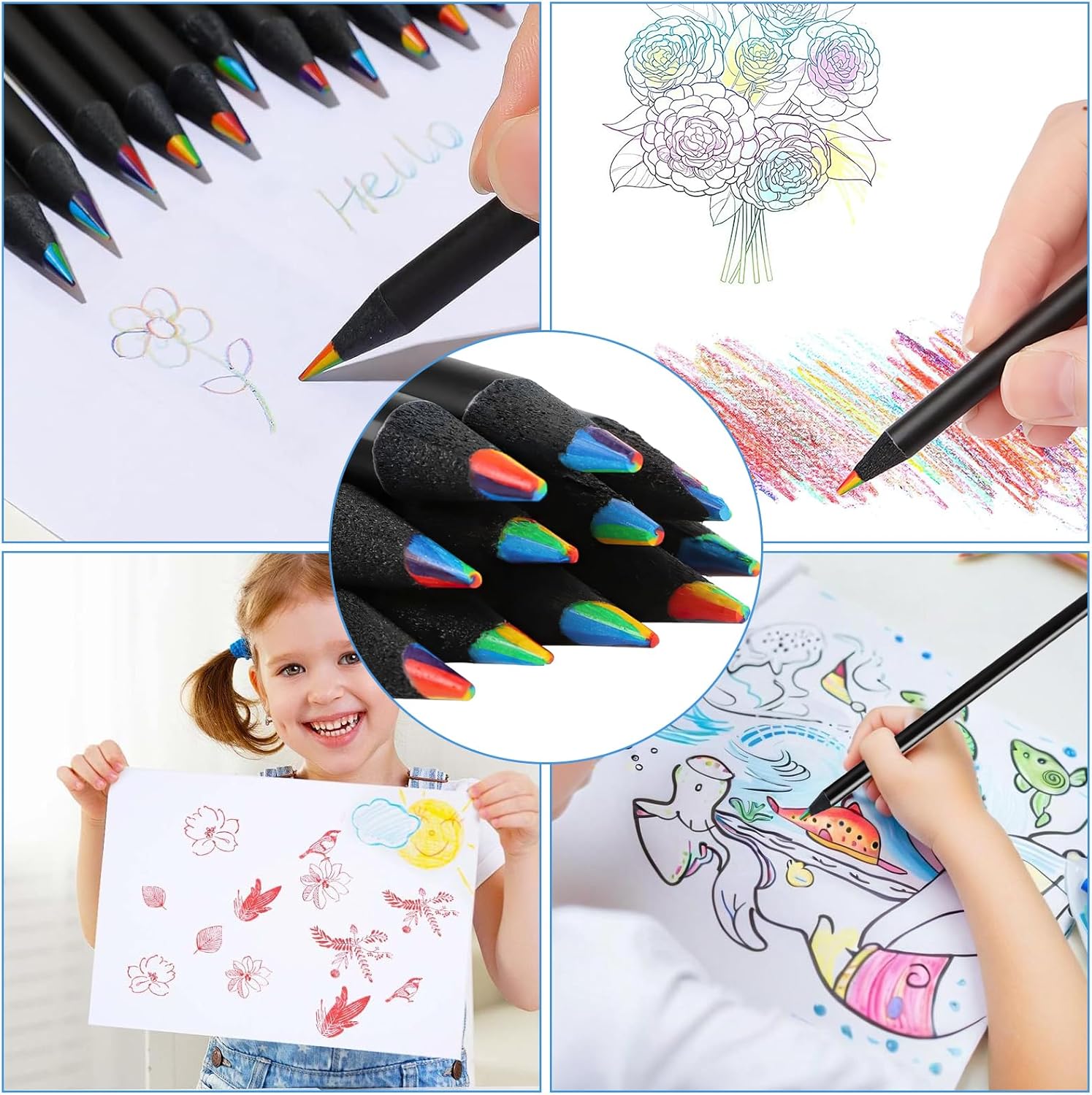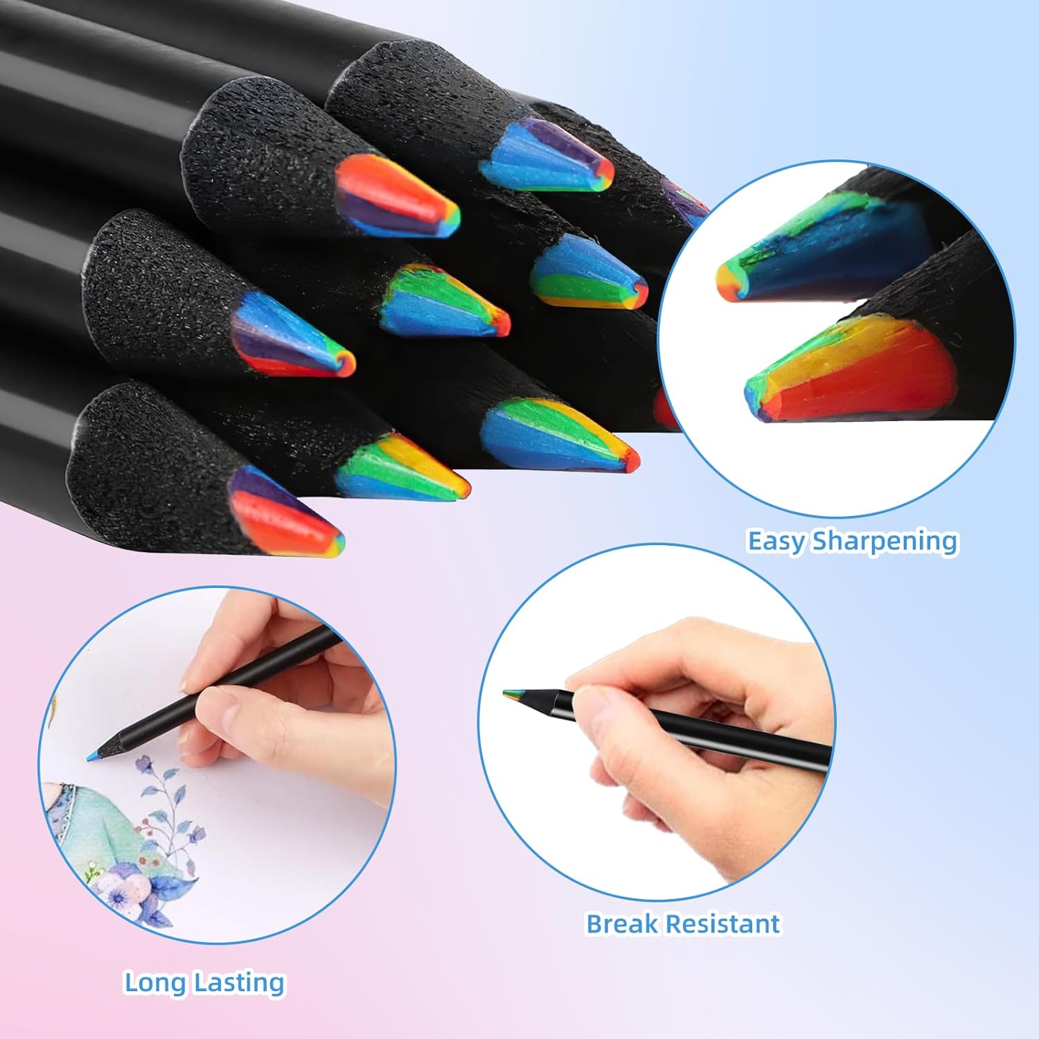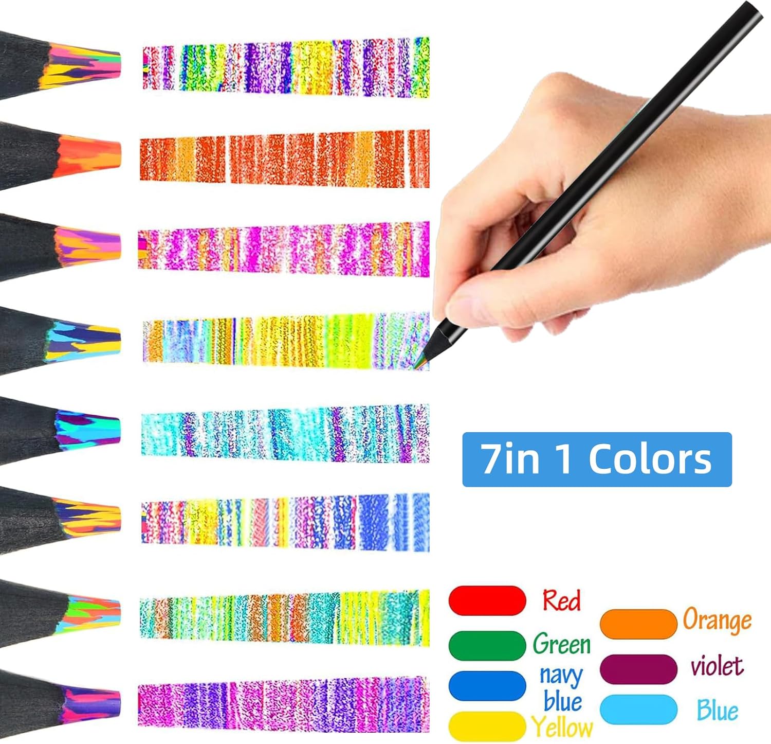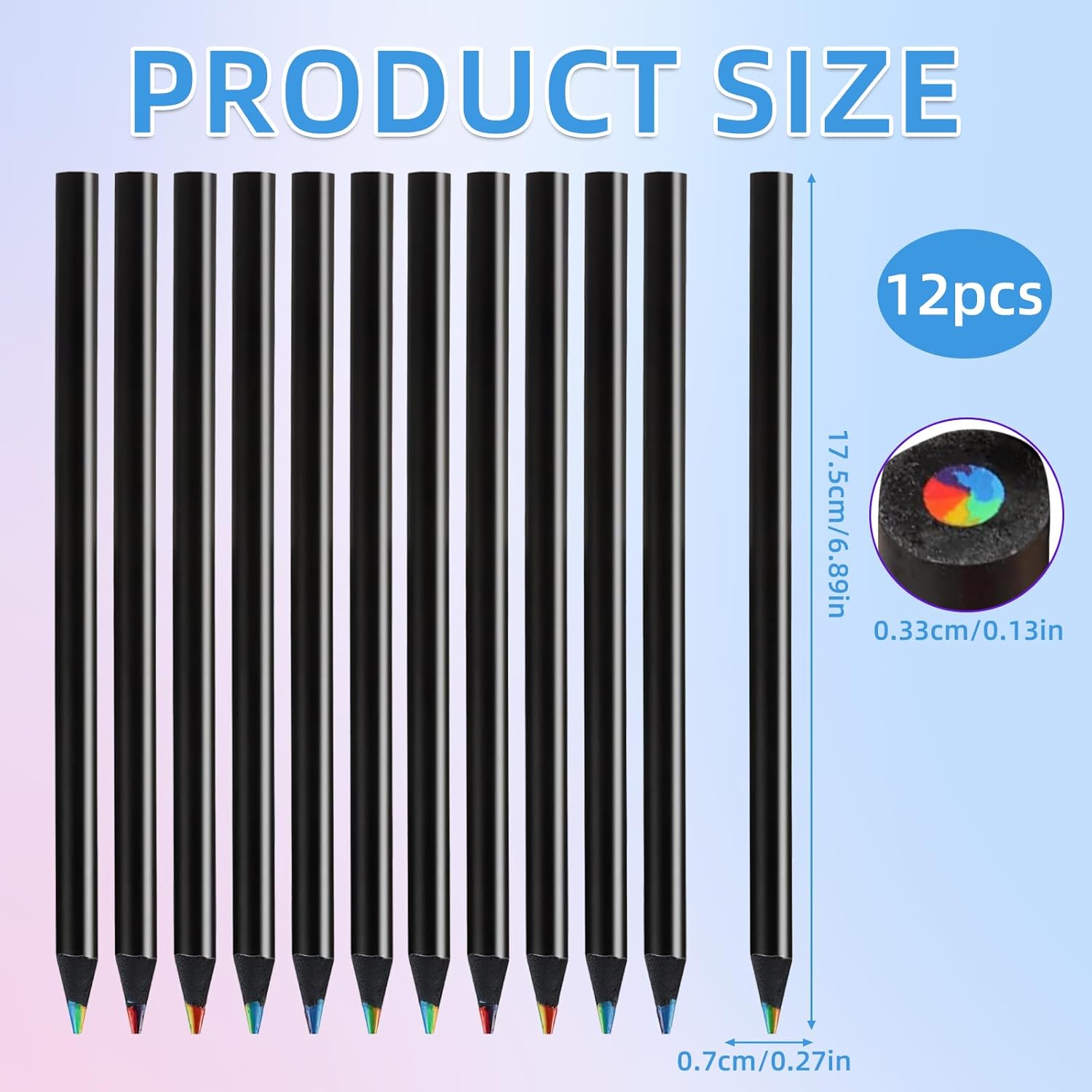 1. Magica magia dei colori in ogni miniera! Ognuna delle nostre 12 penne arcobaleno contiene sette abbaglianti mondi di colori! Una semplice rotazione o inclinazione evoca sfumature di colore uniche, dove dipingere diventa un'avventura sorprendente! 2. Pigmenti premium per opere d'arte radiose! I pigmenti colorati altamente concentrati garantiscono risultati ricchi e resistenti alla luce! Le mine scivolano setose sulla carta, non si rompono e non sbiadiscono mai - per capolavori che brilleranno ancora anni dopo! 3. Maniglia confortevole per ore di creatività! L'impugnatura ergonomica morbida con scanalature antiscivolo si adatta perfettamente alle mani piccole. Ciò significa che anche durante le maratone non ci sono punti di fatica nei libri da colorare - solo artisti radiosi! 4. Design resistente alla rottura per un'affilatura senza stress! L'involucro in legno ad alta densità protegge la magica mina colorata come una cassaforte! Finalmente l'affilatura senza la mia frustrazione: per punte impeccabili nello splendore dell'arcobaleno! 5. Creatività turbo per ogni situazione! Che si tratti di un progetto scolastico, di un mandala rilassante o di un regalo di compleanno, queste penne trasformano la vita di tutti i giorni in una frenesia di colori! Il set creativo definitivo per Pasqua, Natale e ogni giornata “Oggi colorerò il mondo”!