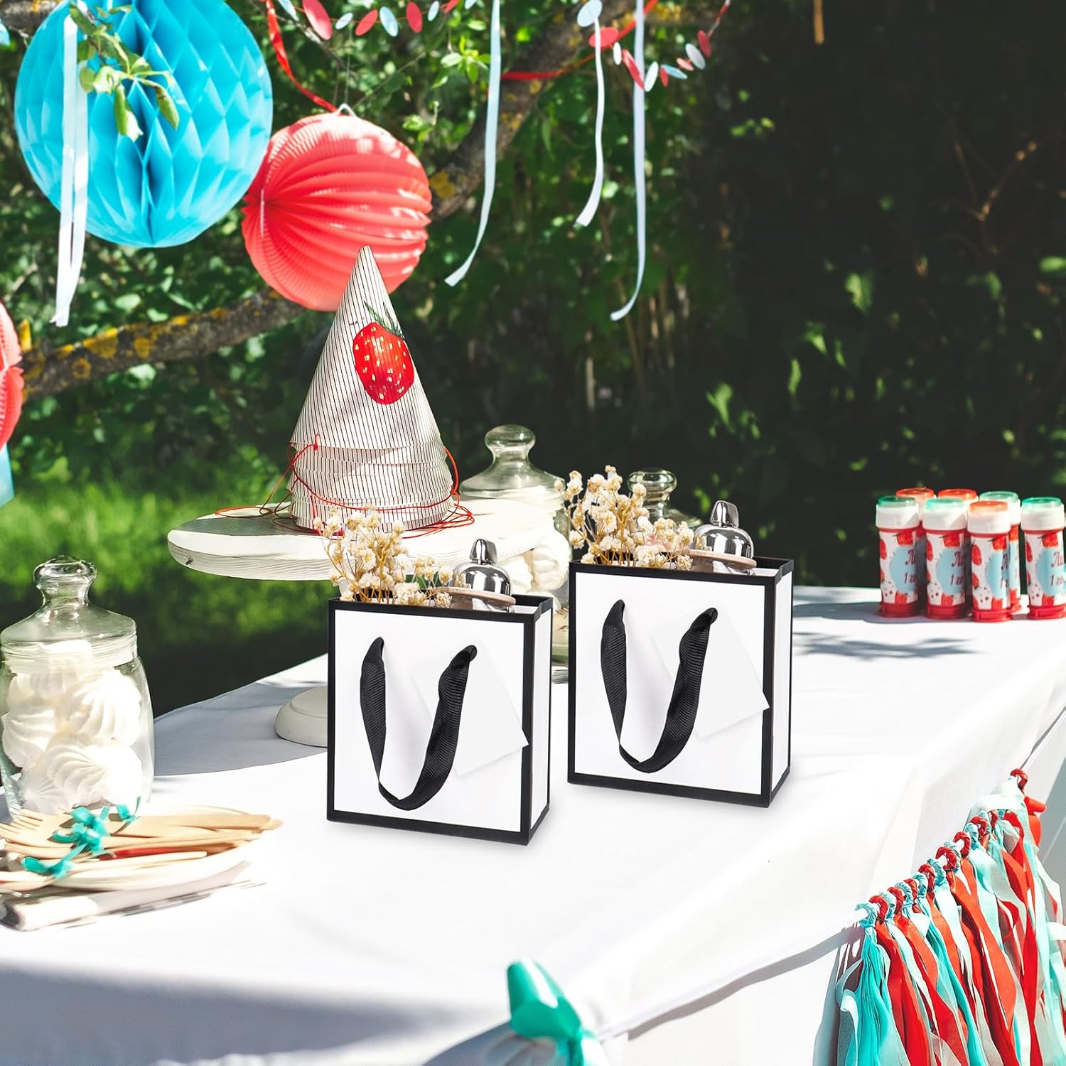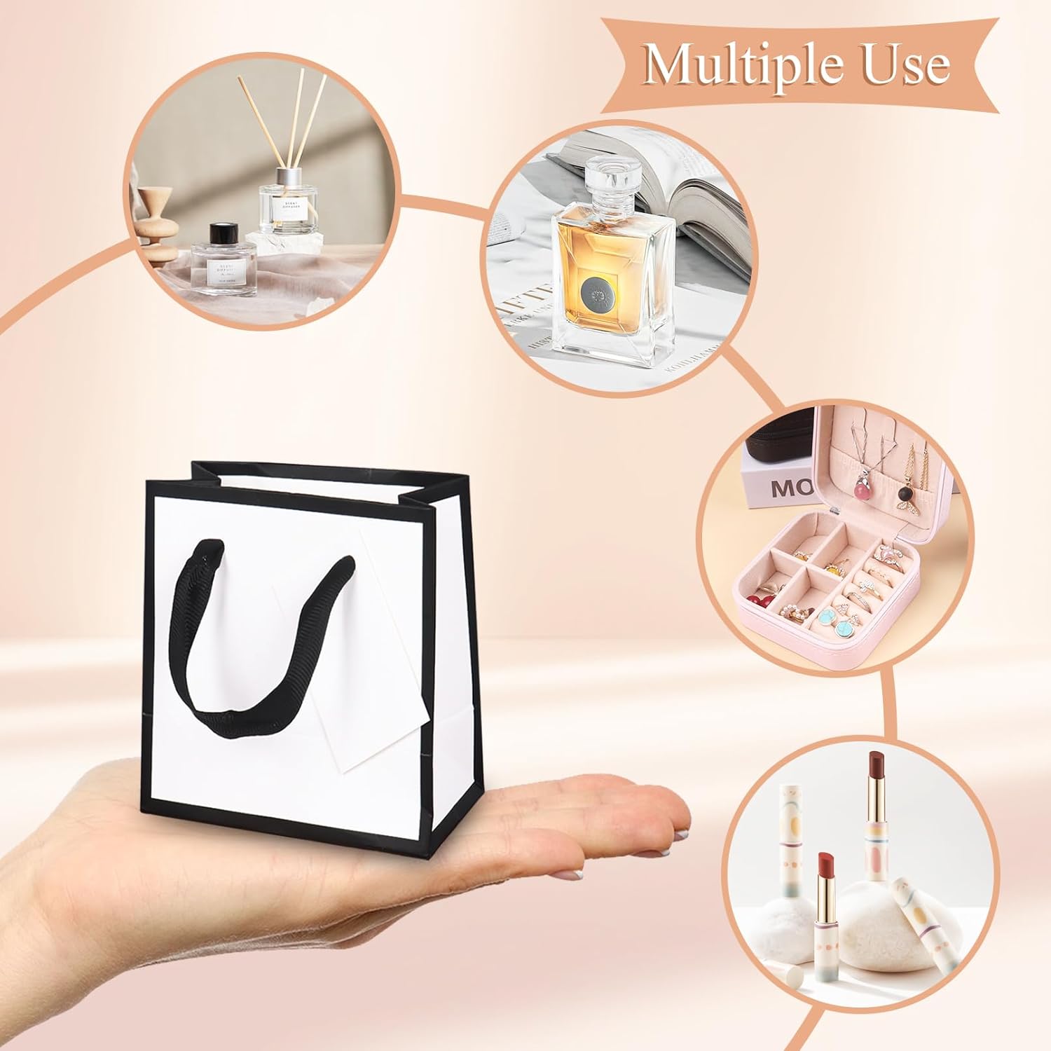 MINI FORMATO PER PICCOLI REGALI: Ogni mini sacchetto regalo misura 12×10×7 cm, ideale per piccoli regali come gioielli, giocattoli, caramelle e articoli vari, rendendoli una buona scelta per compleanni, vacanze o regali per feste. ALTA QUALITÀ E AFFIDABILE: Realizzati con carta robusta di alta qualità, i mini sacchetti regalo sono dotati di manici rinforzati che garantiscono che possano contenere in modo sicuro una varietà di oggetti leggeri, rendendoli funzionali ed eleganti. Etichette regalo abbinate: il set include etichette regalo che contengono un messaggio personale. Ciò rende questi mini sacchetti regalo perfetti per regali premurosi con un tocco speciale per amici, familiari o colleghi. Comoda maniglia per un facile trasporto: ogni borsa è dotata di una comoda maniglia che la rende facile da trasportare e maneggiare sia che tu stia regalando regali o imballandoli per una spedizione sicura. DESIGN VERSATILE E ATTRAENTE: Questi mini sacchetti regalo hanno un design semplice e neutro e sono perfetti per ogni occasione, come: B. Compleanni, matrimoni, Natale e molto altro. Si abbinano a una varietà di articoli da regalo e aggiungono un tocco di eleganza al regalo.